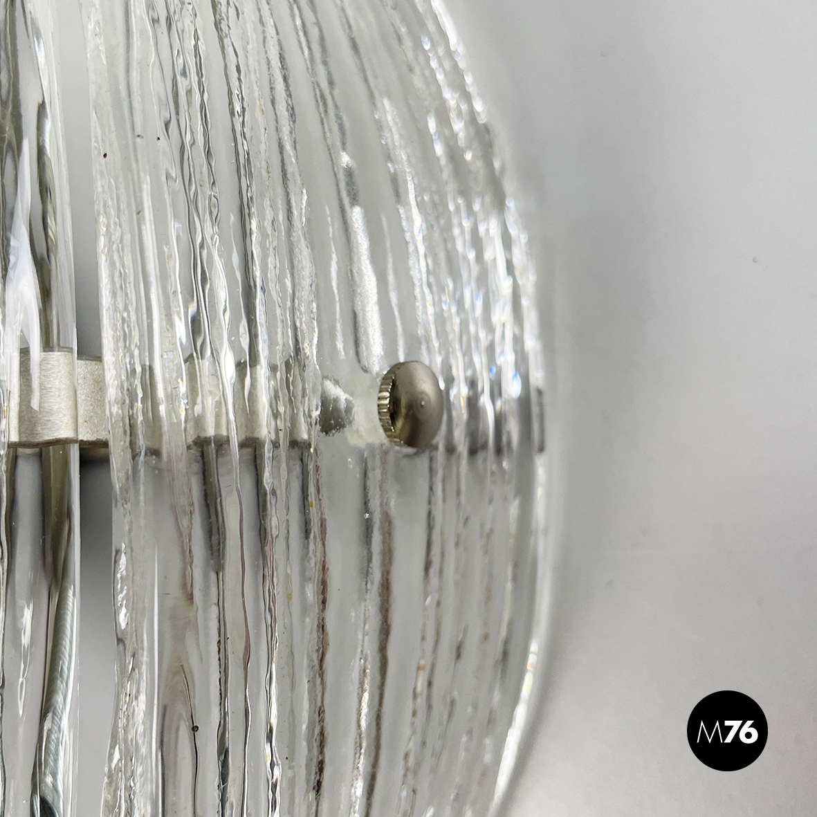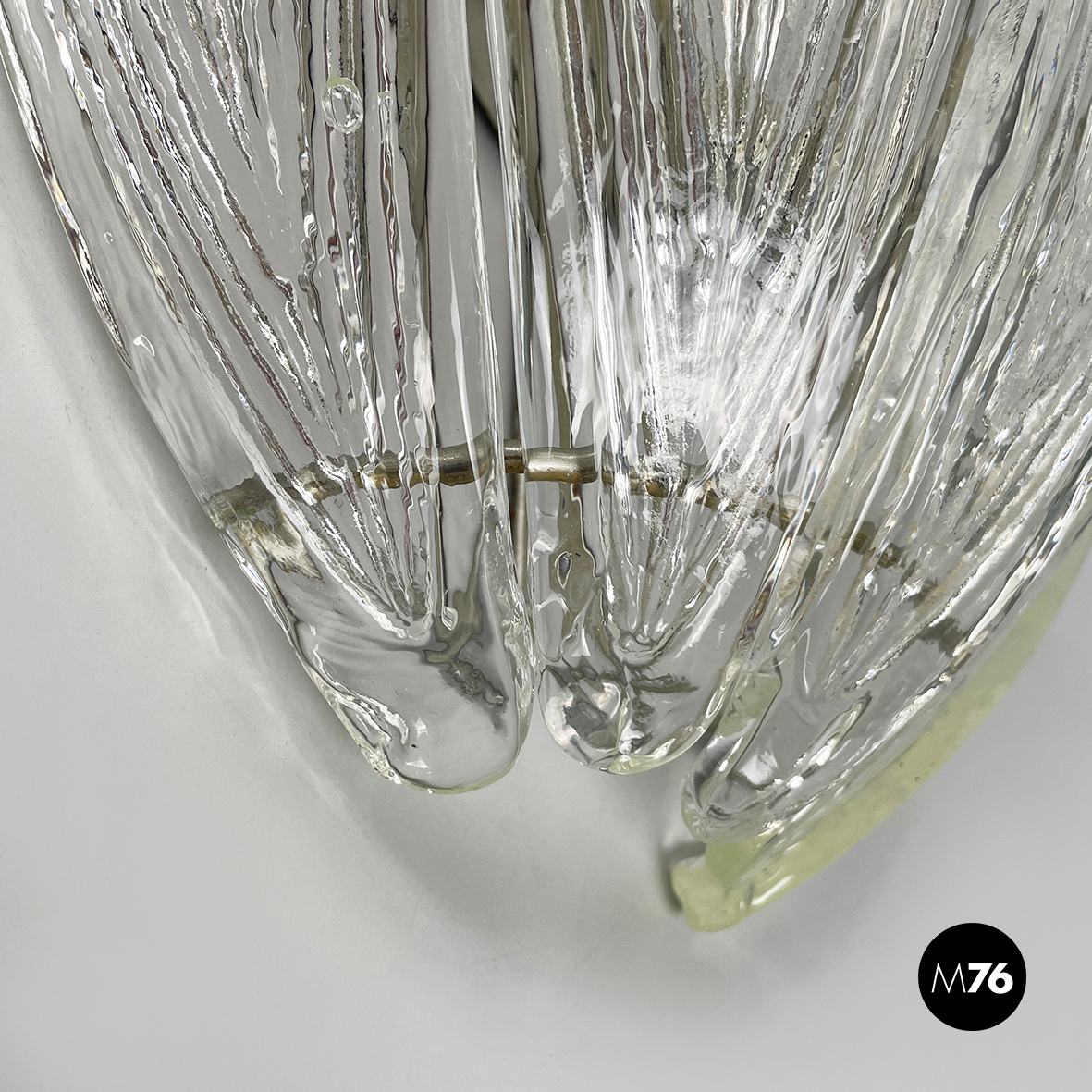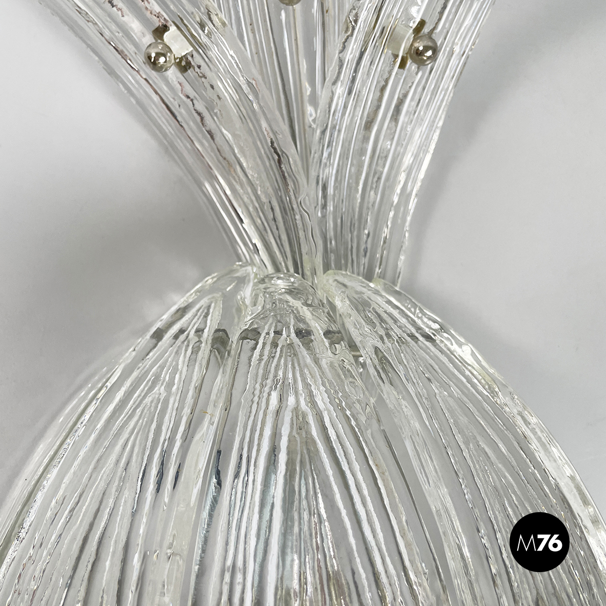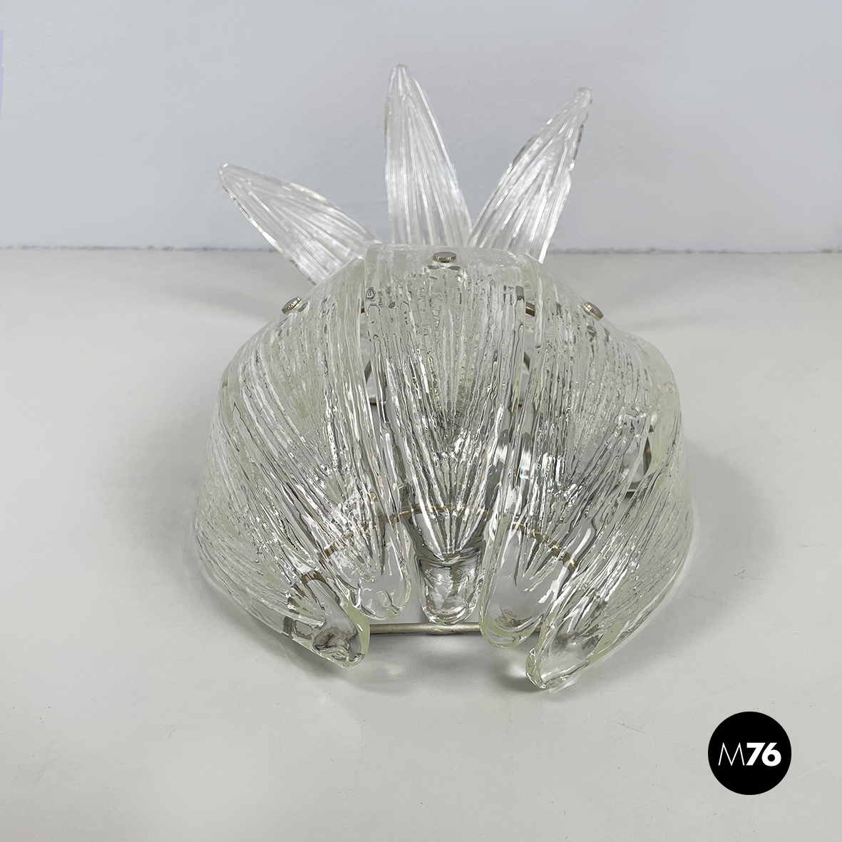 Applique o lampada da parete a forma di ananas in vetro trasparente. Il diffusore a base ovale è composto dall’accostamento di lastre curvate e scanalate in vetro. Nella parte superiore sono presenti tre parti in vetro per simulare le foglie del frutto. La struttura è composta da uno scheletro di fasce sottili in metallo.