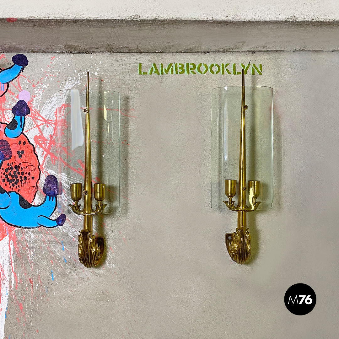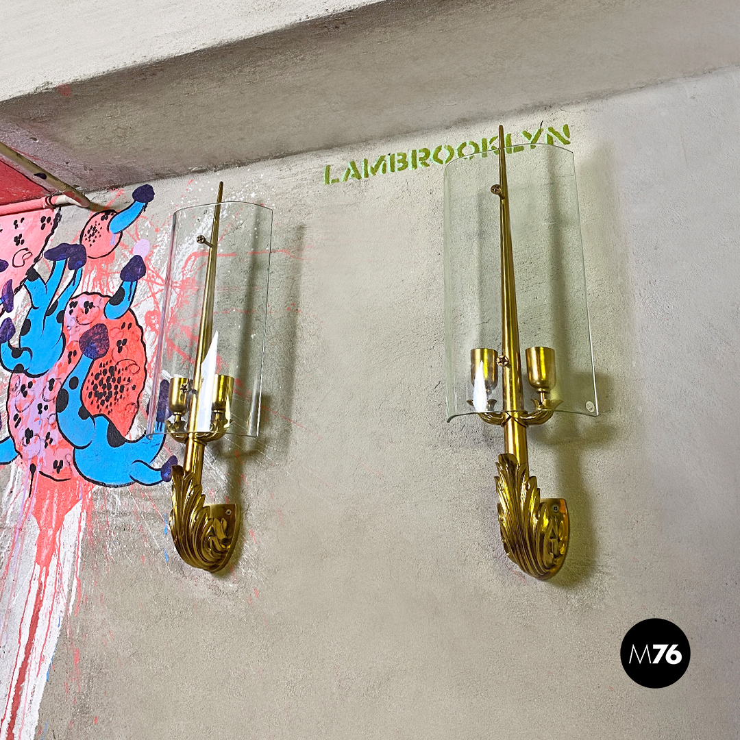 Applique in ottone e vetro, 1960 ca.