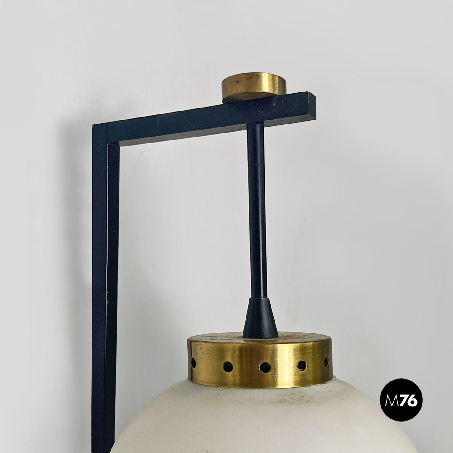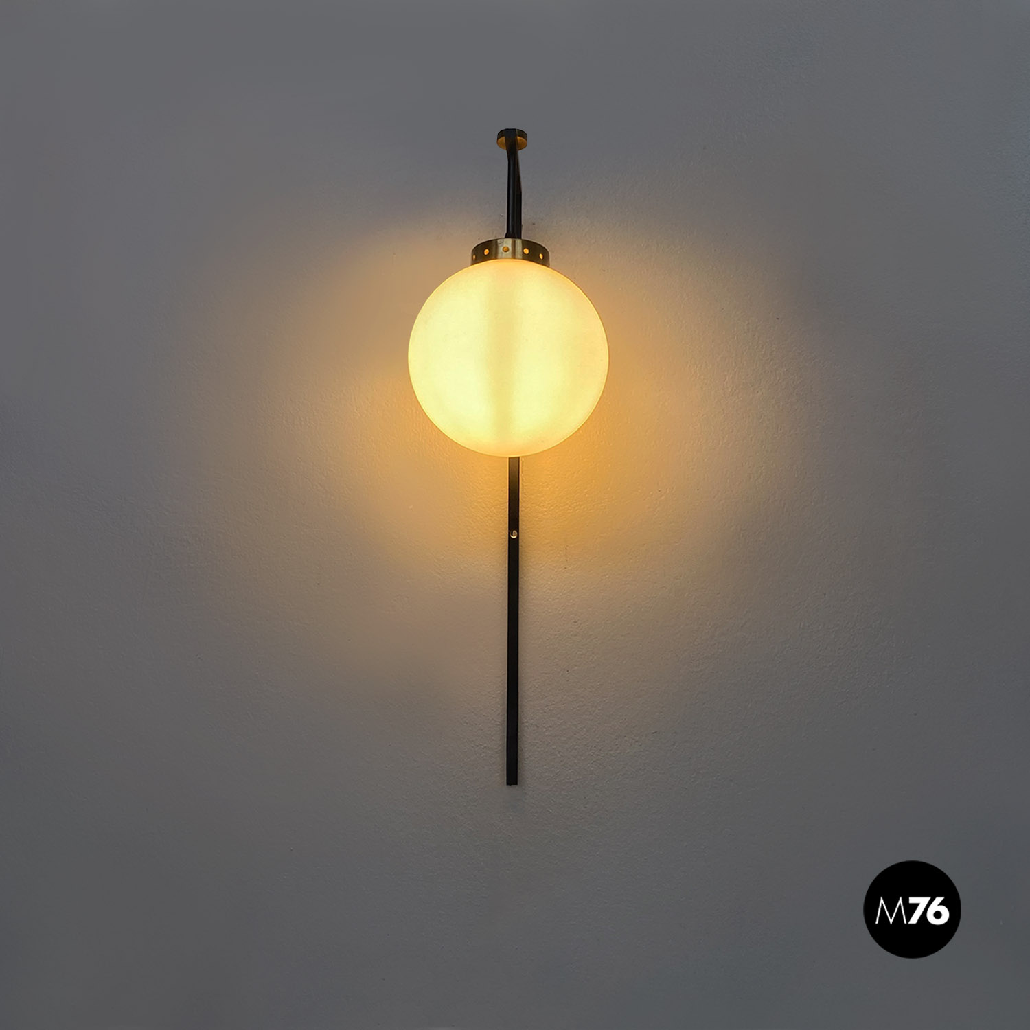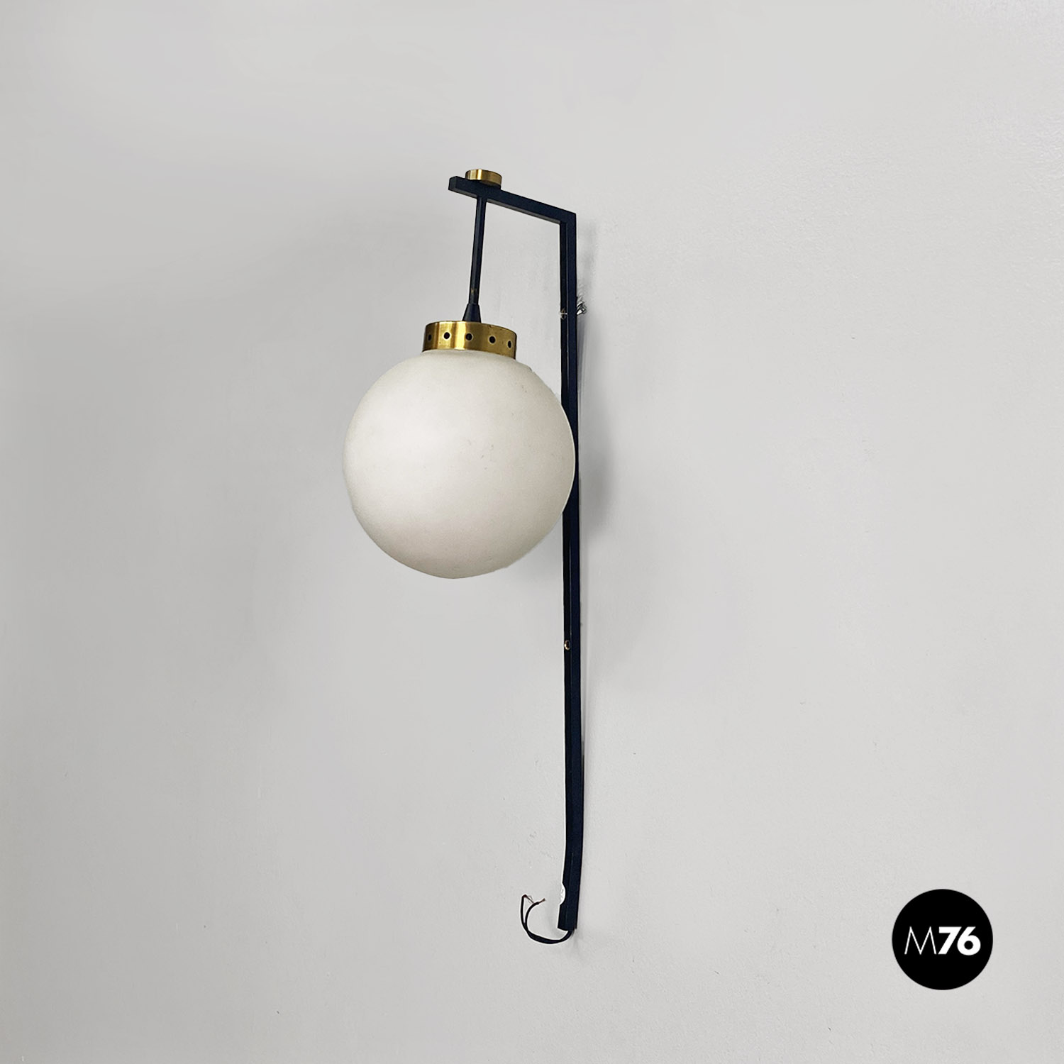 Applique in vetro opalino e metallo nero, 1950 ca.