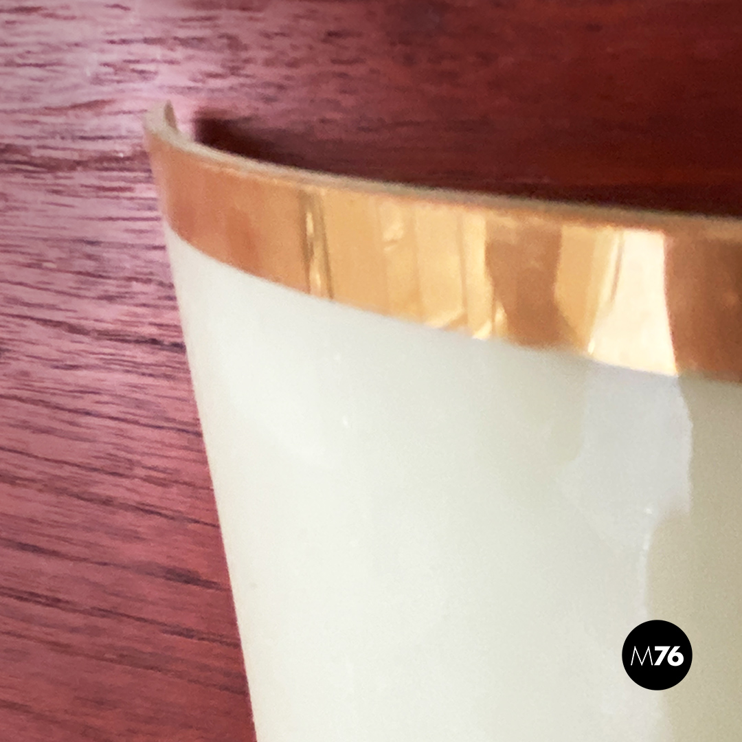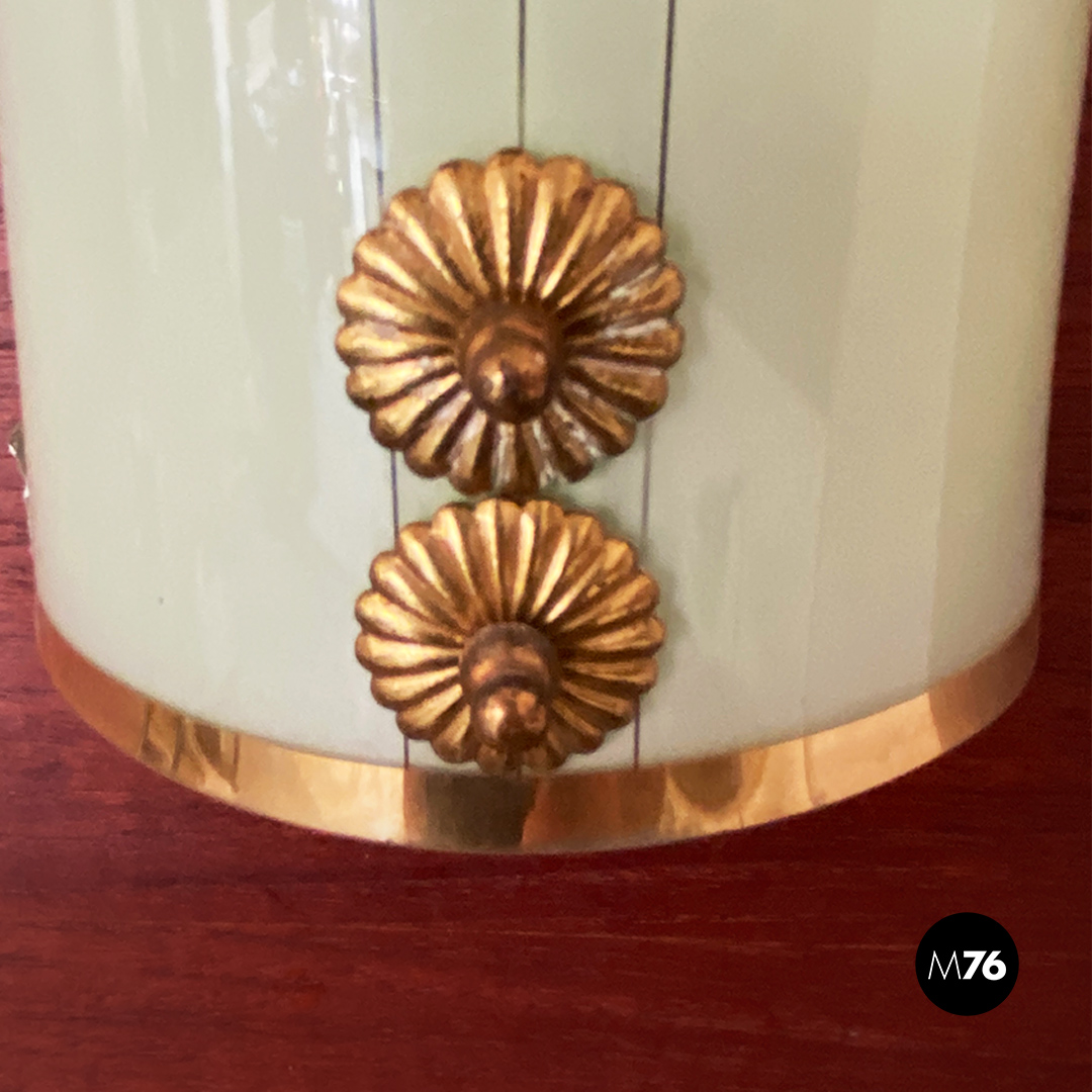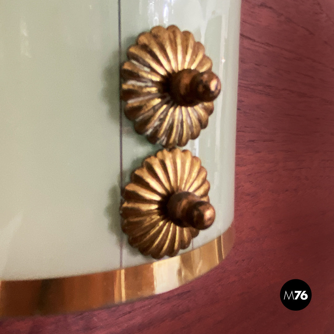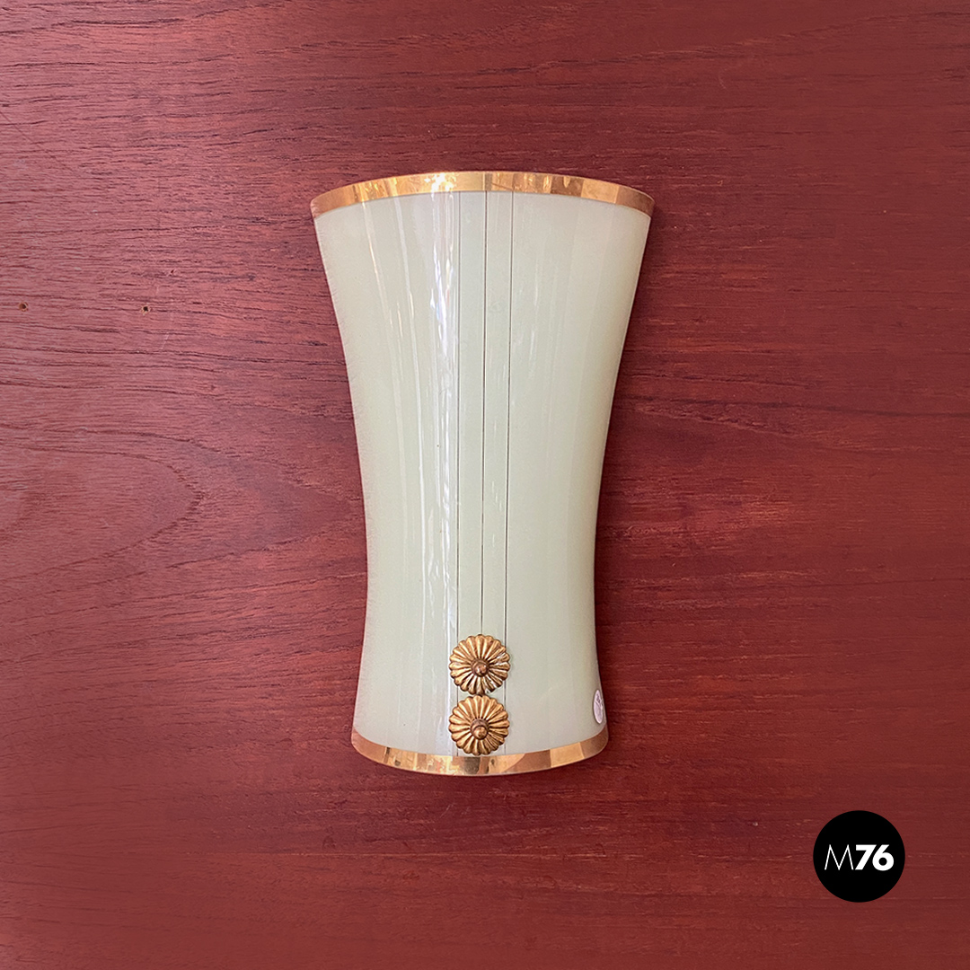 Applique dalla forma curva con vetro verde chiaro motivo con doppia linea centrale in ottone così come i profili e gli altri dettagli visibili.