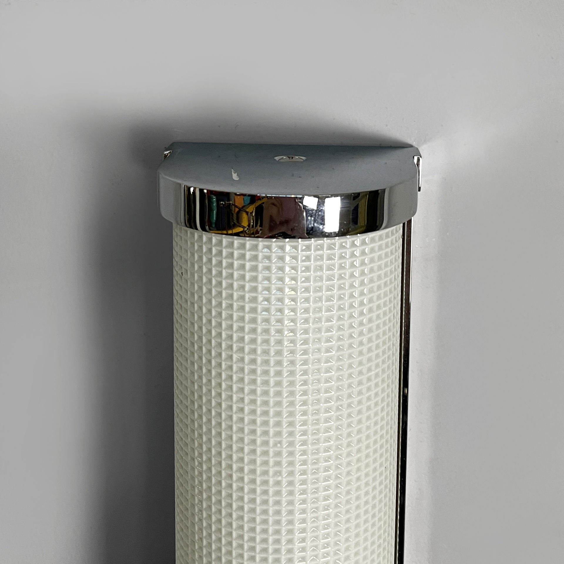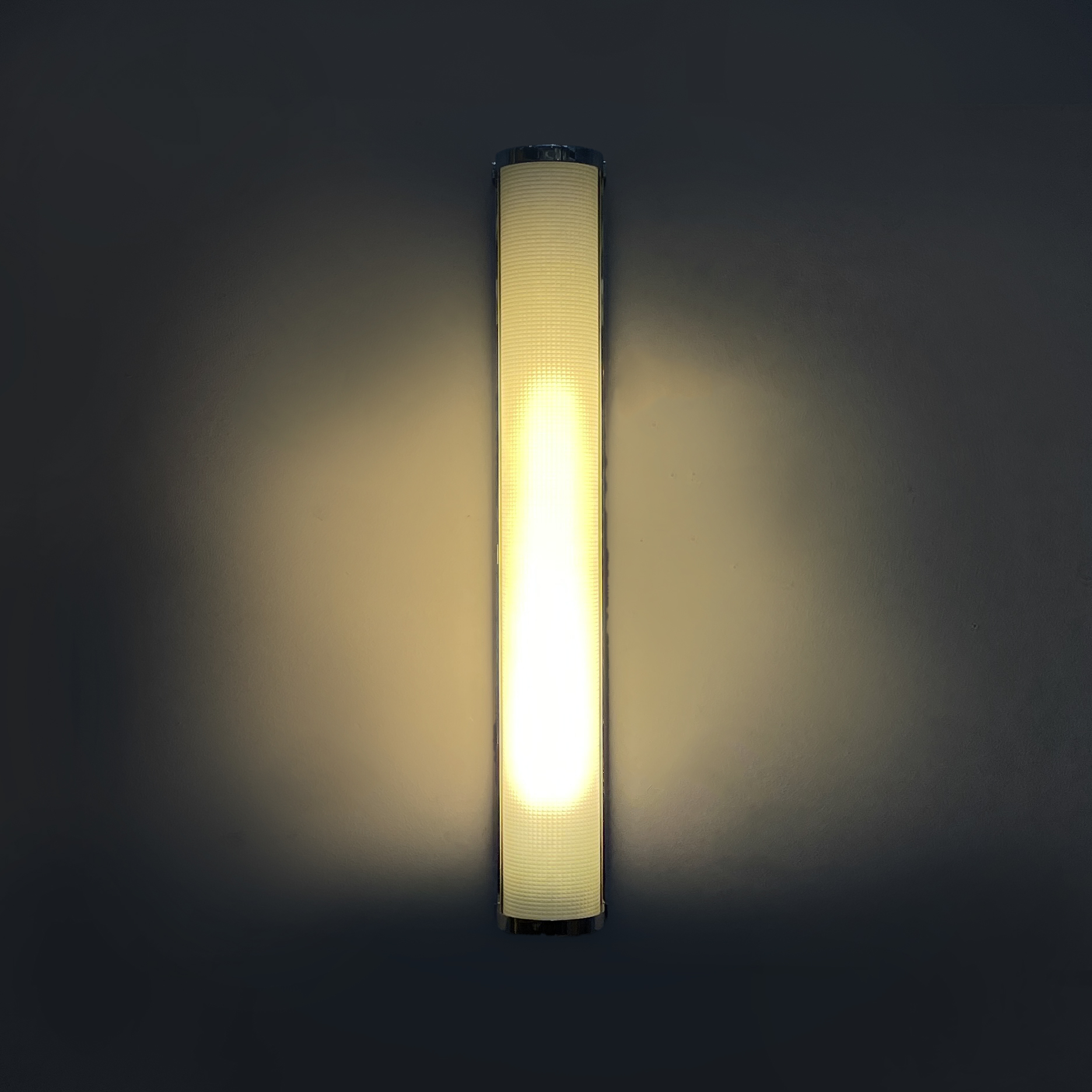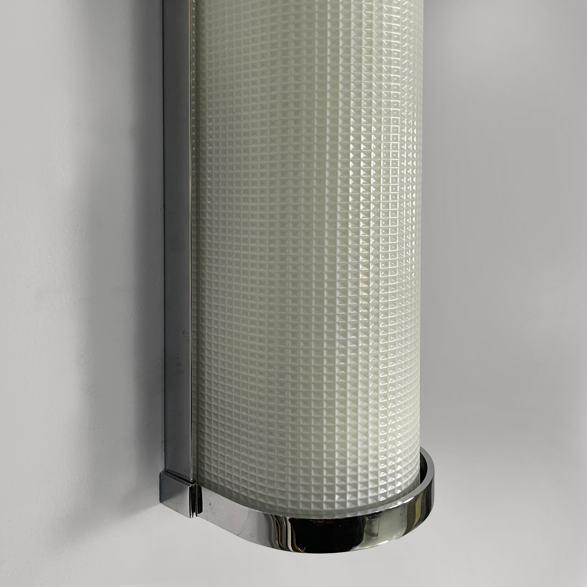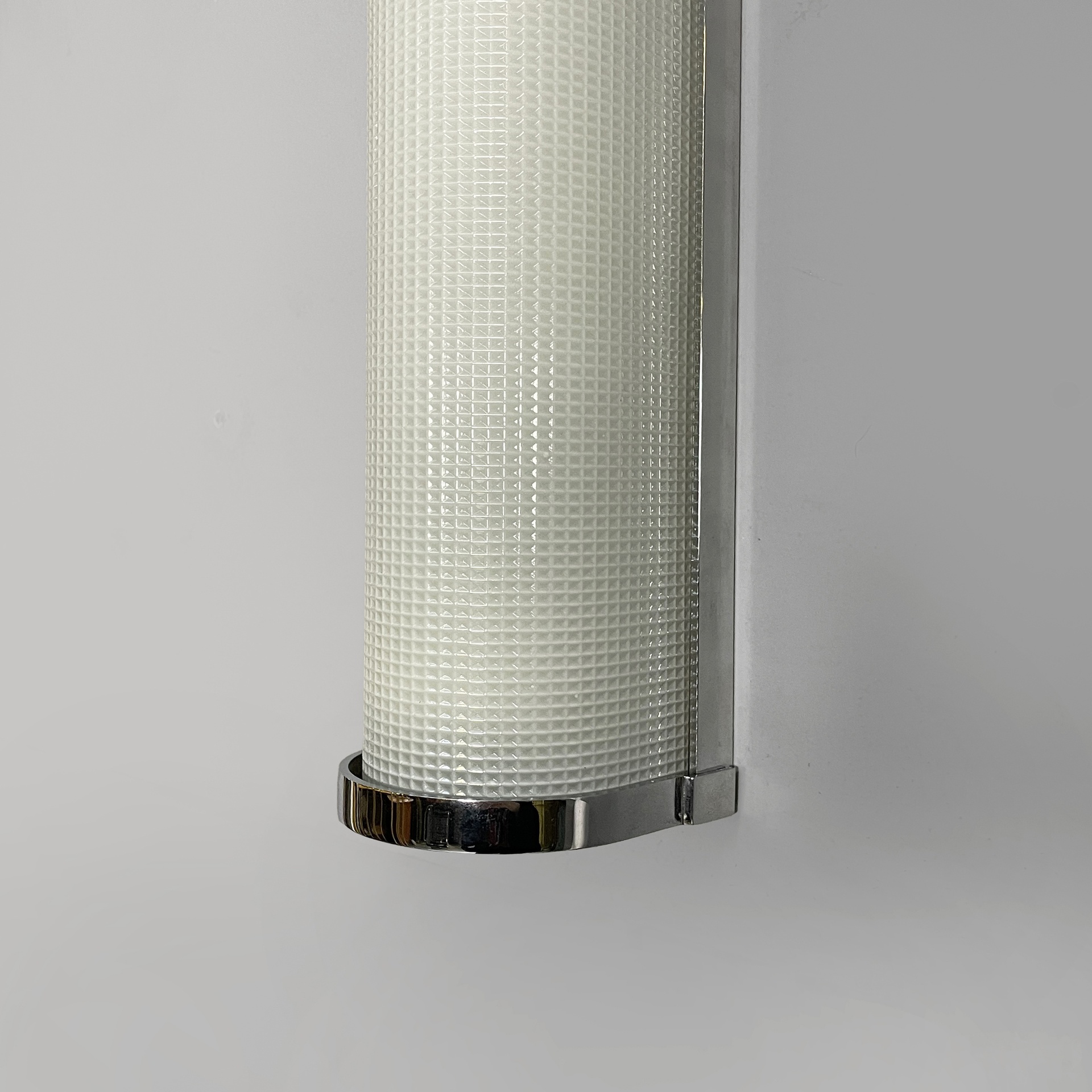 Applique modello 3114 Maristella con diffusore cilindrico in vetro opalino . La struttura di questa lampada da parete è in metallo cromato. Utilizzabile come plafoniera.