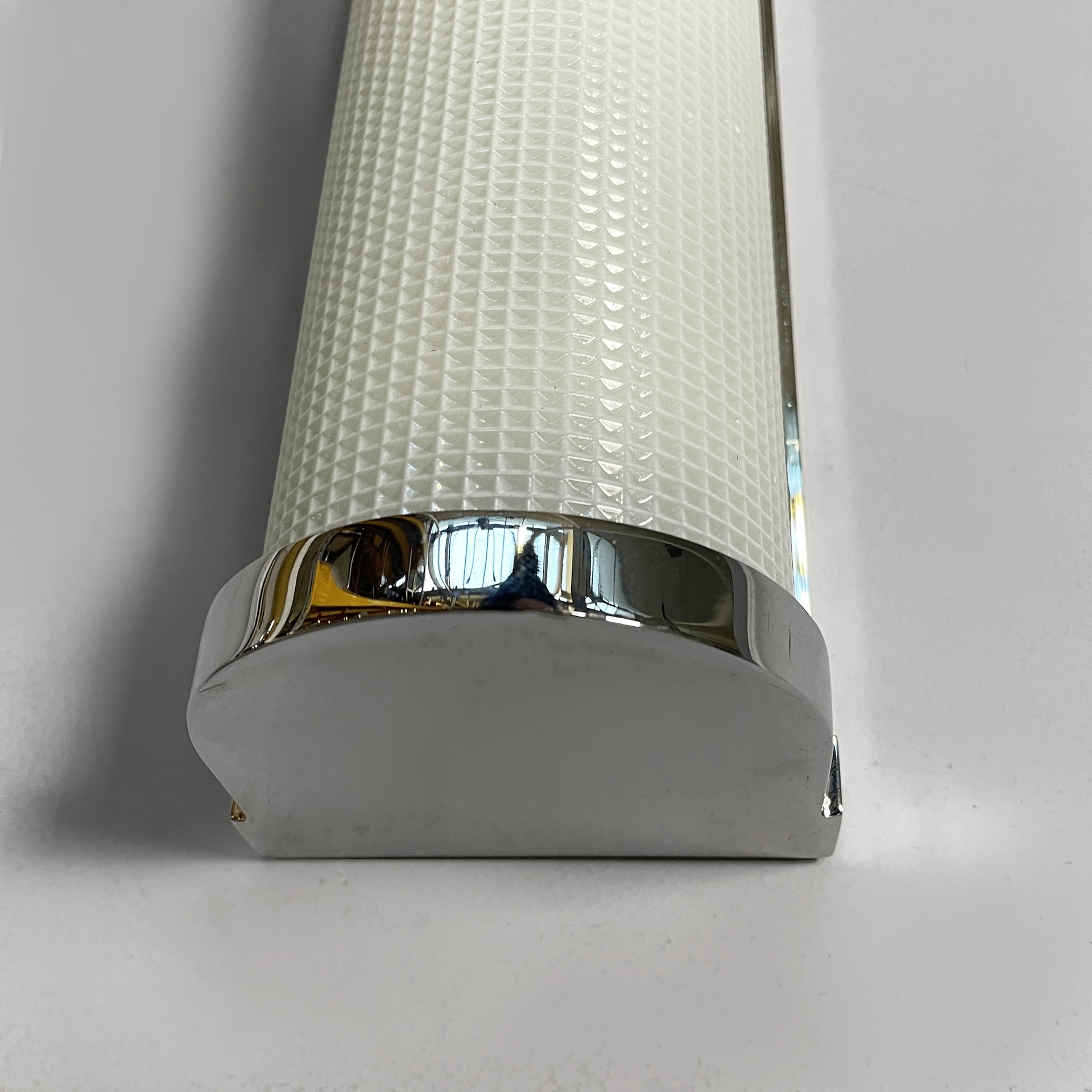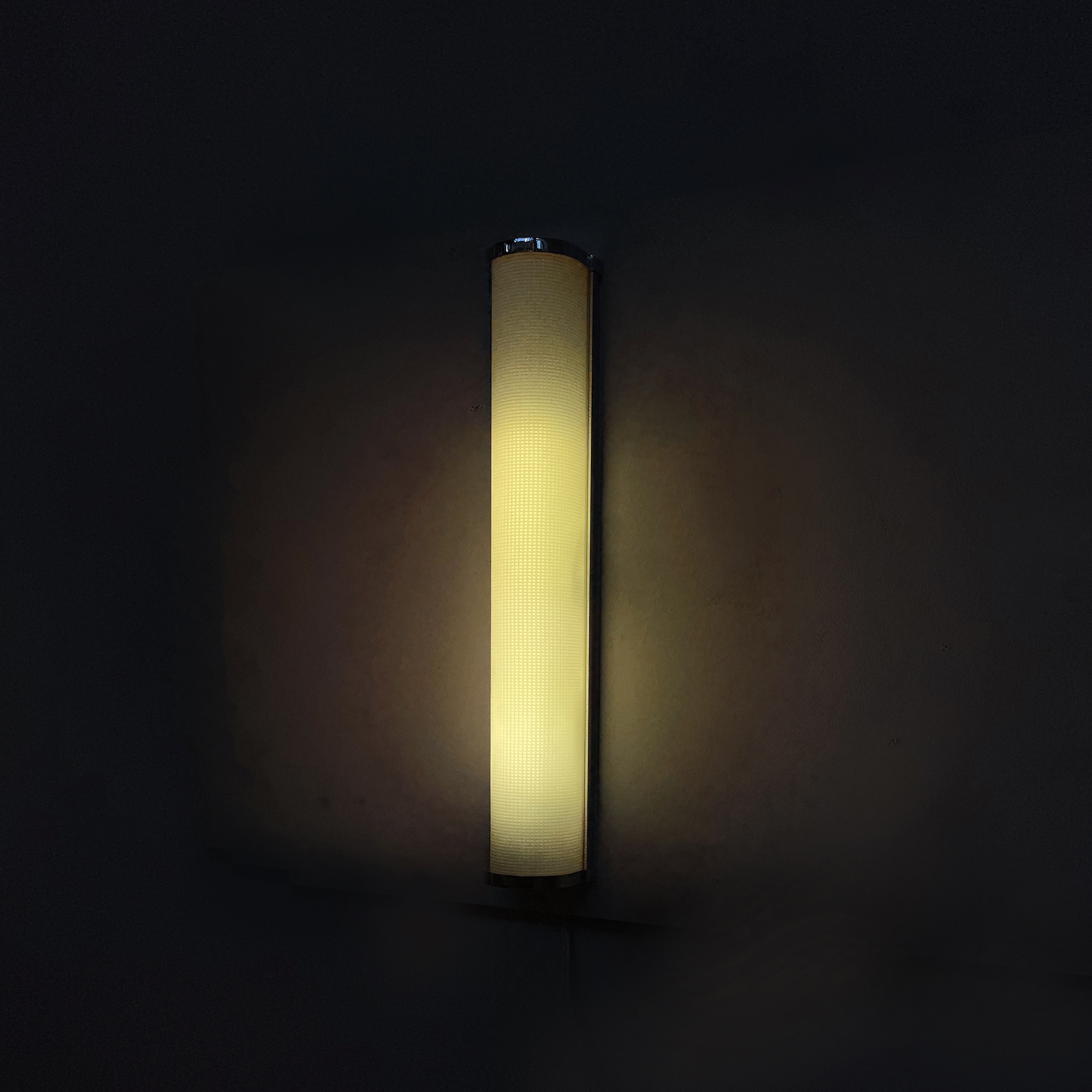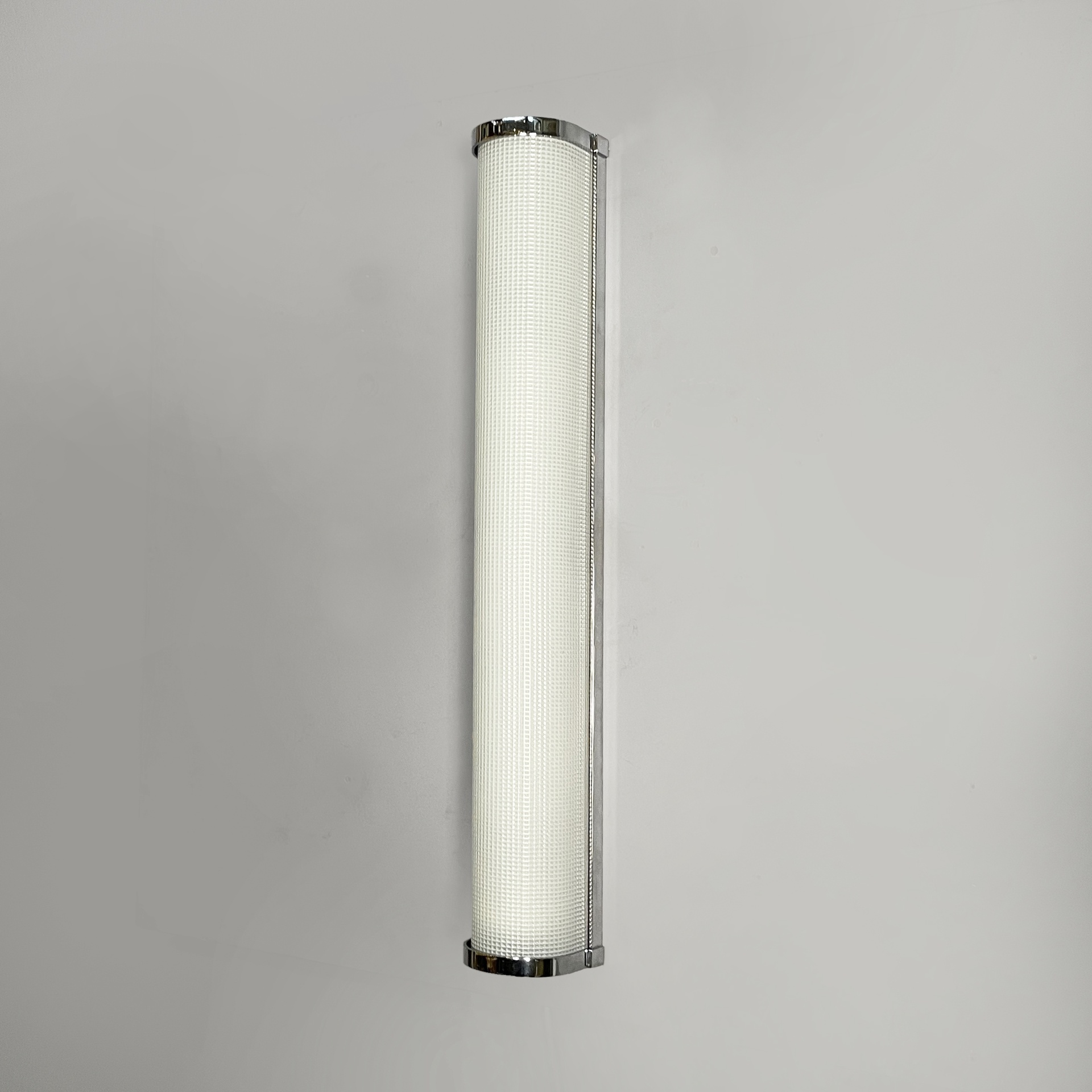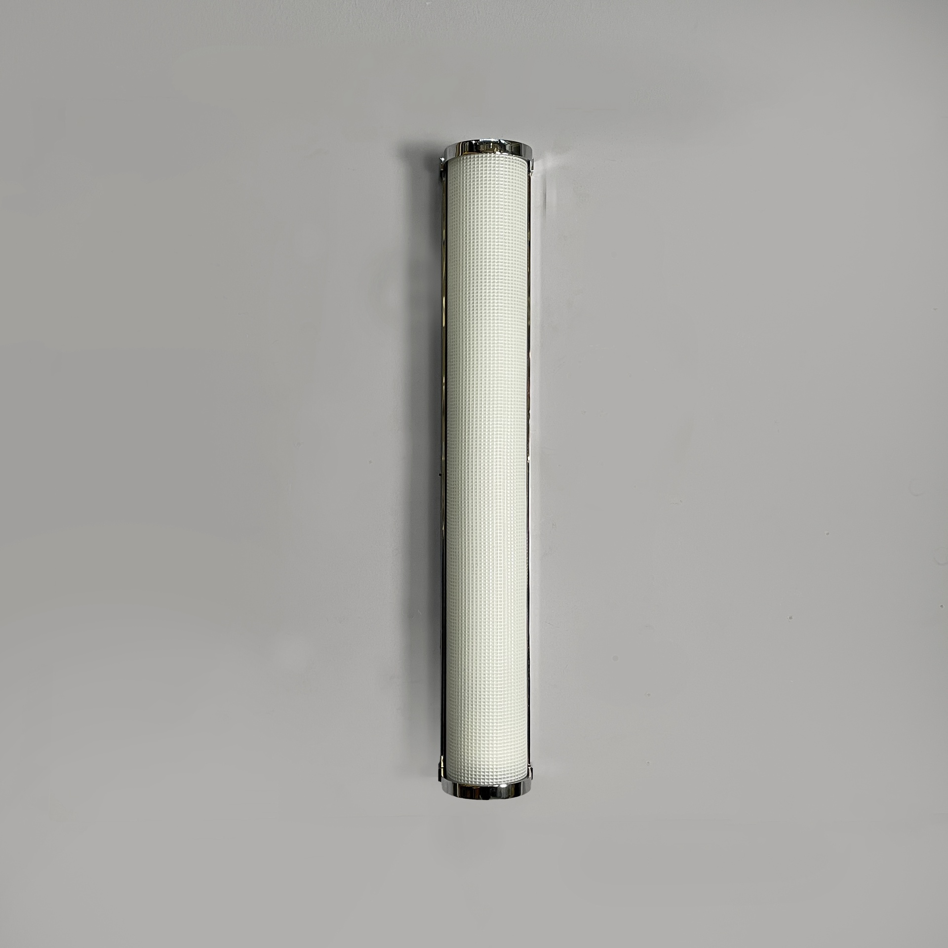 Applique modello 3114 Maristella con diffusore cilindrico in vetro opalino . La struttura di questa lampada da parete è in metallo cromato. Utilizzabile come plafoniera.