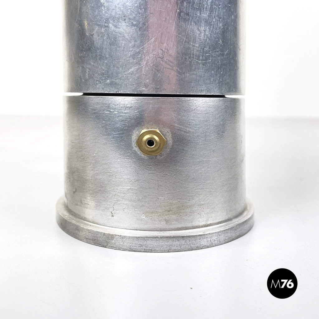 Caffettiera da espresso o moka modello La Cupola a base tonda in fusione di alluminio. Presenta manico e pomello sferico sulla cima in plastica nera. Sul fronte presenta il beccuccio triangolare. Alla base presenta un disco in alluminio Il quale ha la funzione di para fiamma oltre che distribuire in maniera uniforme il calore alla base durante la fase della preparazione.