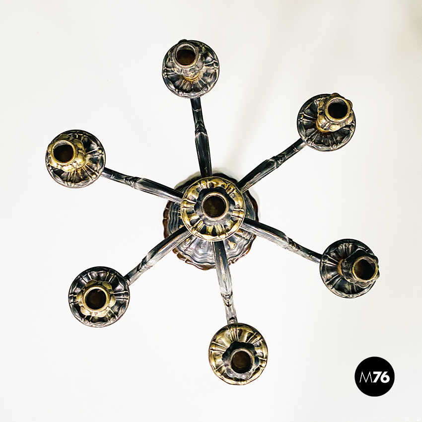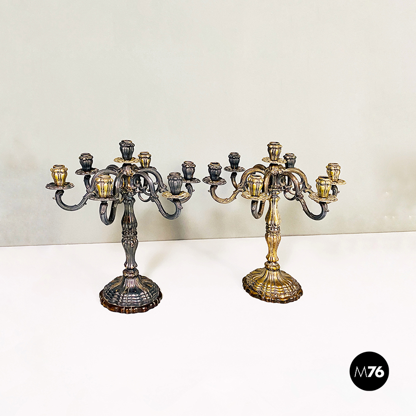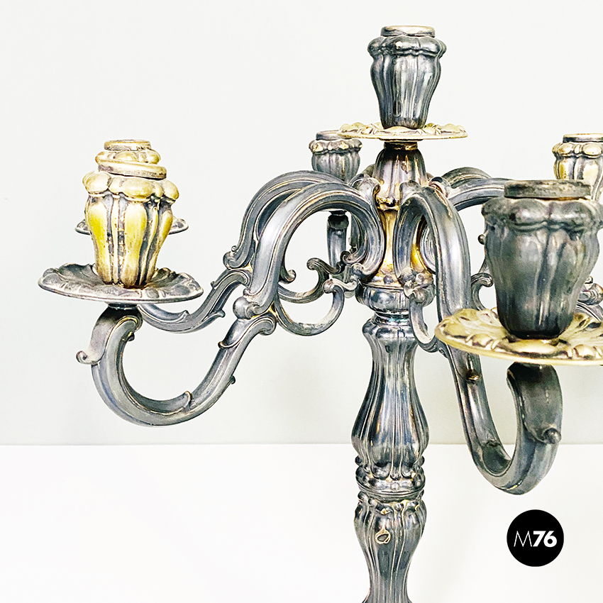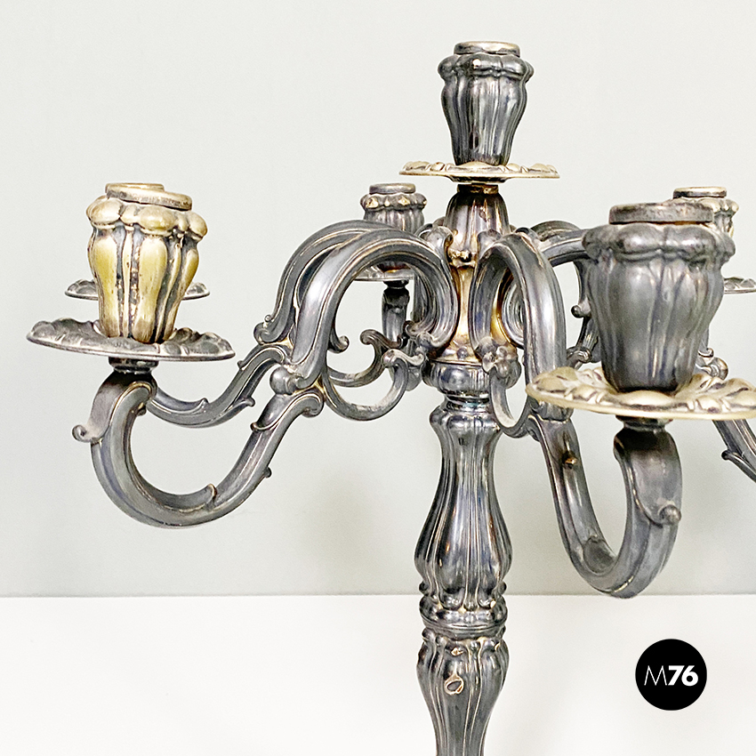 Candelabri a sette fiamme in argento massiccio e base in legno di fine ottocento interamente lavorati a mano.