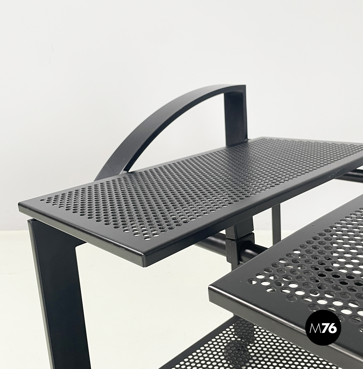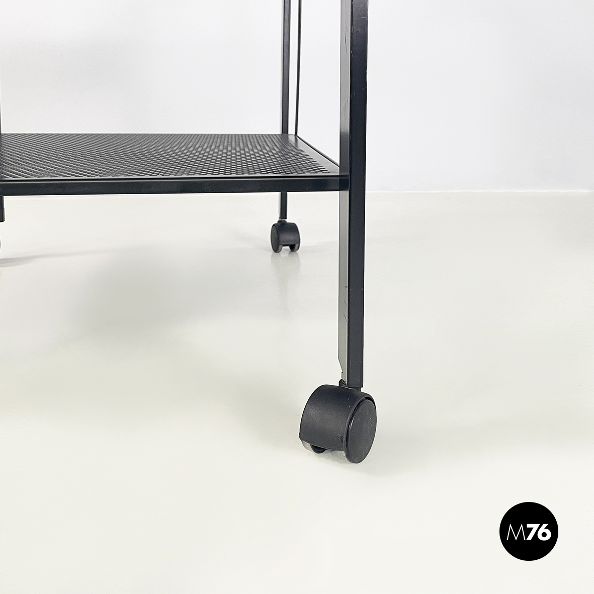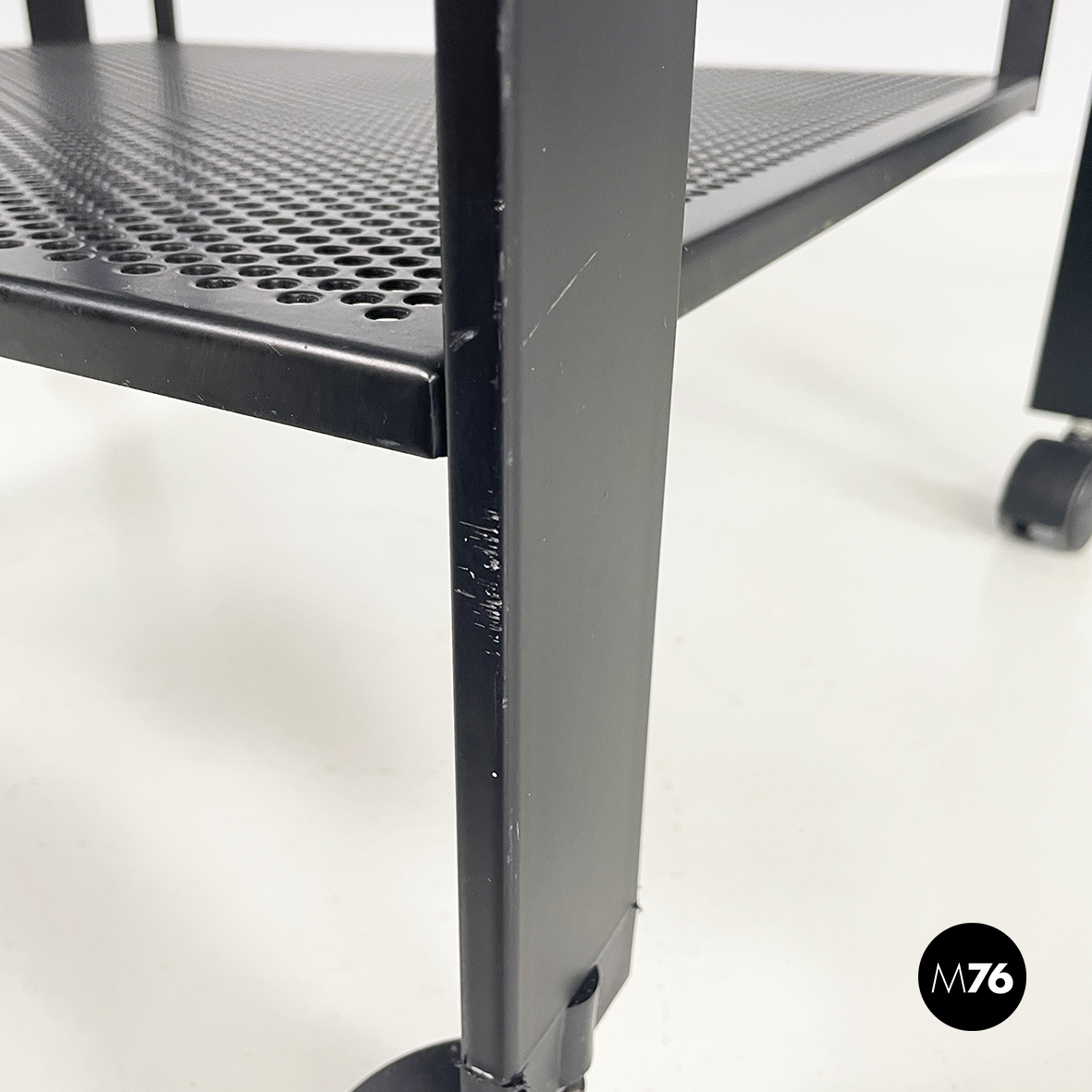 Carrello in metallo nero traforato, 1980 ca.