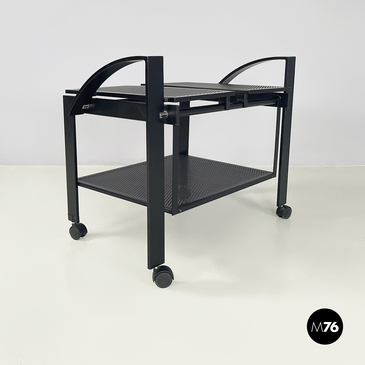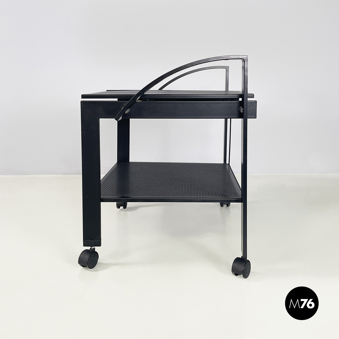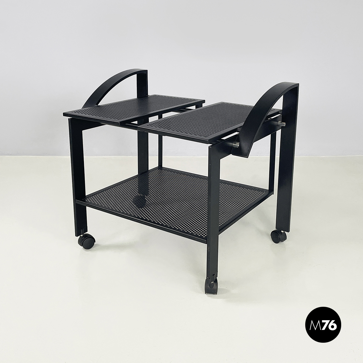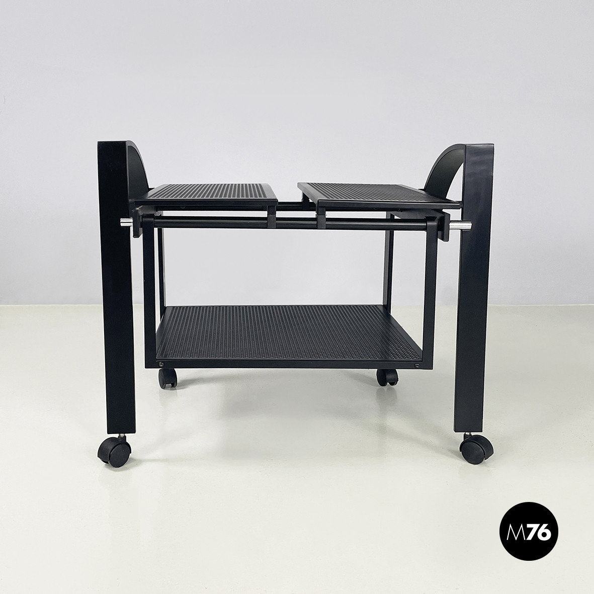Carrello in metallo nero traforato, 1980 ca.