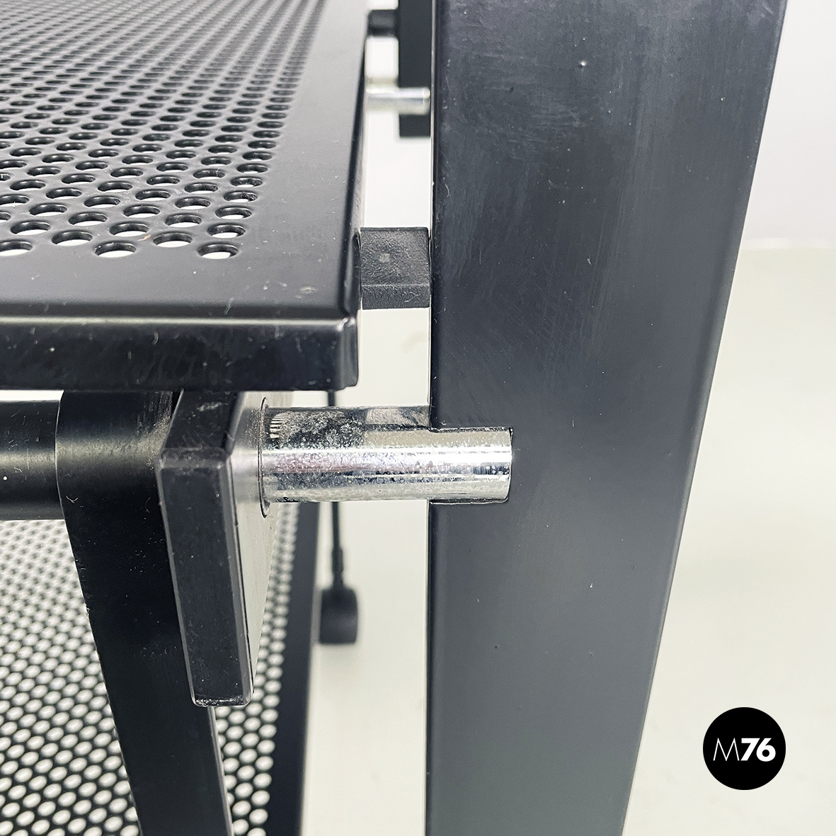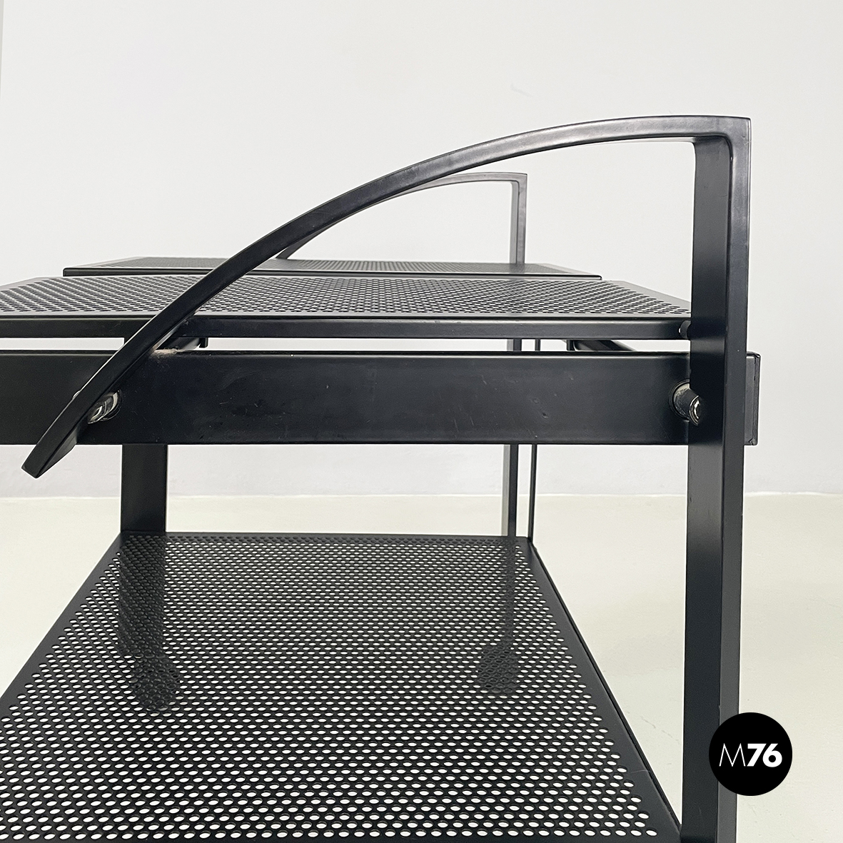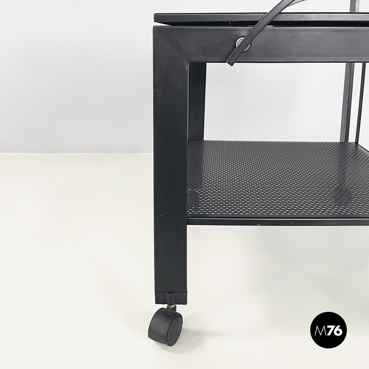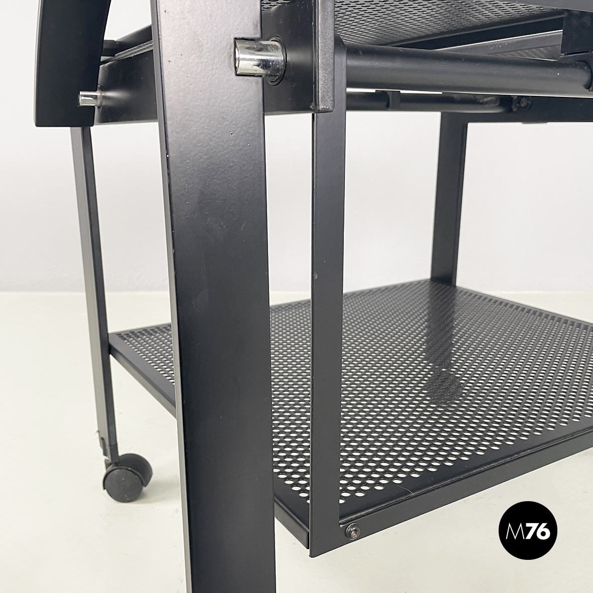 Carrello in metallo nero traforato, 1980 ca.