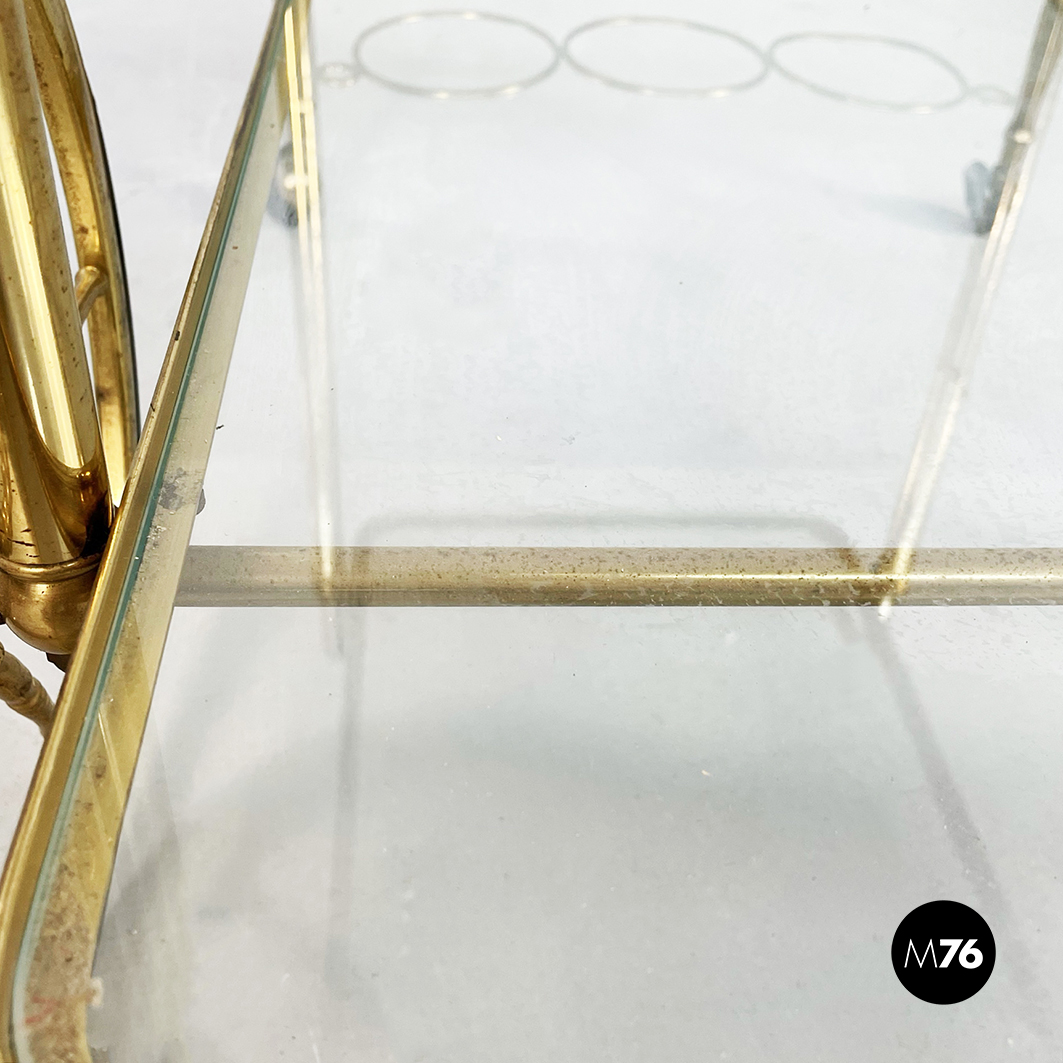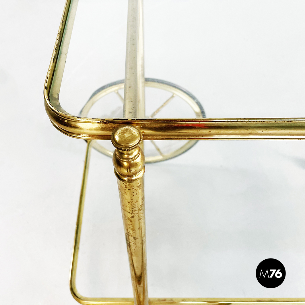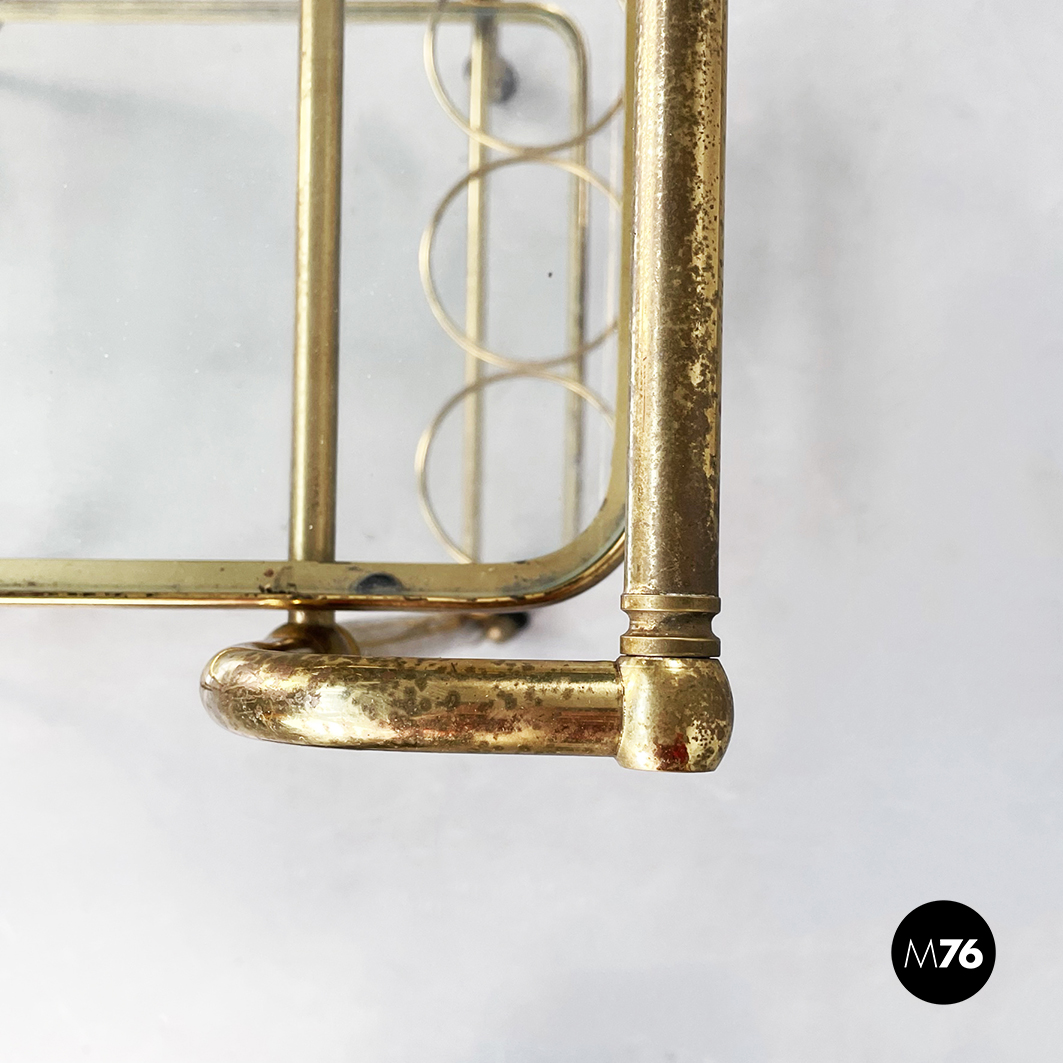 Carrello portavivande in ottone e vetro, 1950 ca.