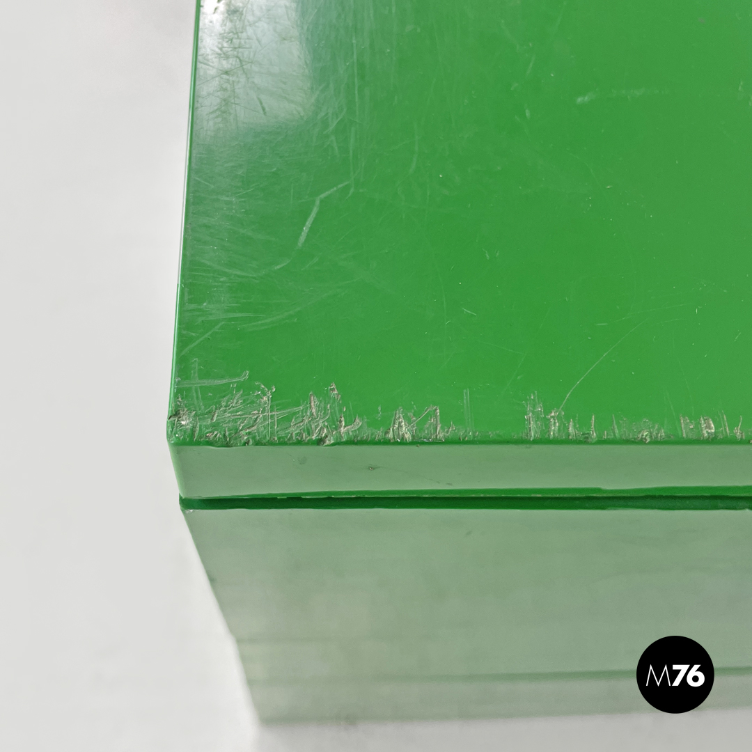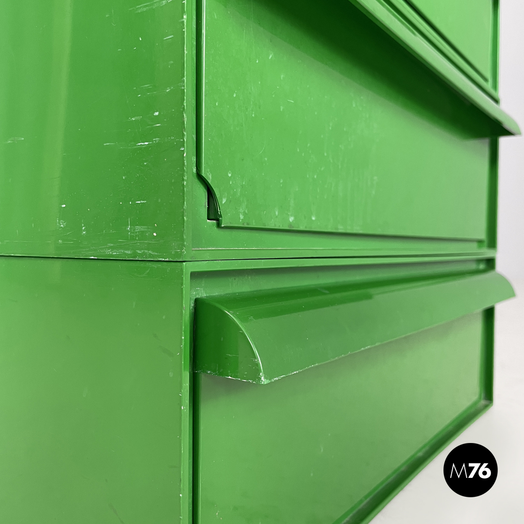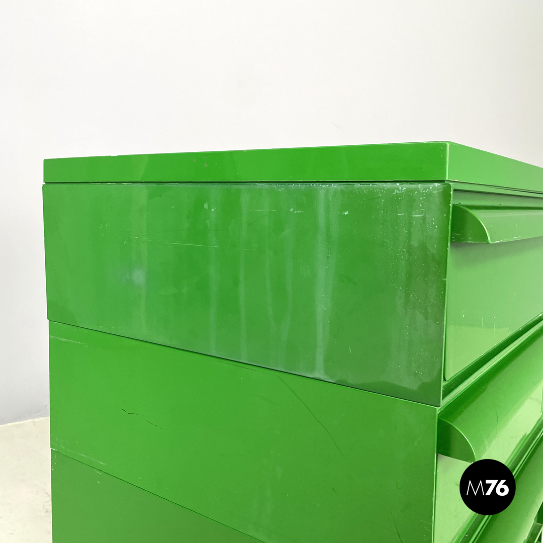 Cassettiera componibile modello 4602 in plastica verde a base quadrata. I quattro cassetti presentano una maniglia con profilo a triangolo stondato ed è della stessa lunghezza del cassetto.