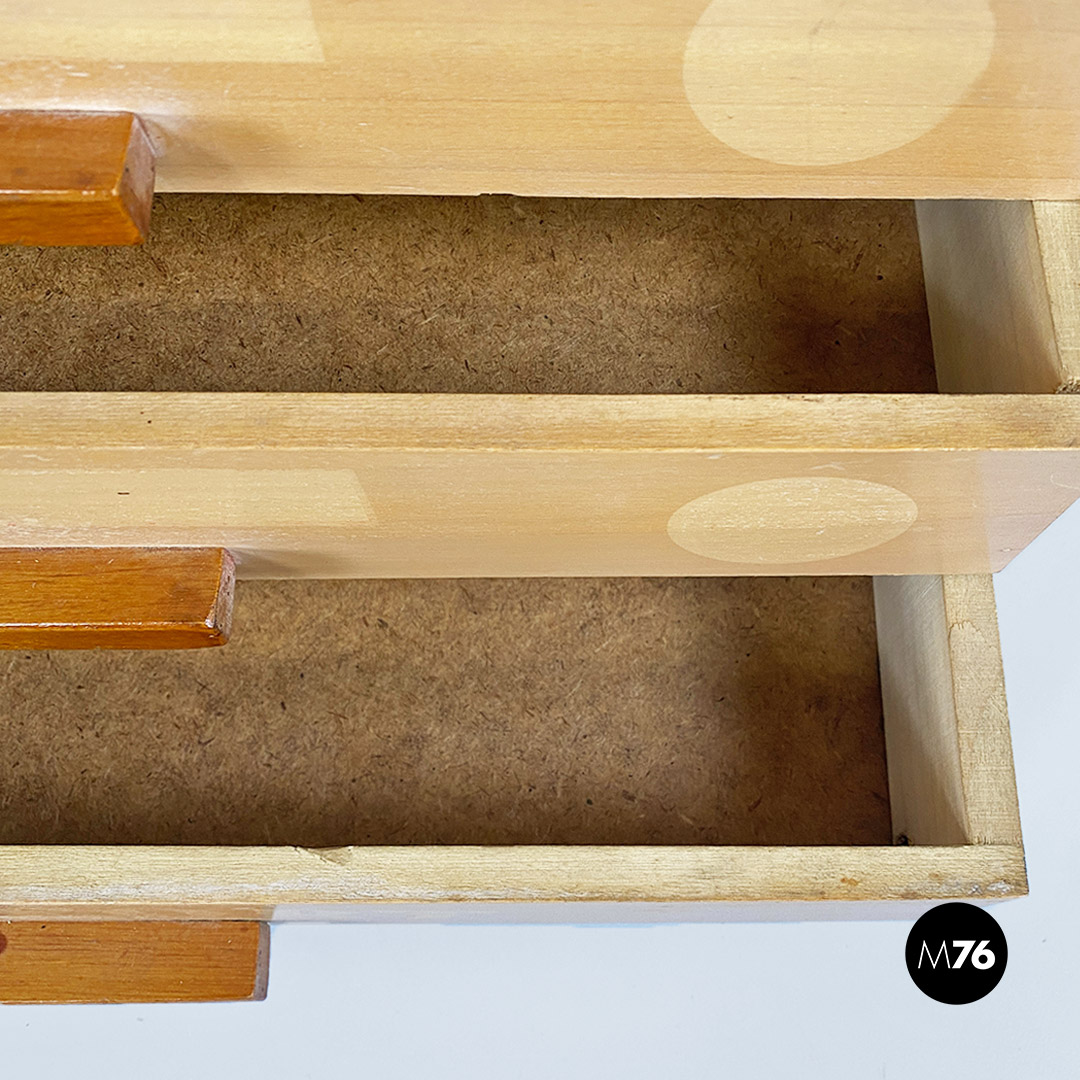 Cassettiera portacucito Filofort con struttura in legno chiaro e con maniglie in tinta noce.