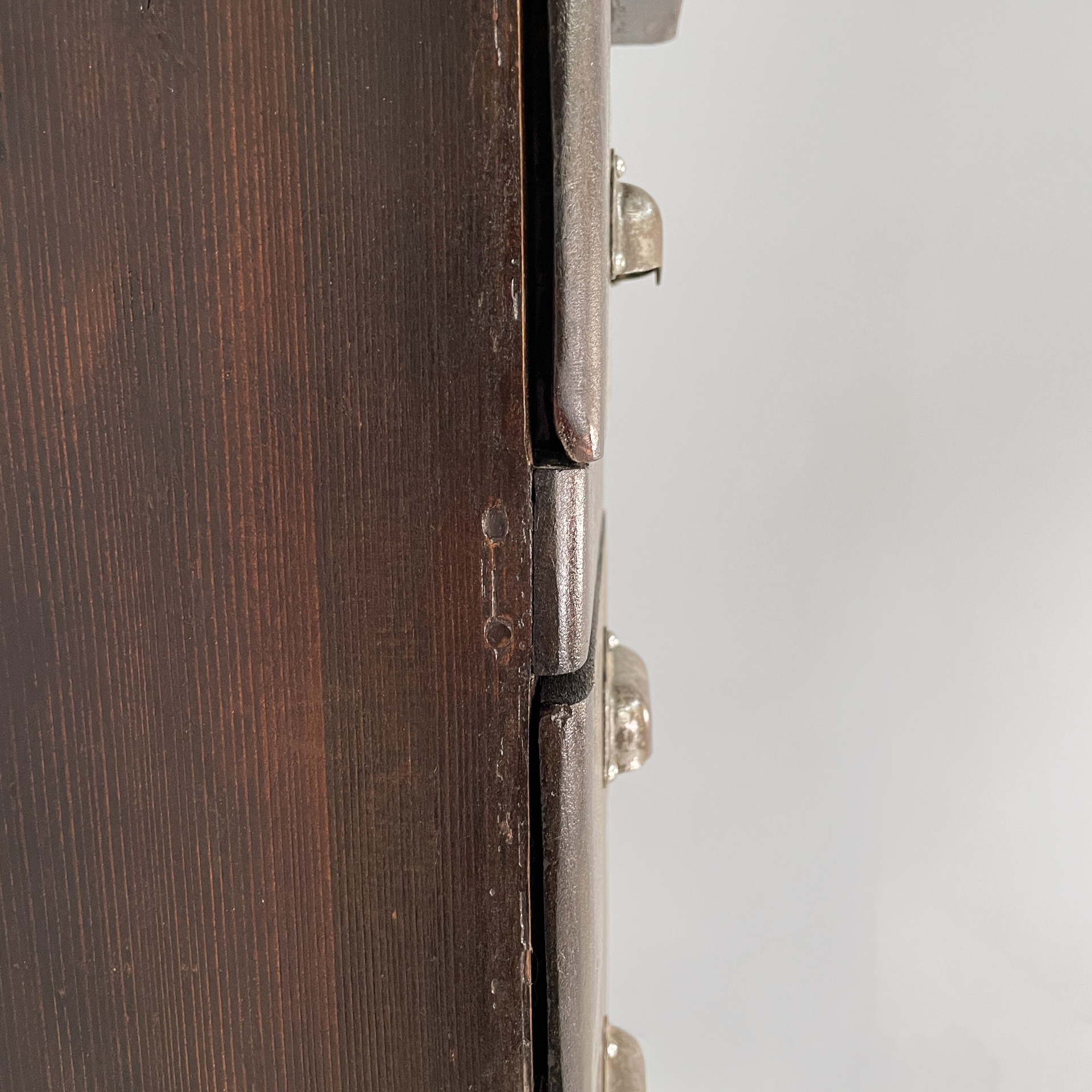 Cassettiera a base squadrata in legno con maniglie metallo. Sul fronte presenta undici cassetti rettangolari. Utilizzabile come mobile archivio.