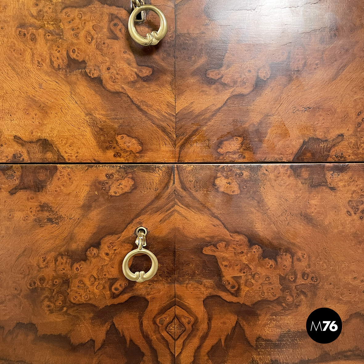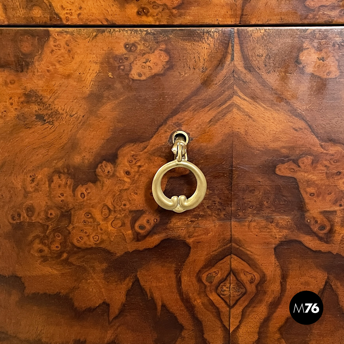 Cassettiera in legno, vetro e ottone, 1950 ca.