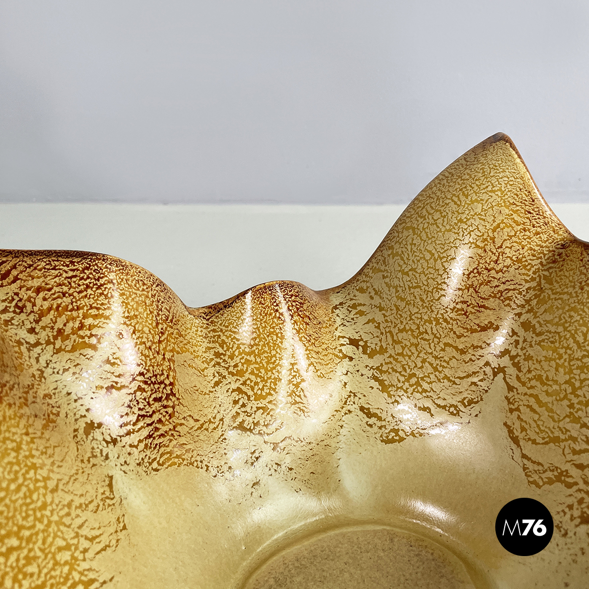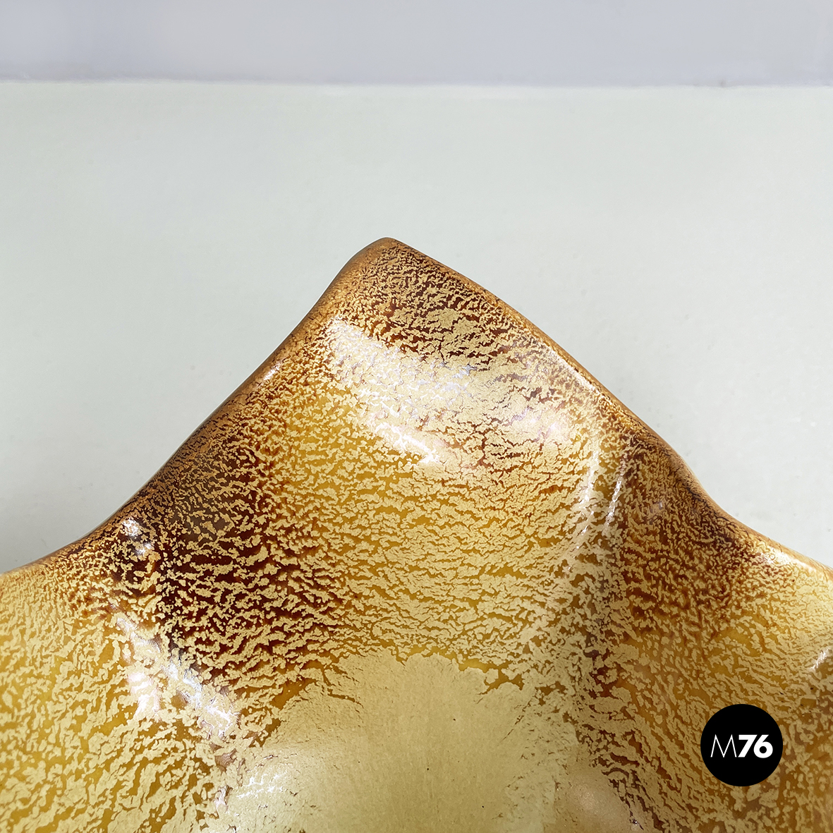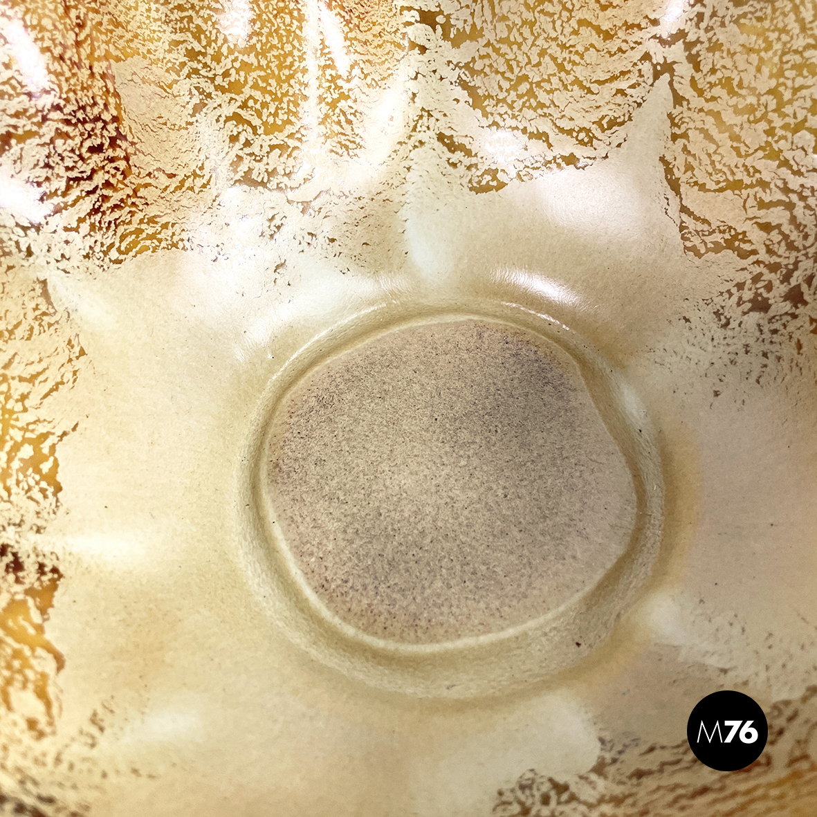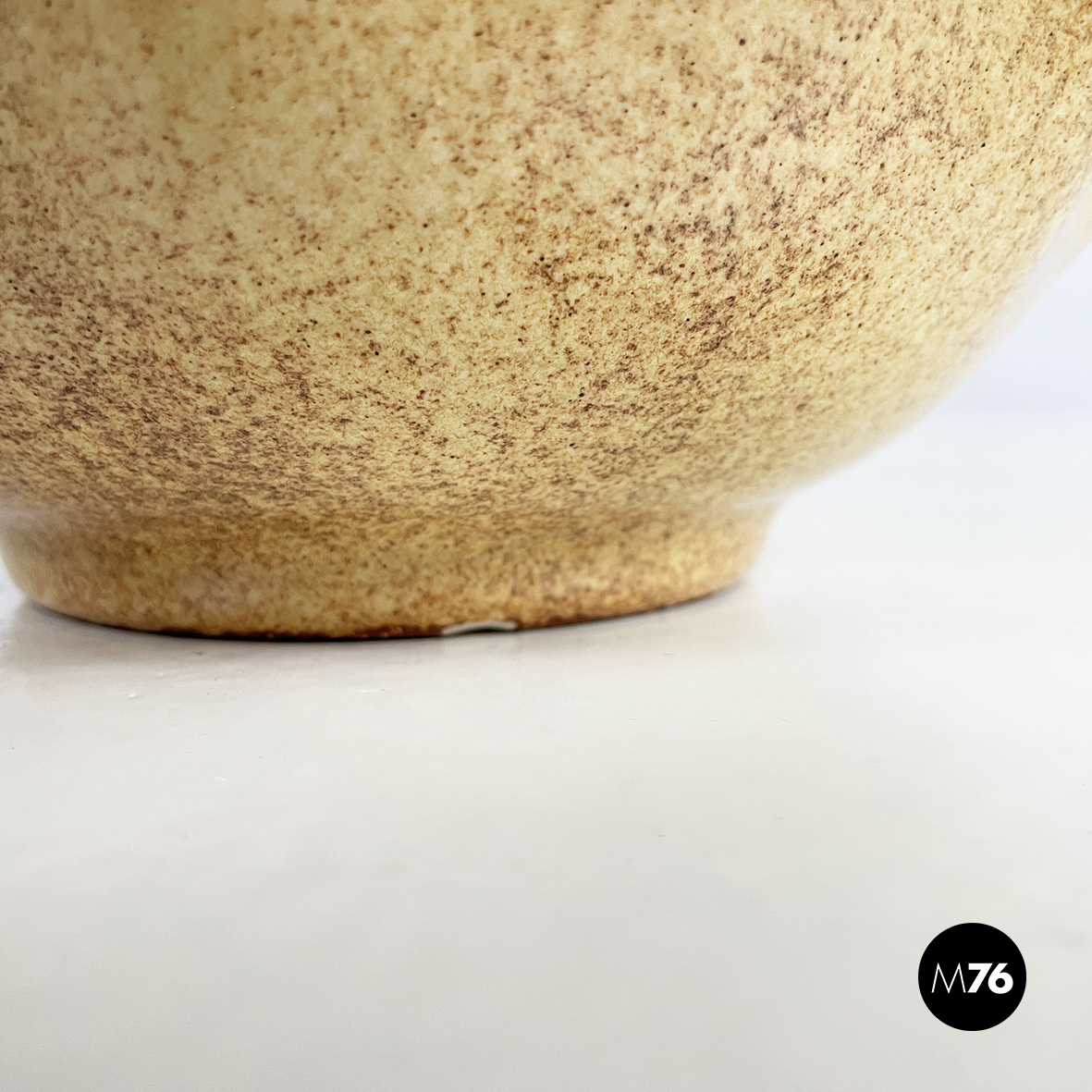 Centrotavola in ceramica dipinta tra i toni del marrone e del beige. Dalla base tonda il centrotavola si allarga prendendo una forma squadrata e organica. Questo può essere usato come portafrutta o come svuota tasche.