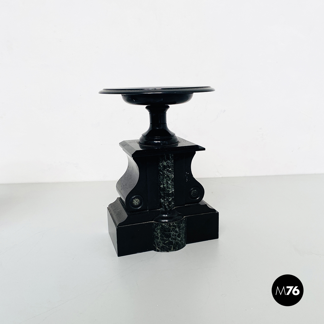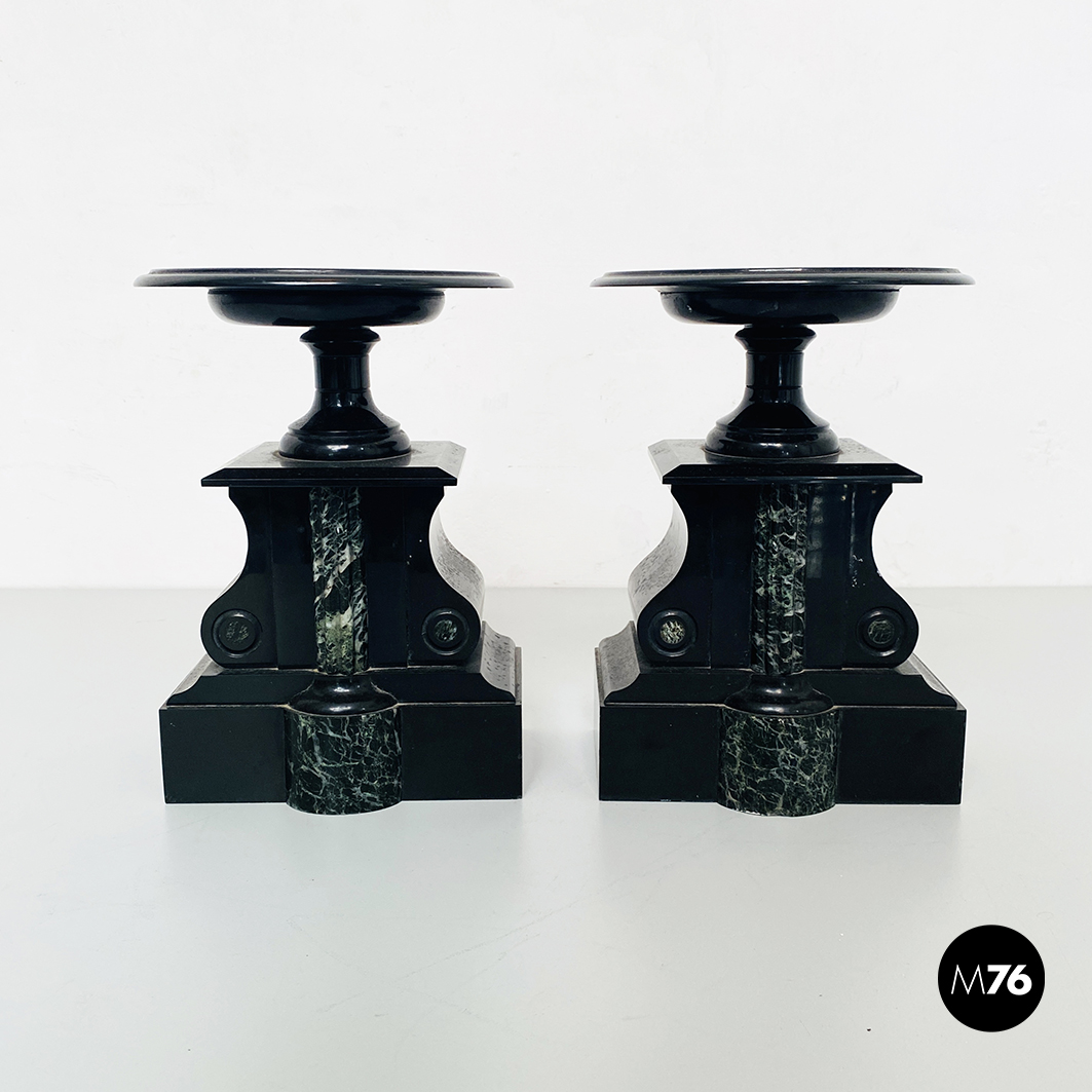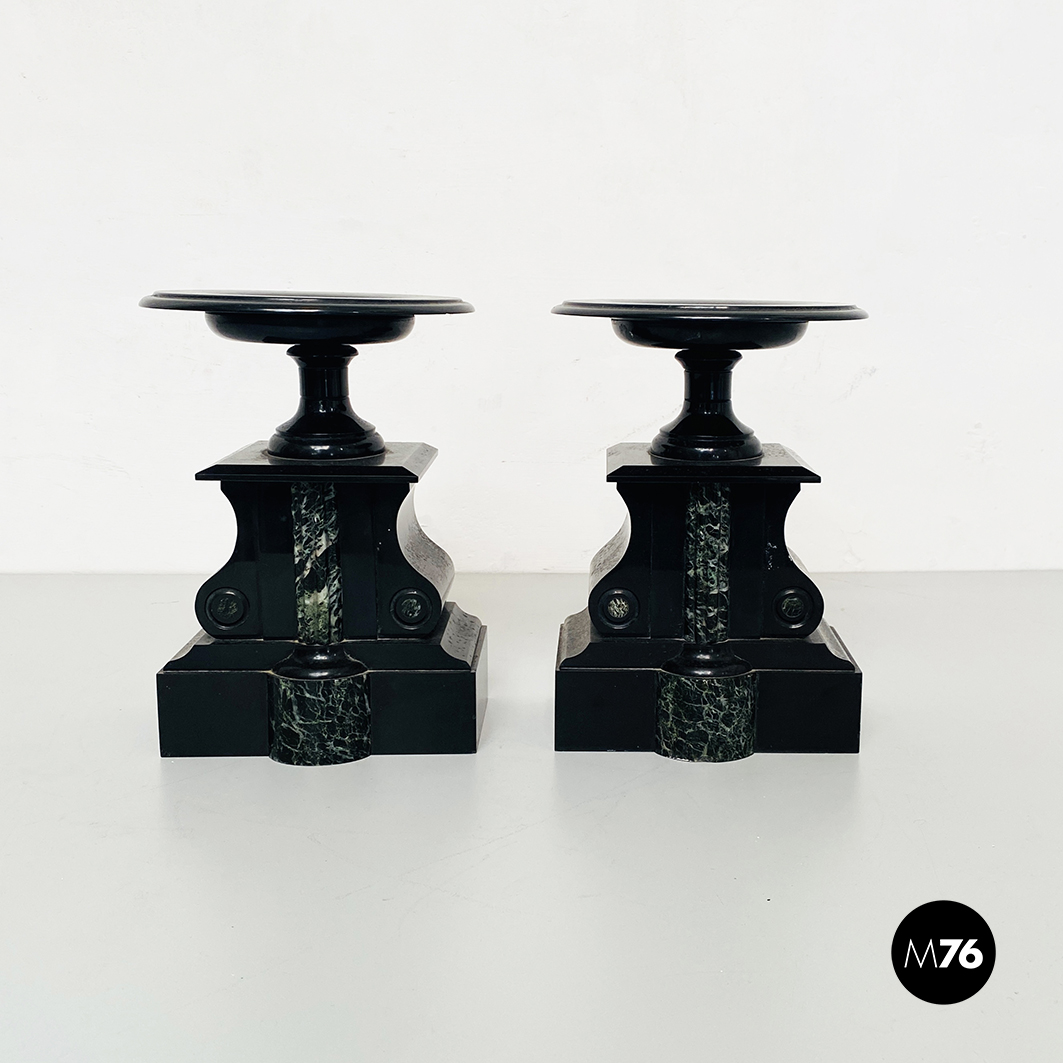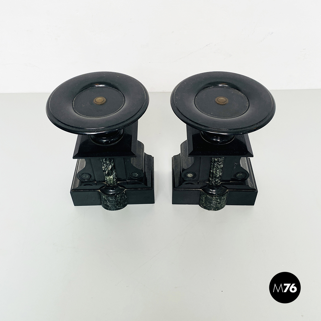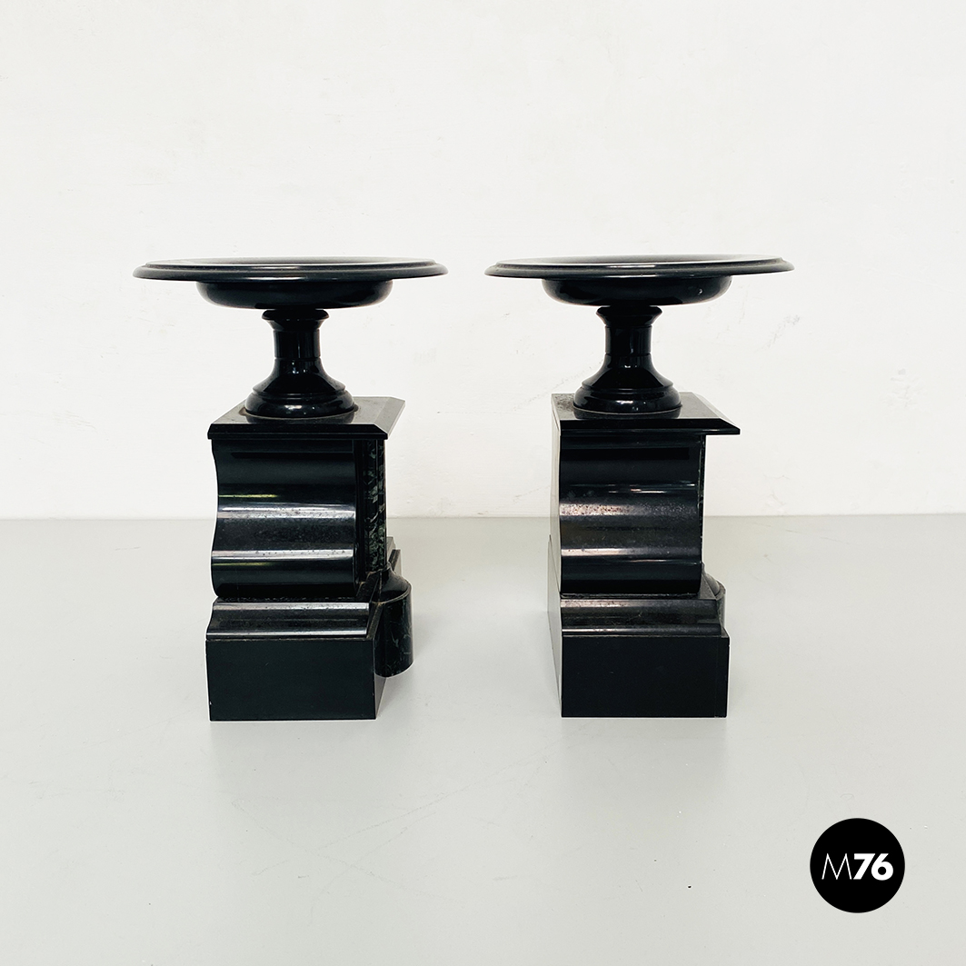 Coppia di centrotavola a forma di bilancia in onice nero. Lavorato e intagliato a mano.