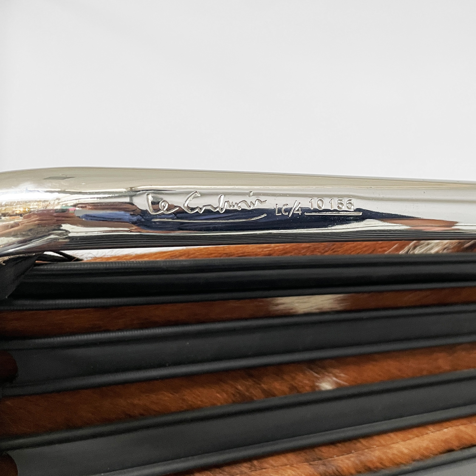 Prodotto da Cassina nel 1970 ca. e disegnata da di Le Corbusier Pierre Jeanneret e Charlotte Perriand nel 1930 ca. Marchio impresso sull’acciaio.