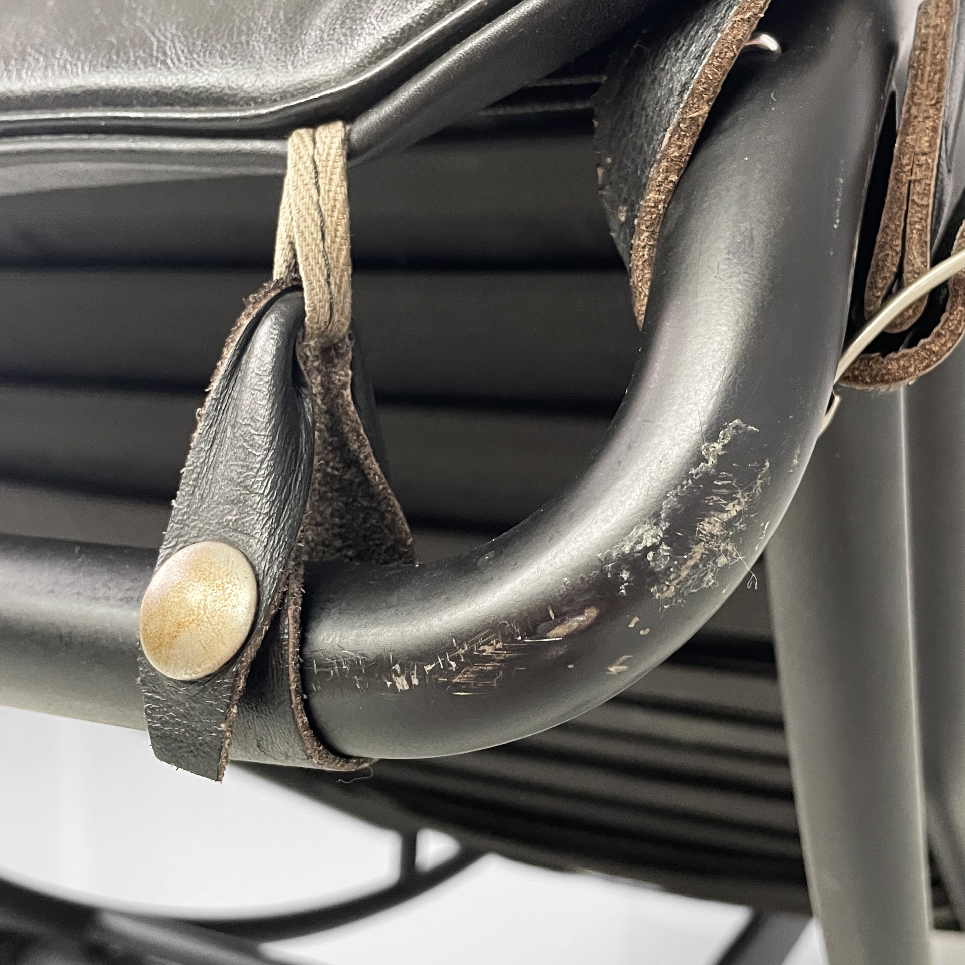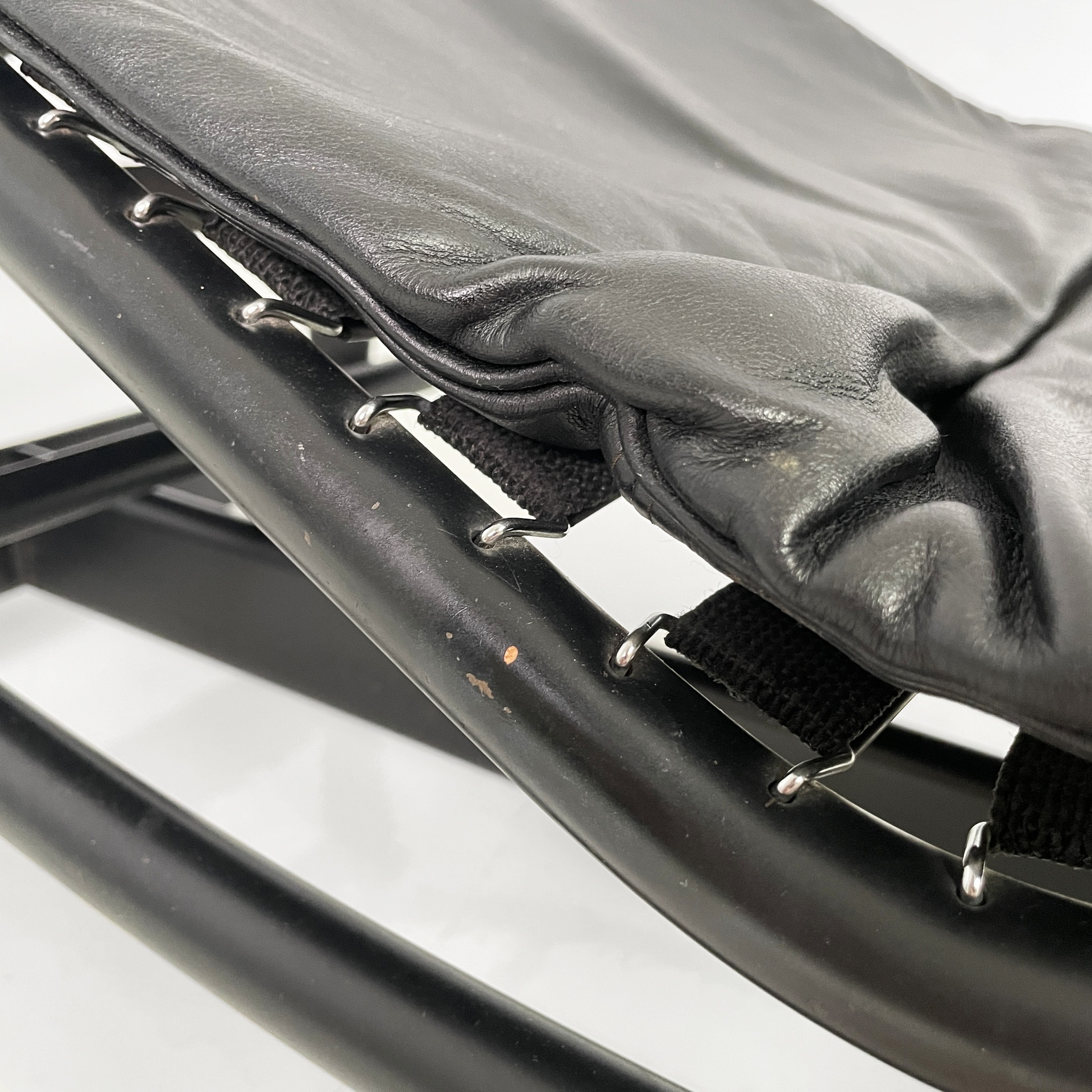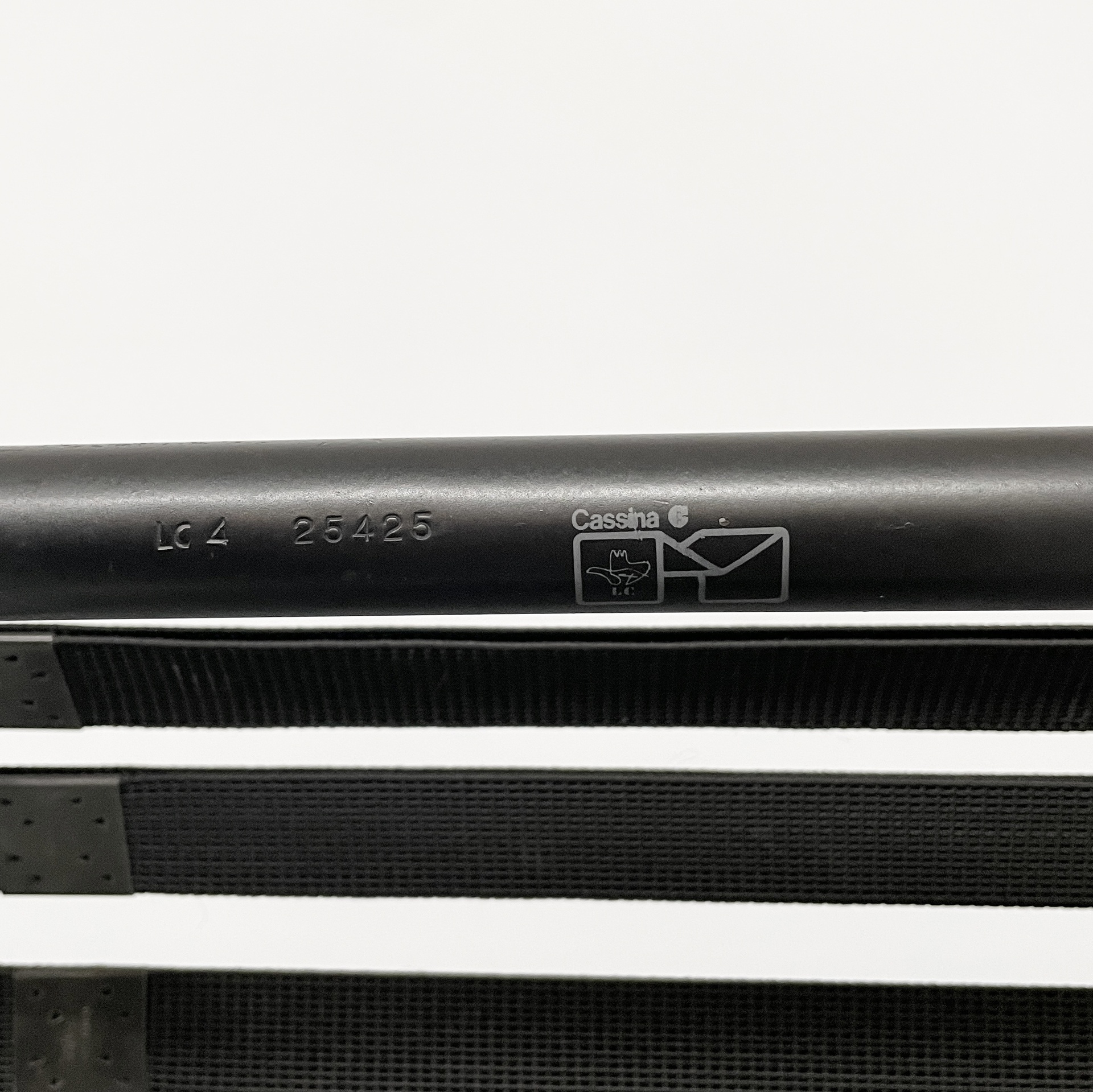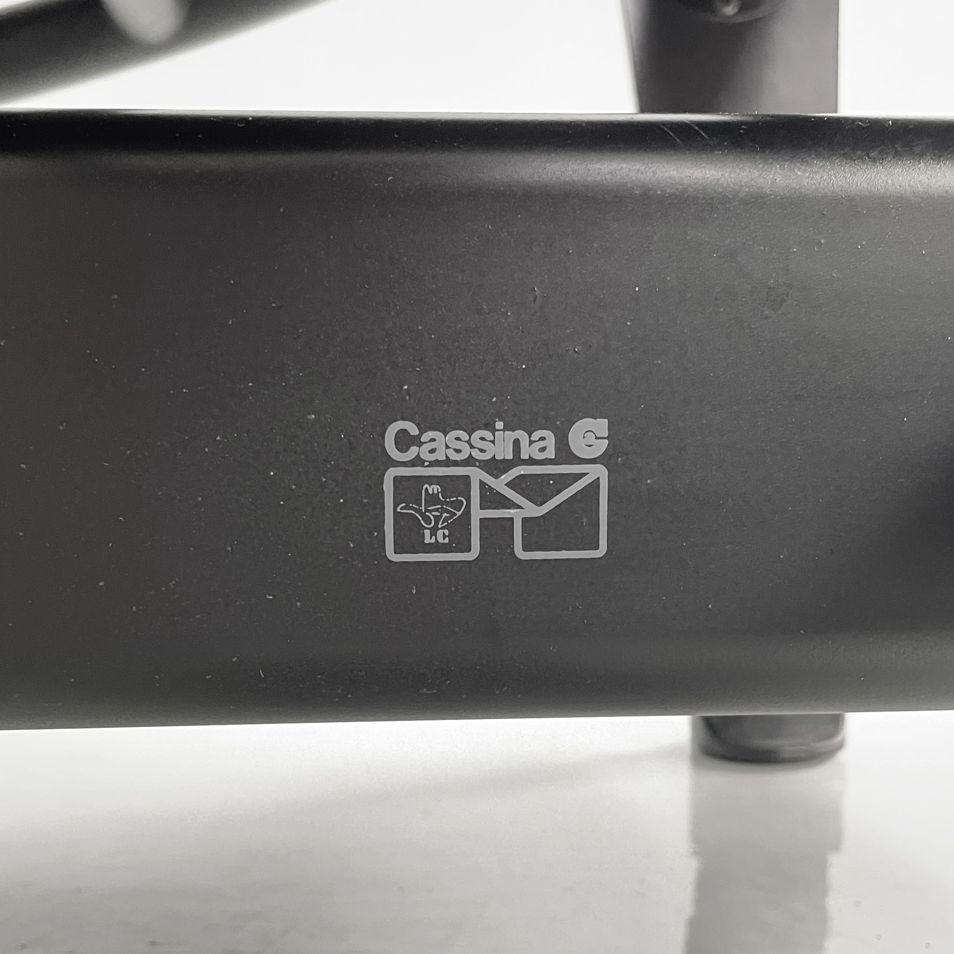 Prodotta da Cassina nel 1980 ca. e disegnata da Le Corbusier, Pierre Jeanneret e Charlotte Perriand nel 1928. Logo e numero di serie impresso sul tubolare della seduta. Logo impresso sulla base.