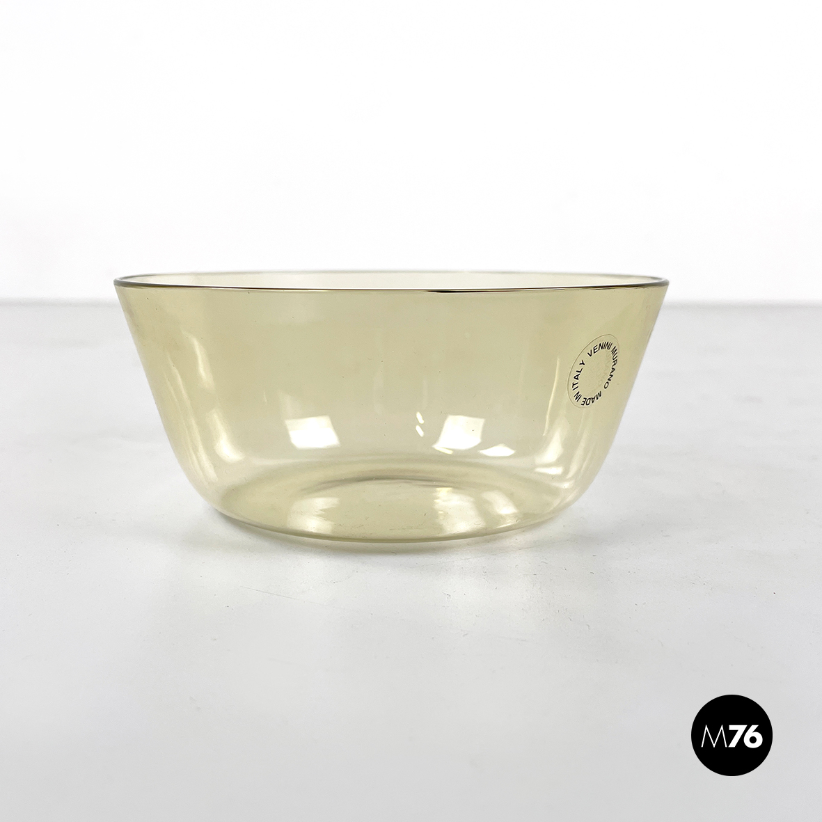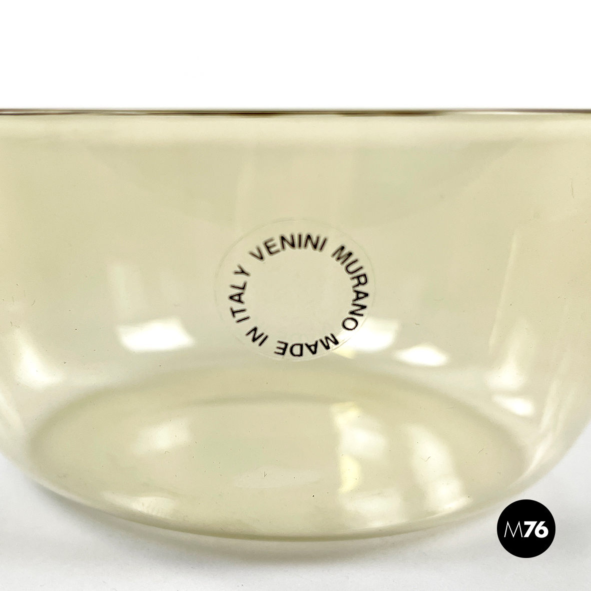 Ciotola decorativa a base tonda in vetro di Murano giallo trasparente. Perfetta come centrotavola o svuotatasche.