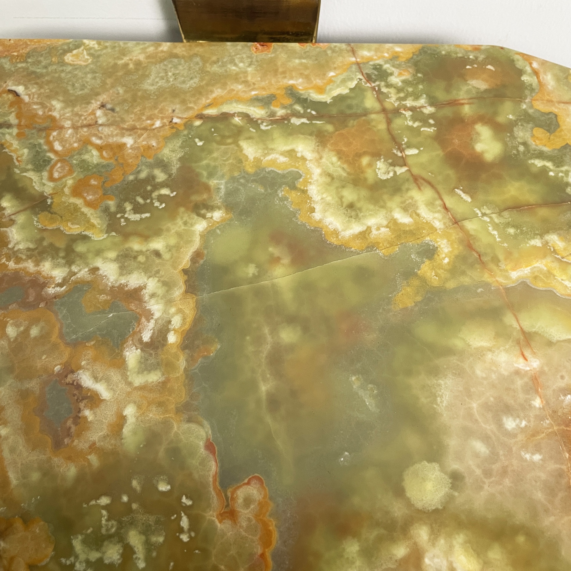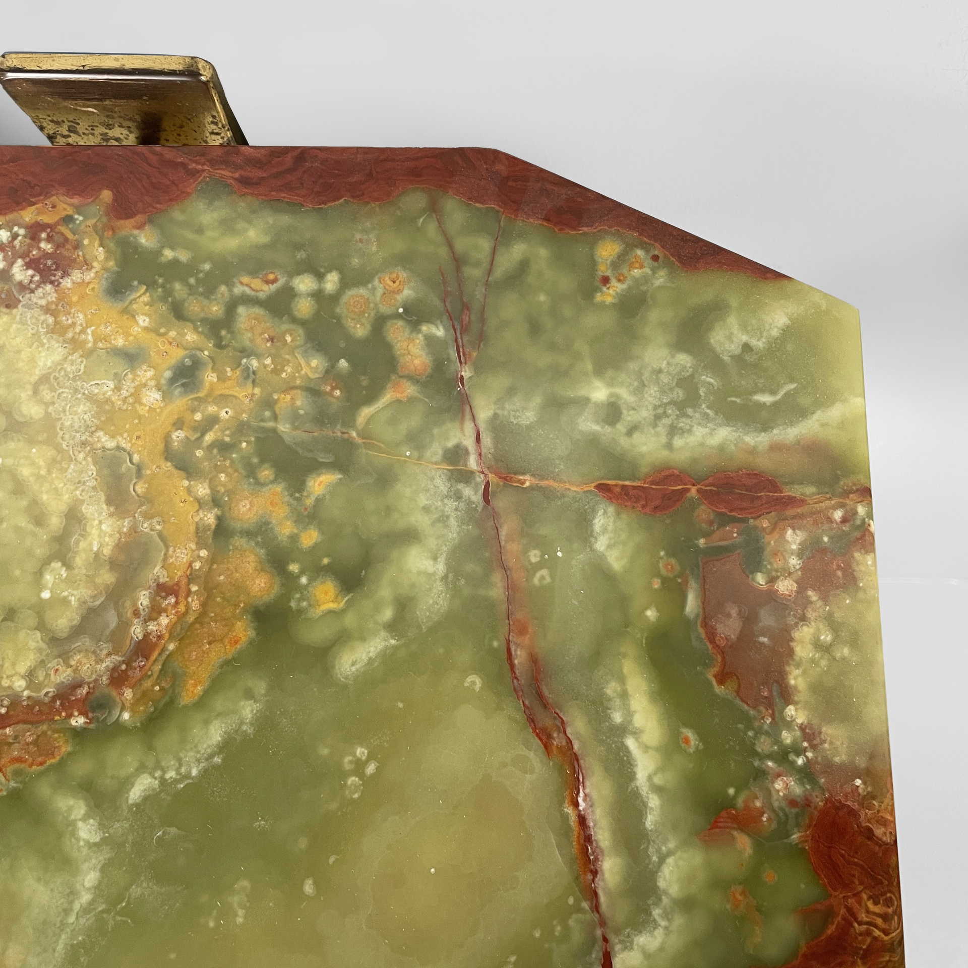 Buone condizioni. L’onice presenta segni dati dal tempo e dall’utilizzo. L’ottone in patina presenta segni del tempo.