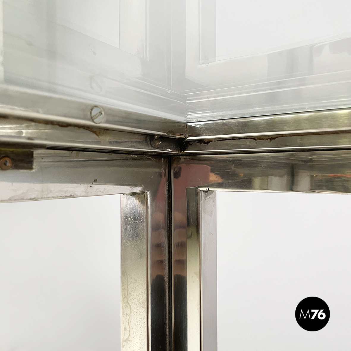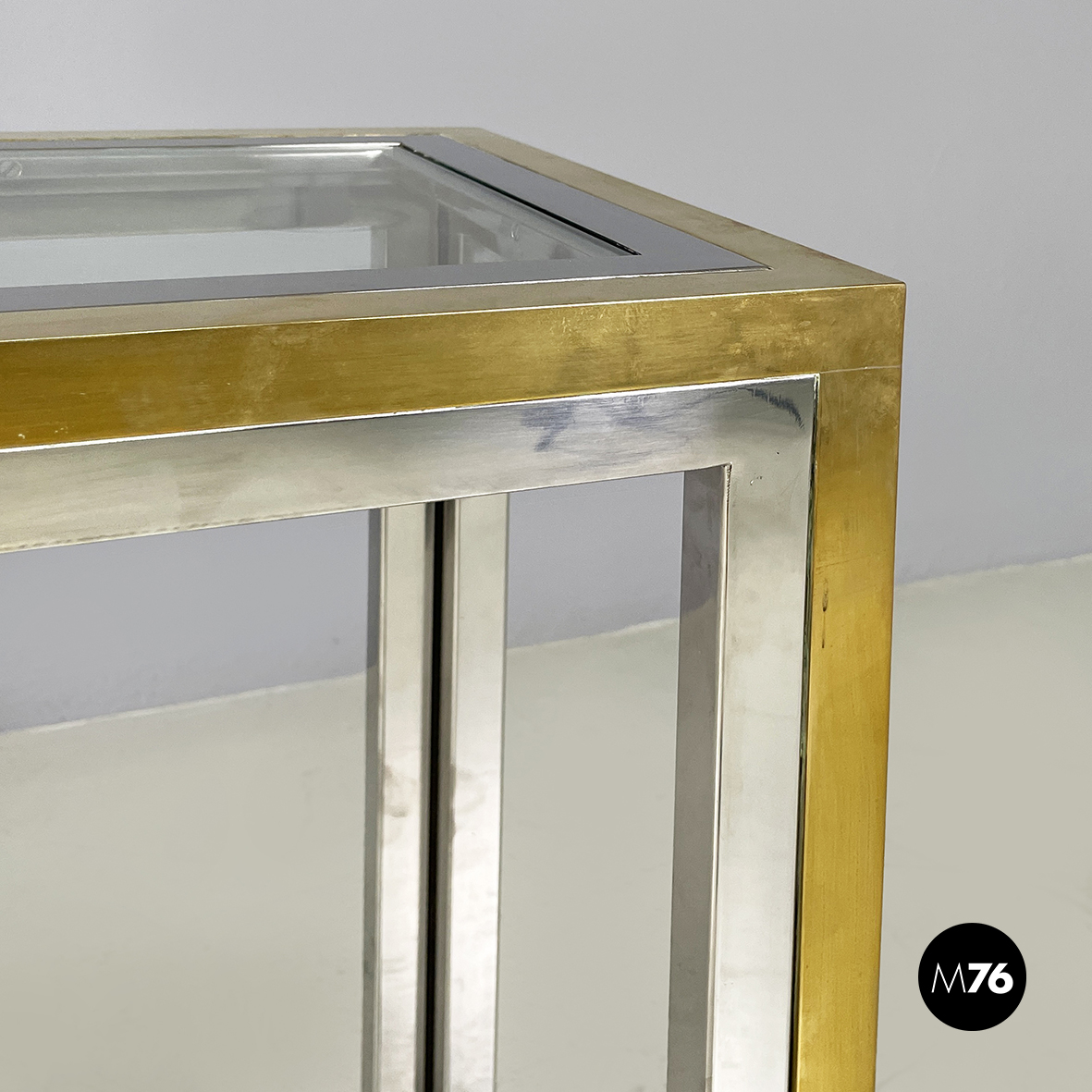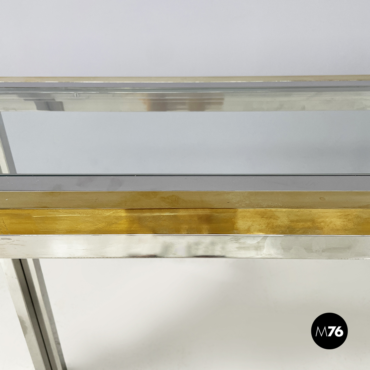 Buone condizioni, la console presenta graffi sparsi sul metallo e sull’ottone. Leggeri segni al vetro.