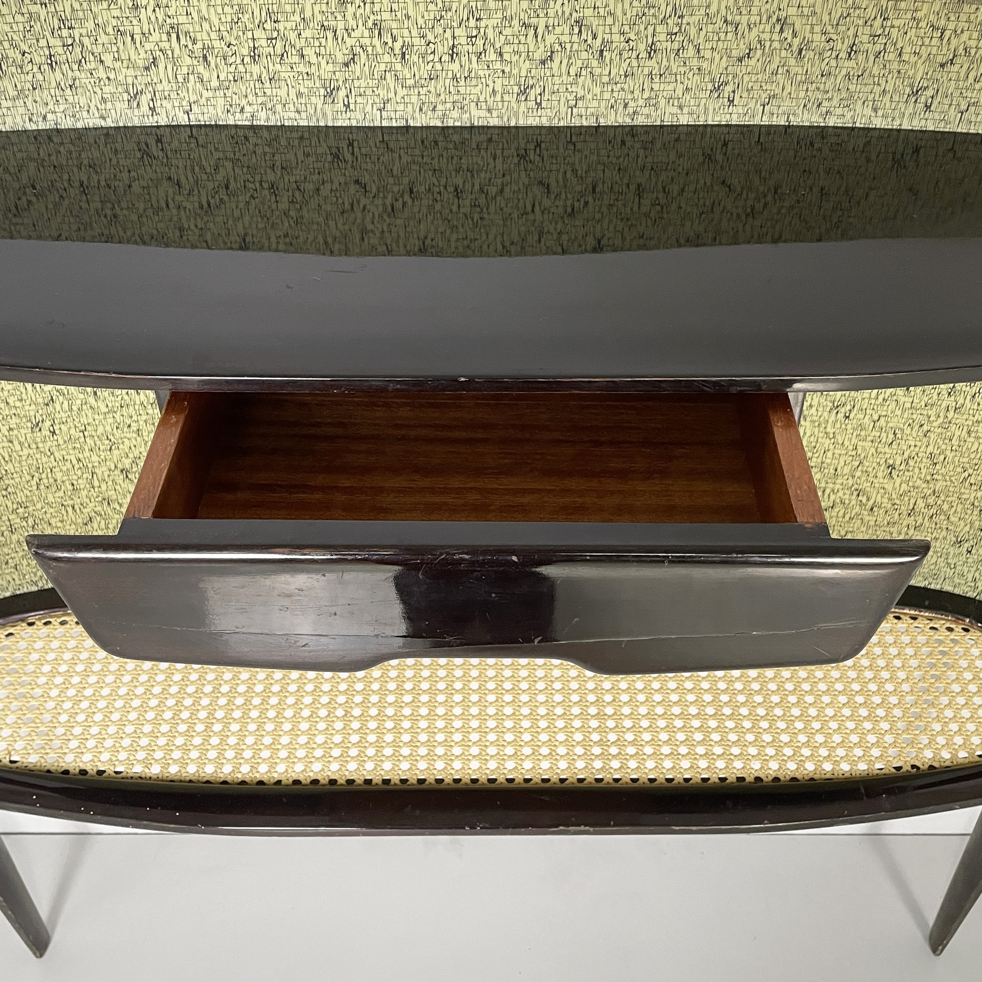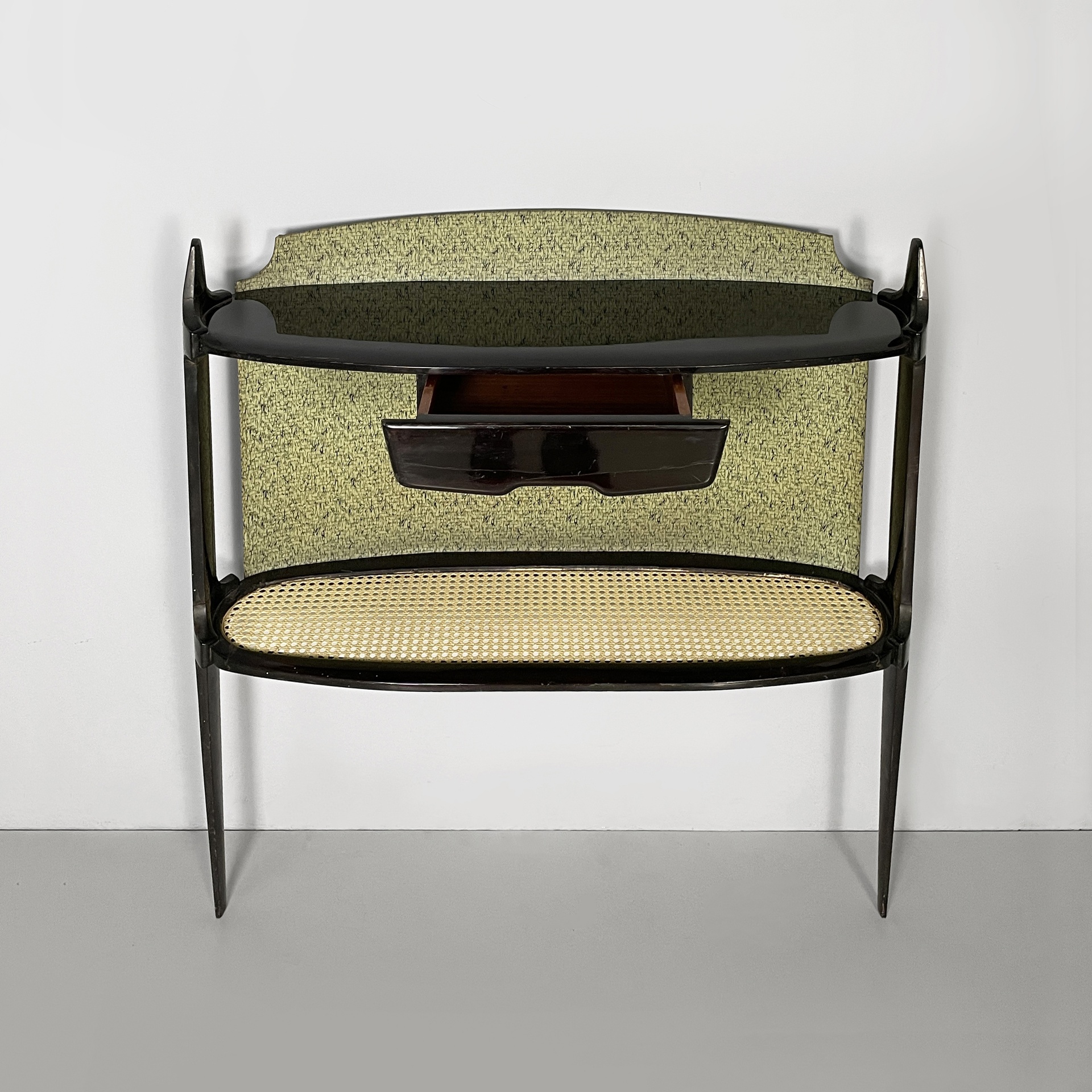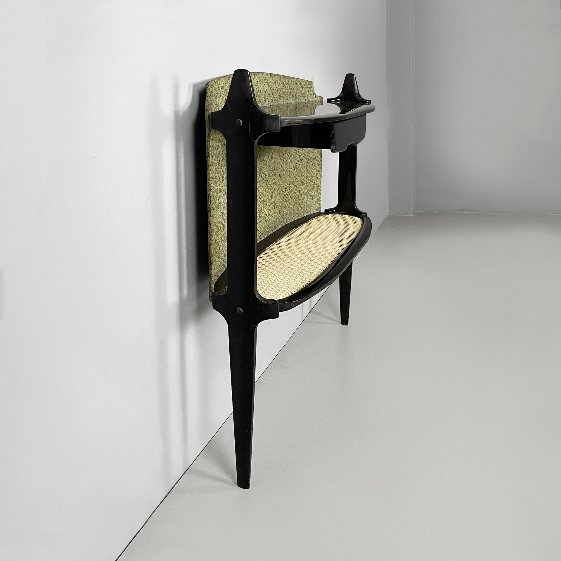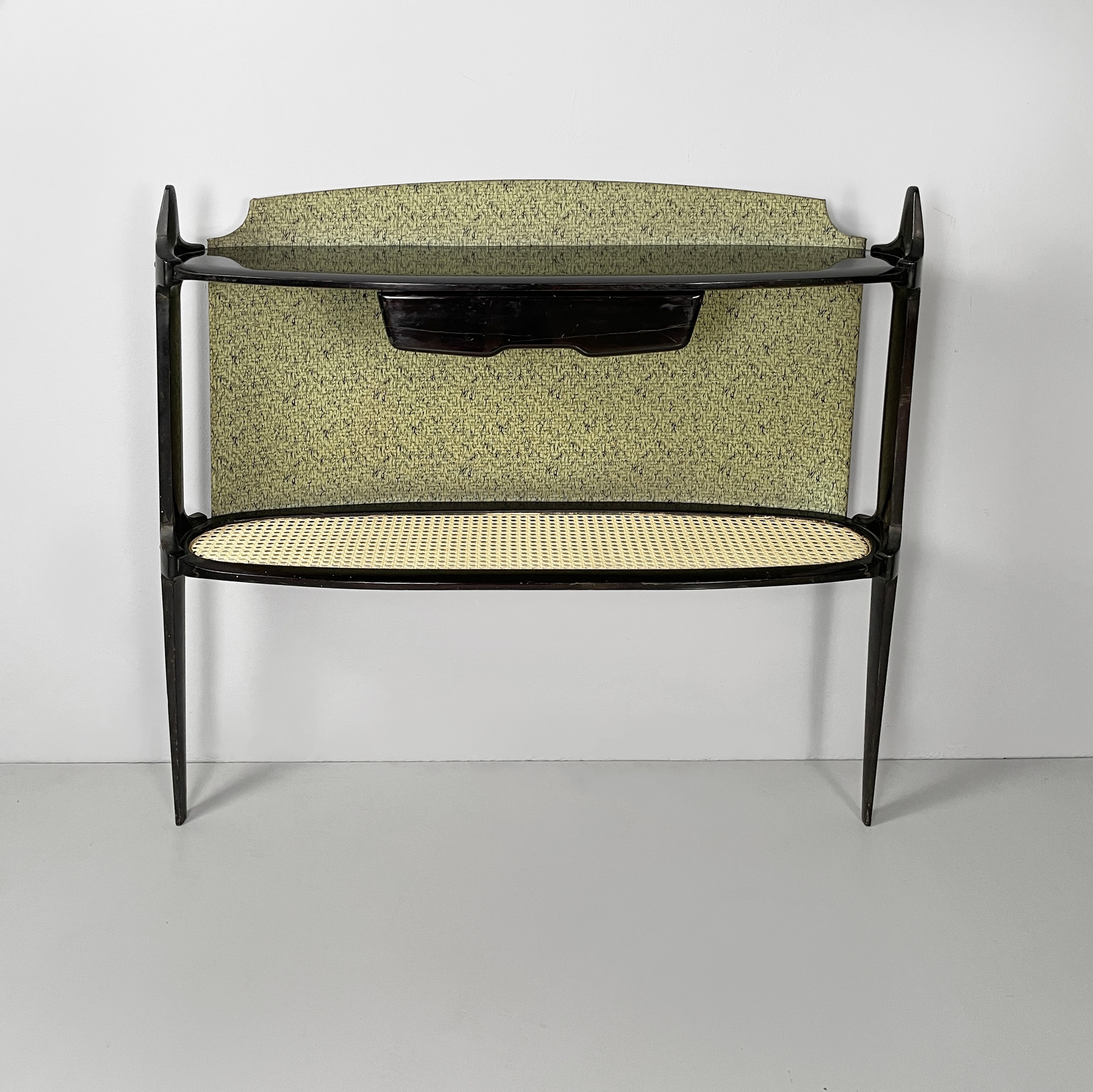 Consolle in legno, tessuto e paglia, 1950 ca.