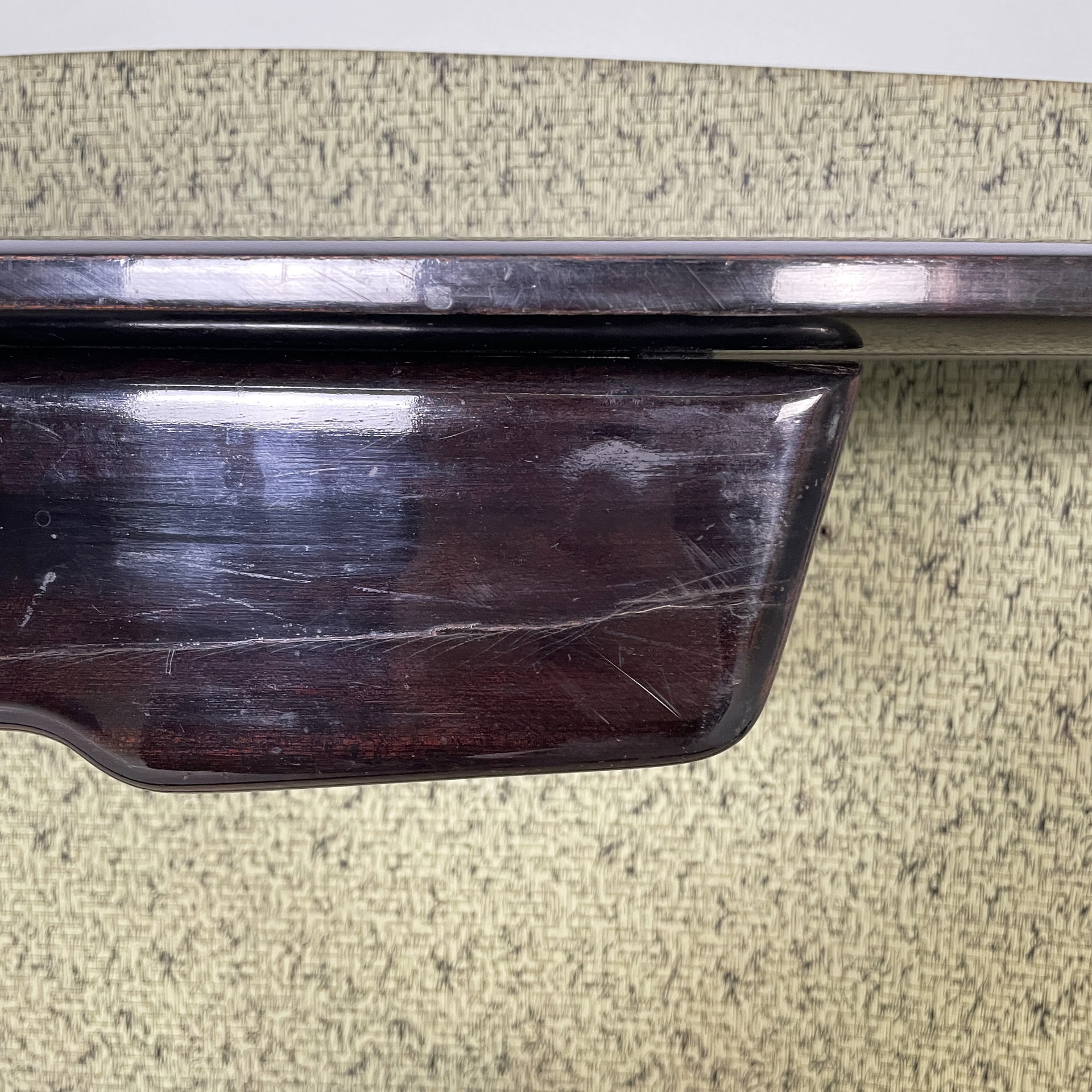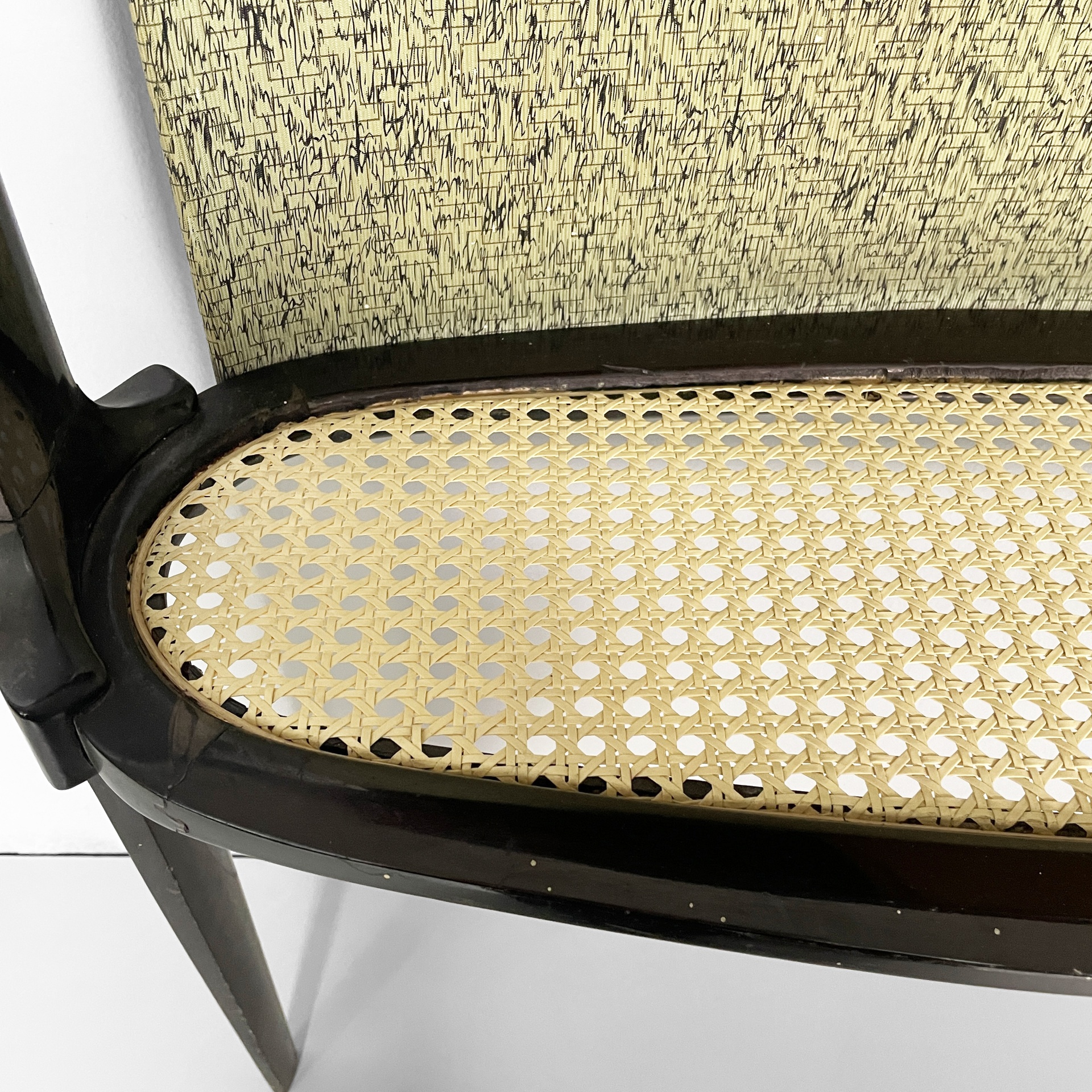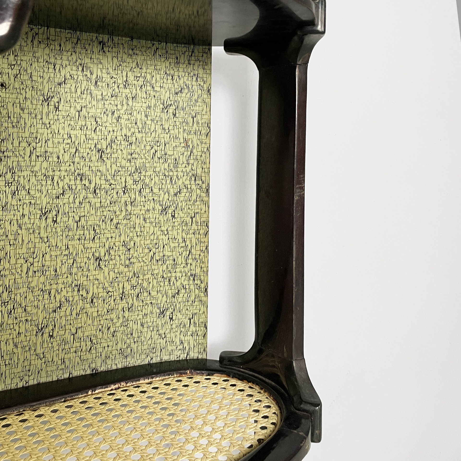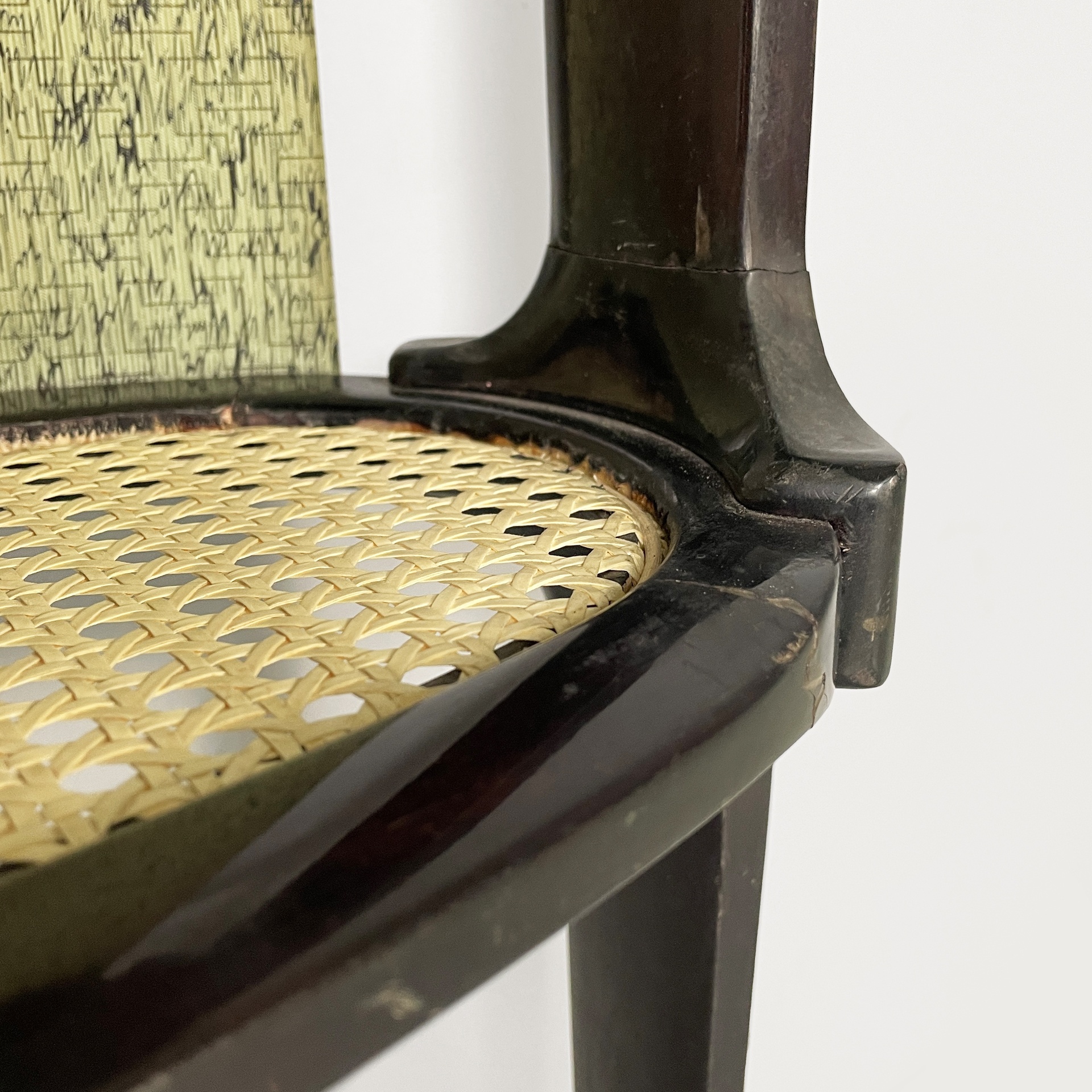 Condizioni vintage. Il legno presenta numerosi segni e piccole mancanze di colore. La finitura lucida non è omogenea, in alcuni punti è diventata opaca a causa del tempo. Segni sparsi dati dal tempo. Paglia rifatta a nuovo.