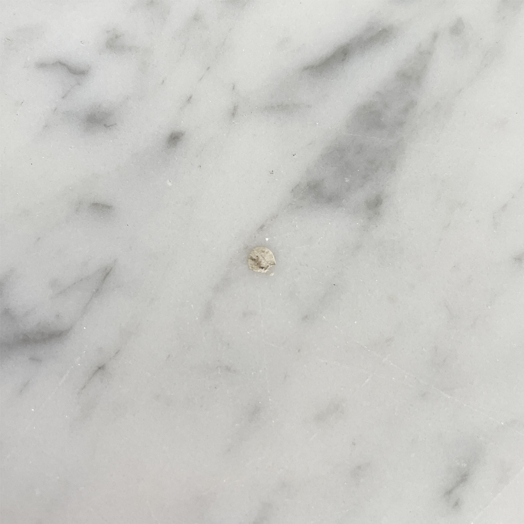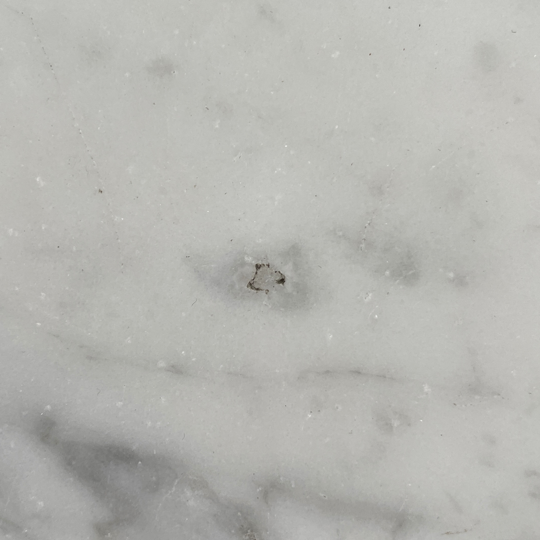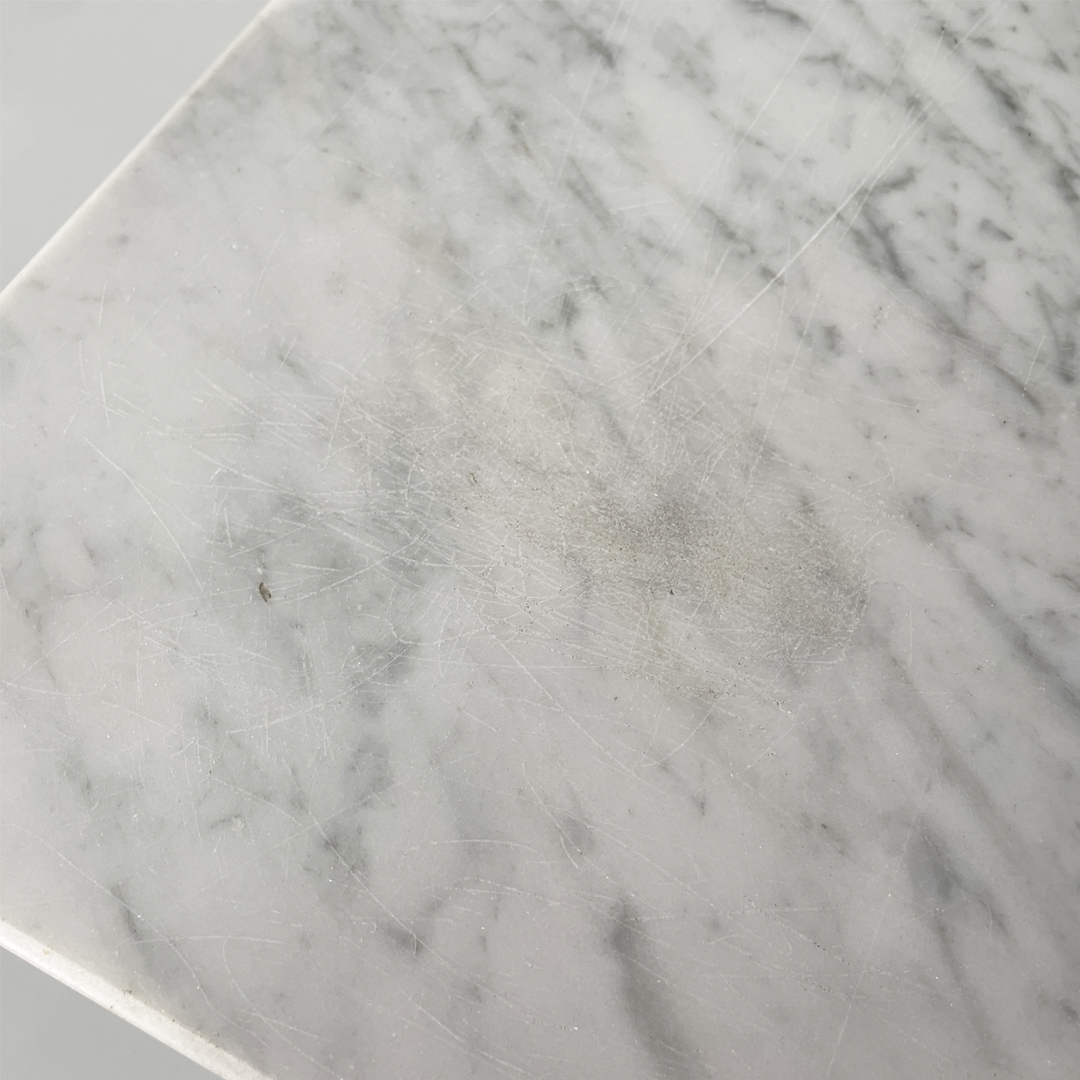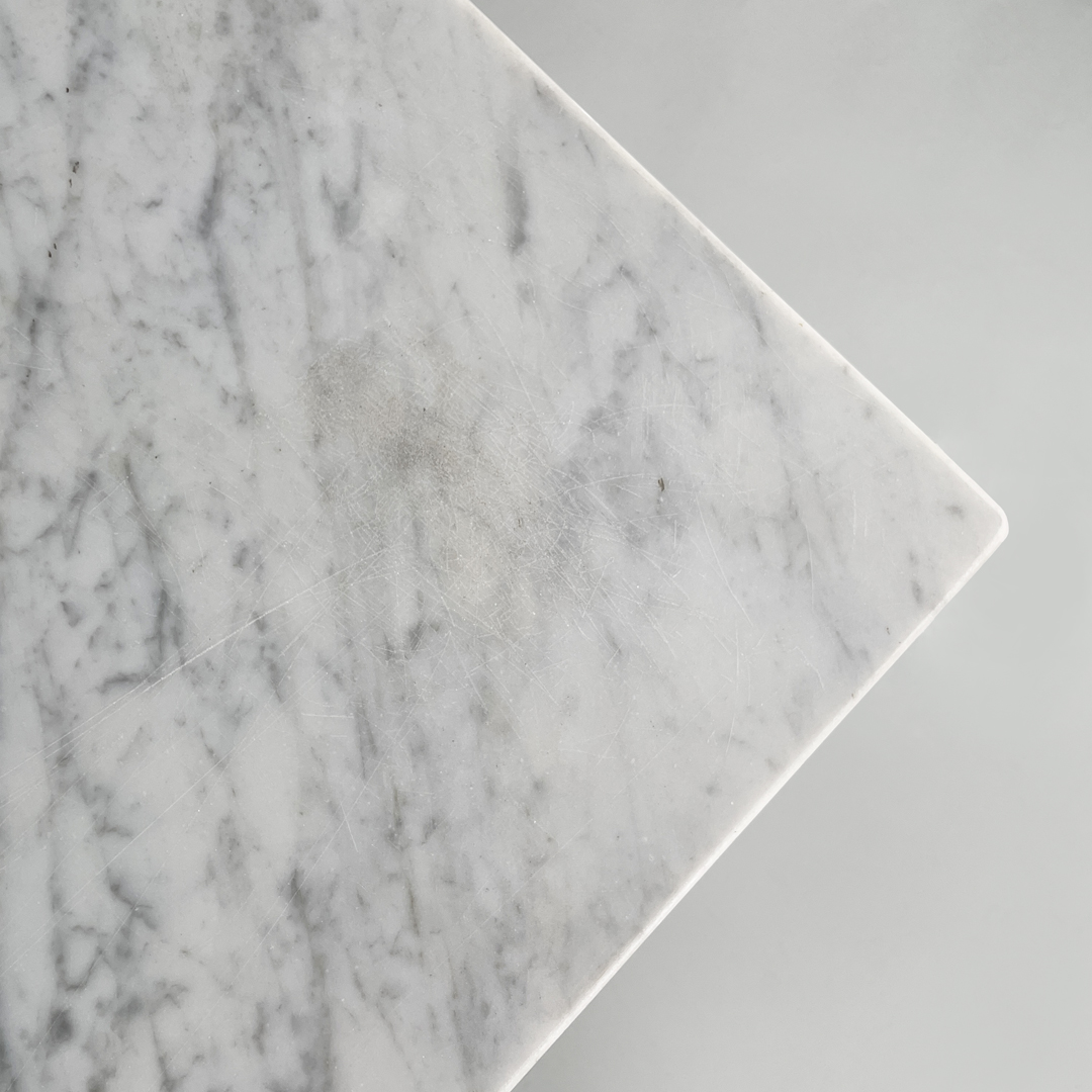 Il piano è in marmo bianco con angoli smussati.