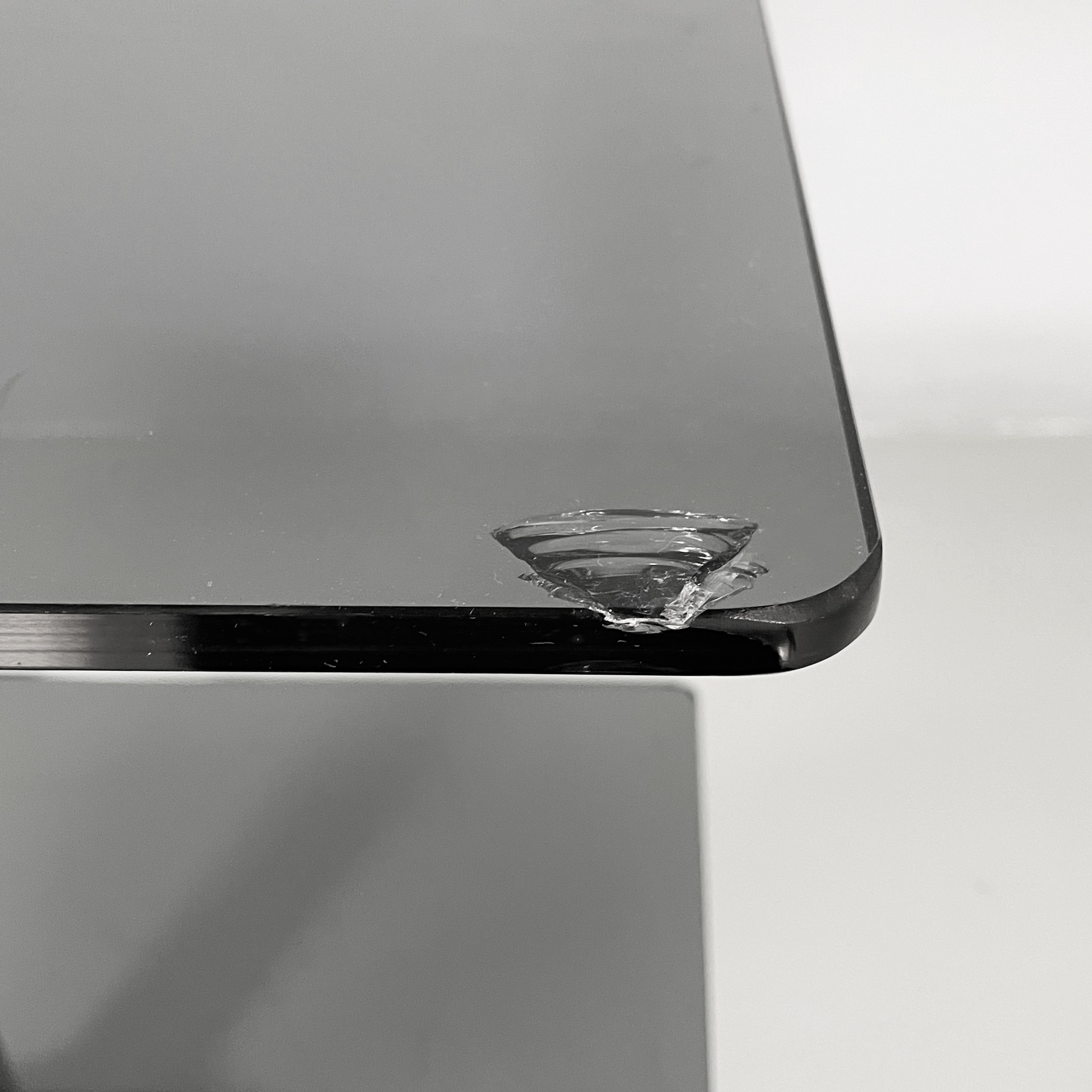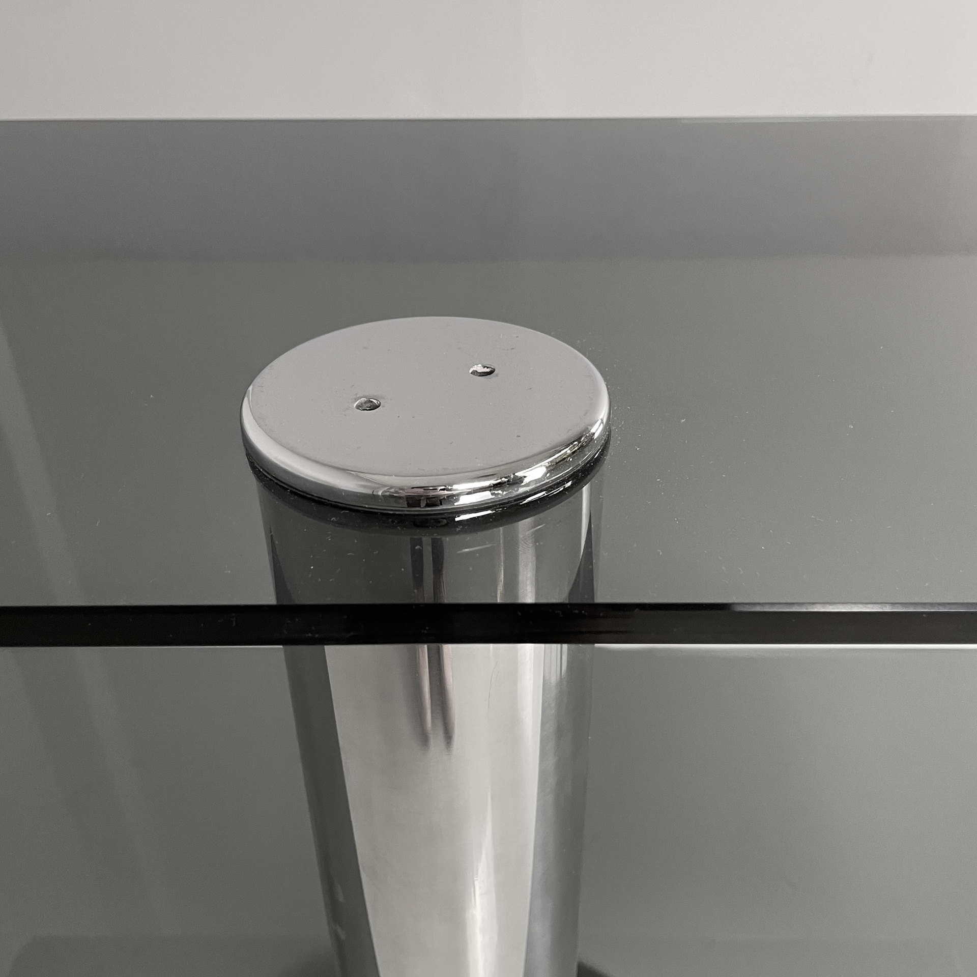 Consolle in vetro fumè e acciaio, 1980 ca.