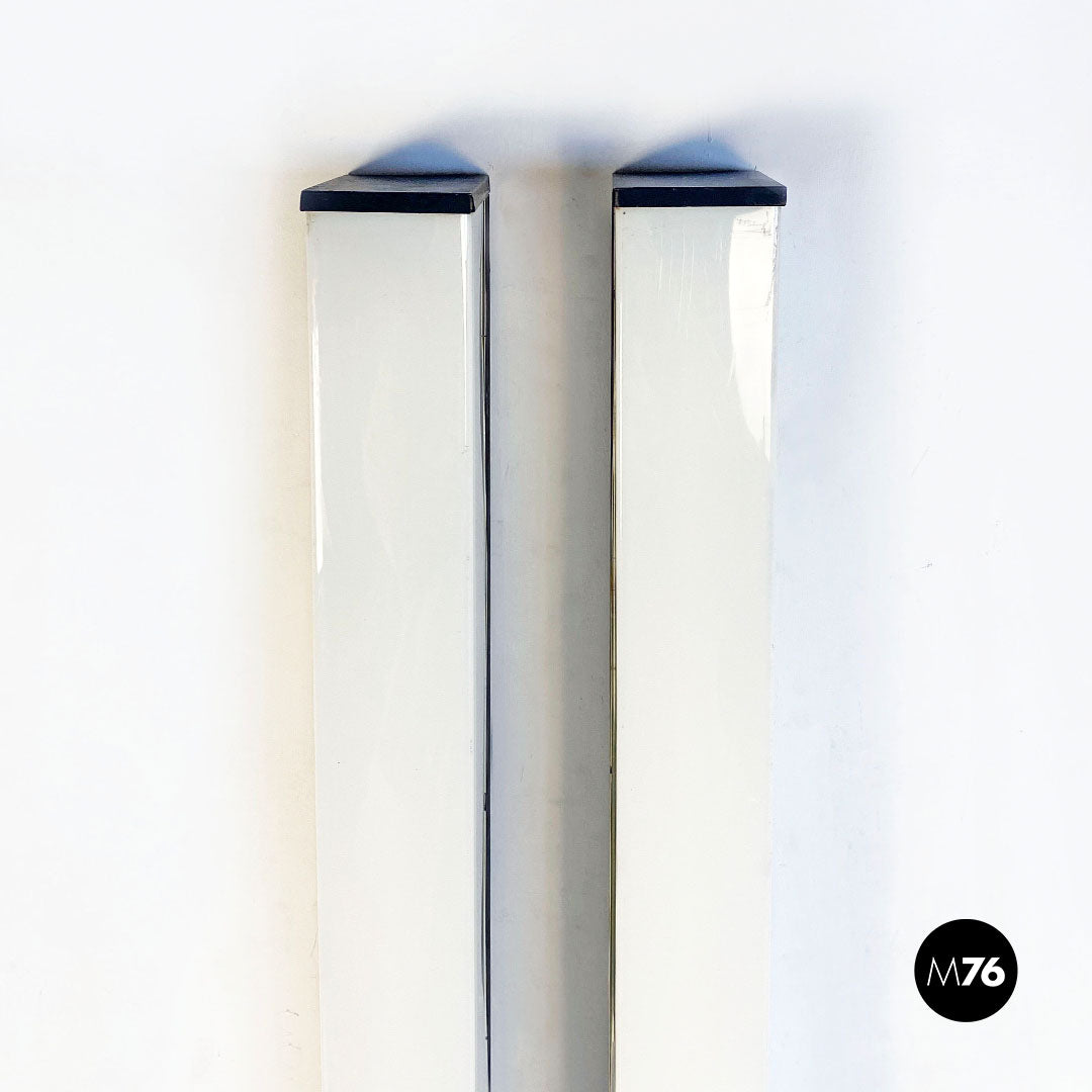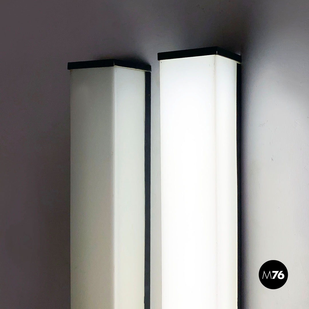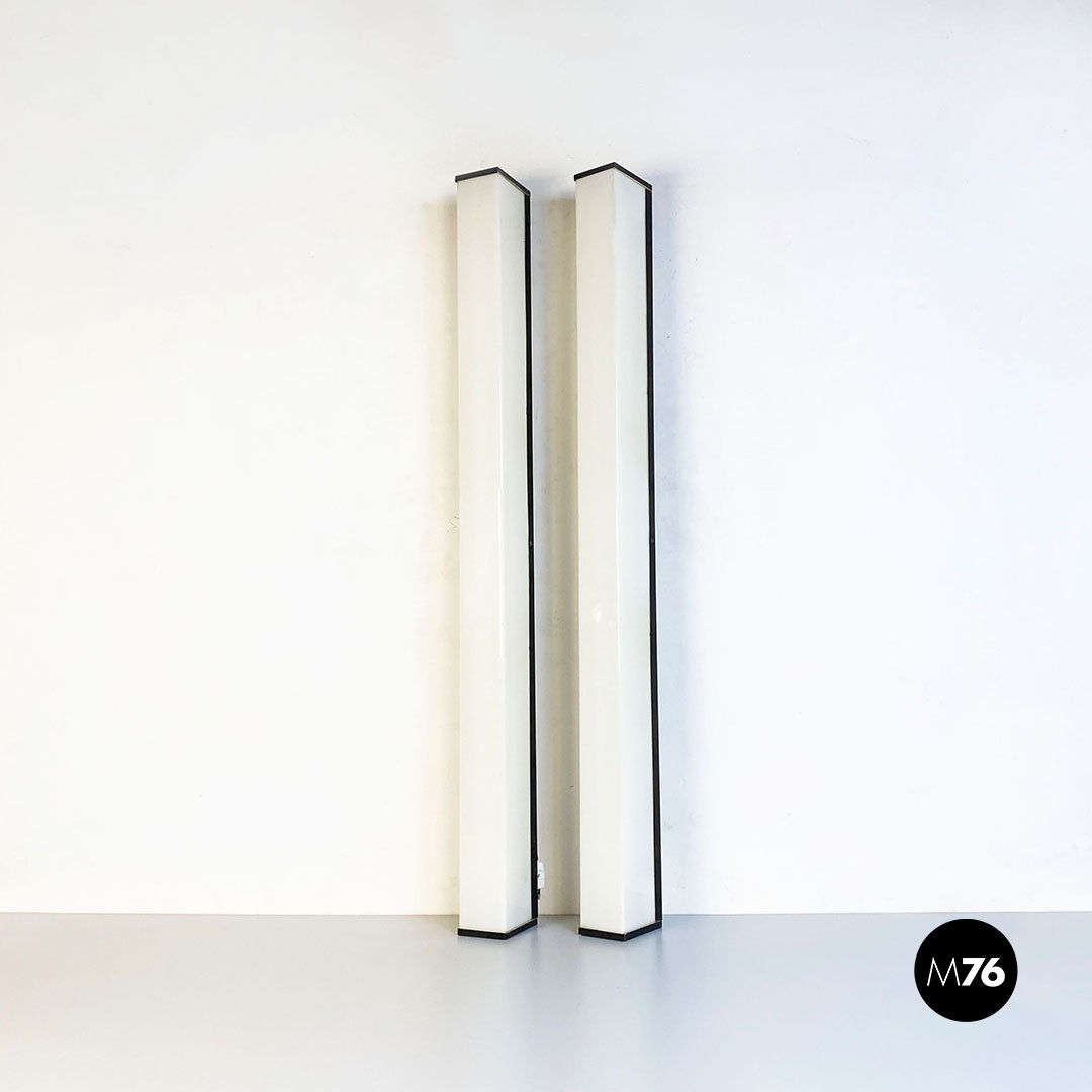 Coppia di lampade da parete o da soffitto a neon da soffitto o da parete con struttura metallica nera e parte frontale in plexiglass entrambe già provviste di neon led. all’interno. Posizionabili anche come lampade da pavimento.