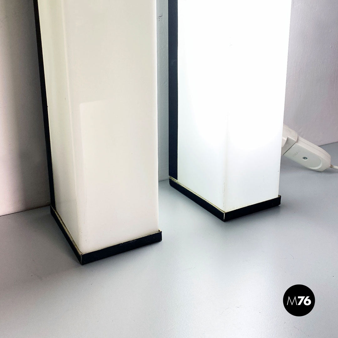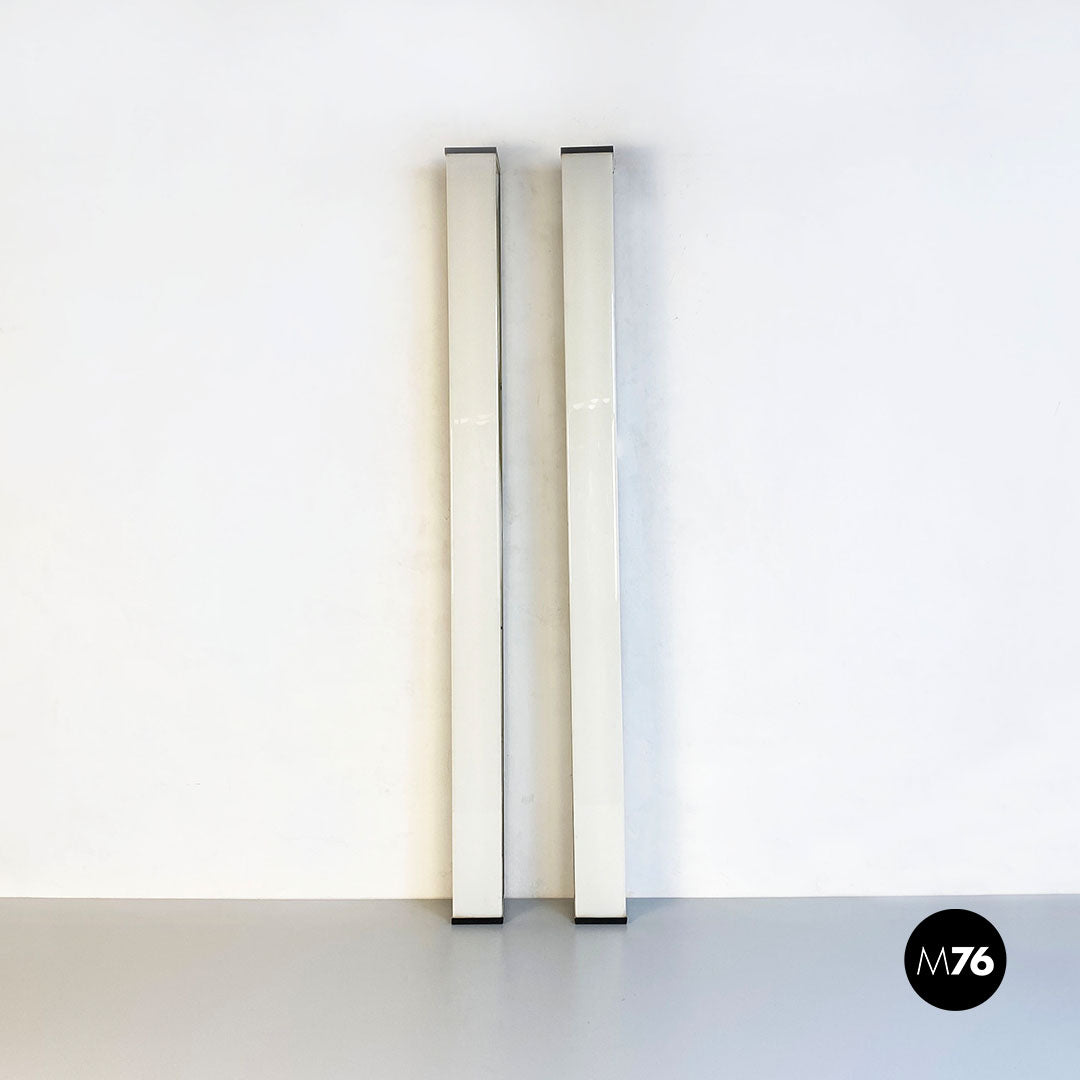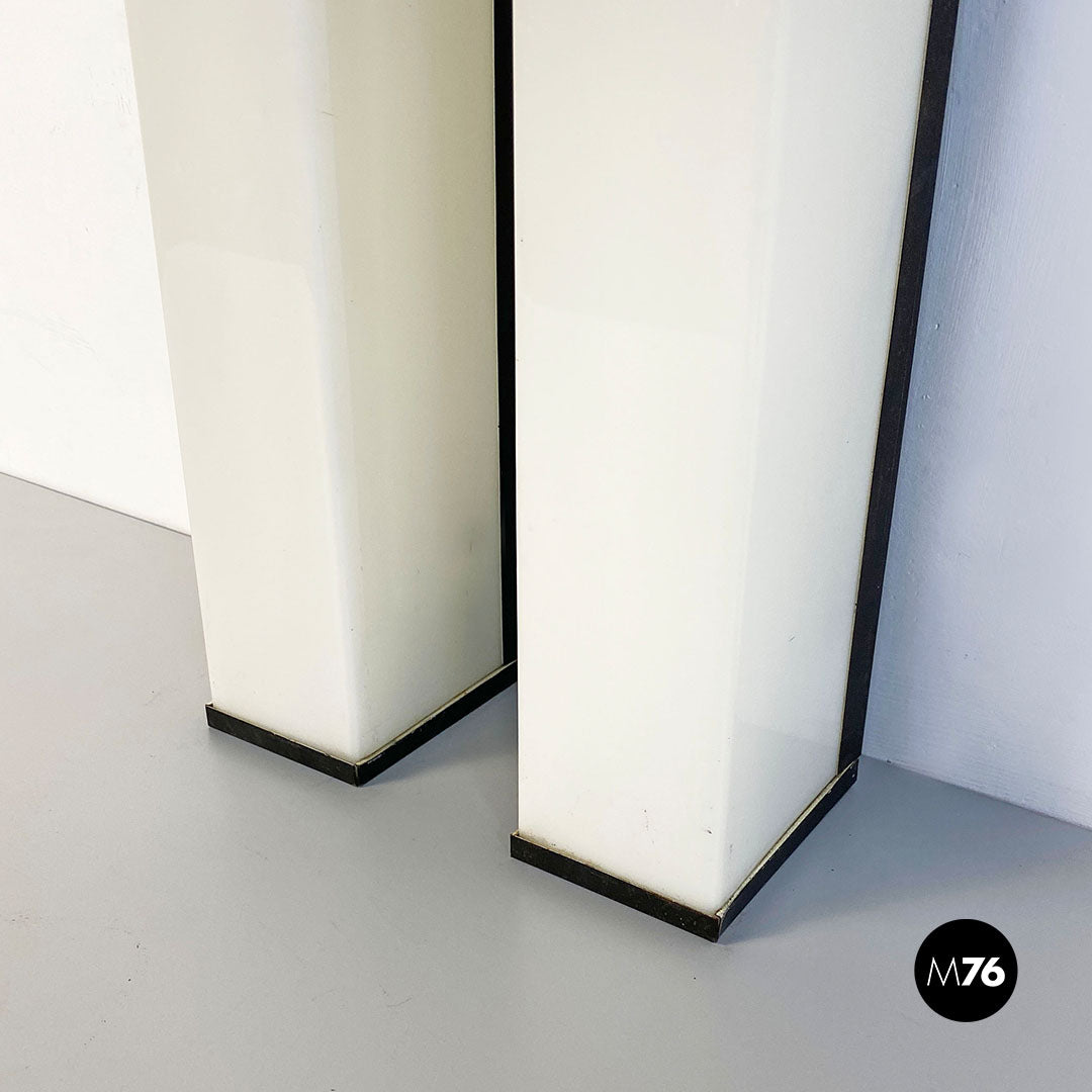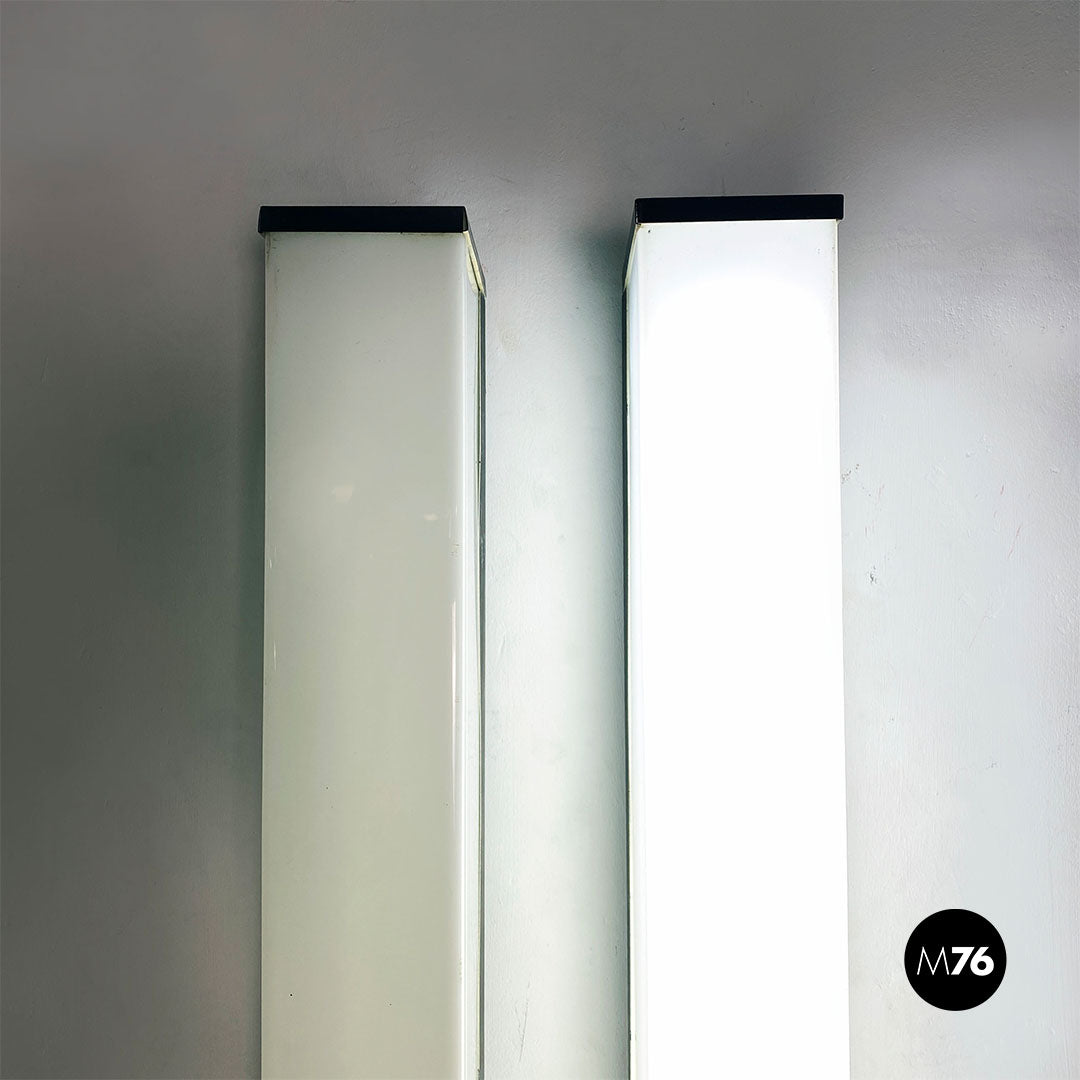 Coppia di lampade da parete o da soffitto a neon da soffitto o da parete con struttura metallica nera e parte frontale in plexiglass entrambe già provviste di neon led. all’interno. Posizionabili anche come lampade da pavimento.