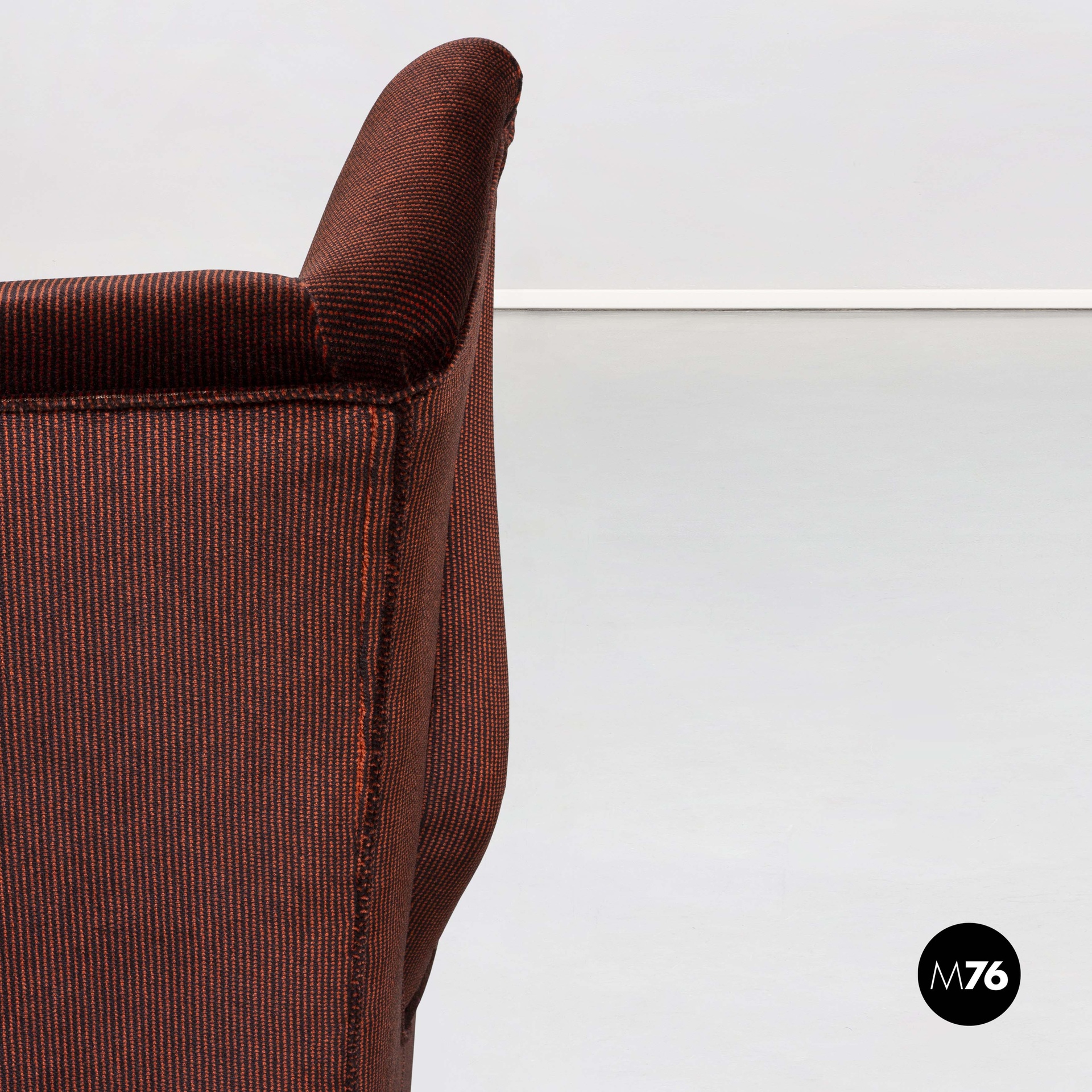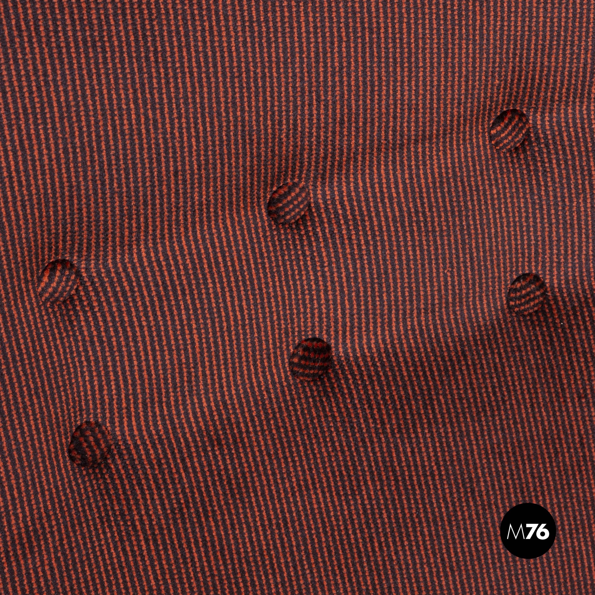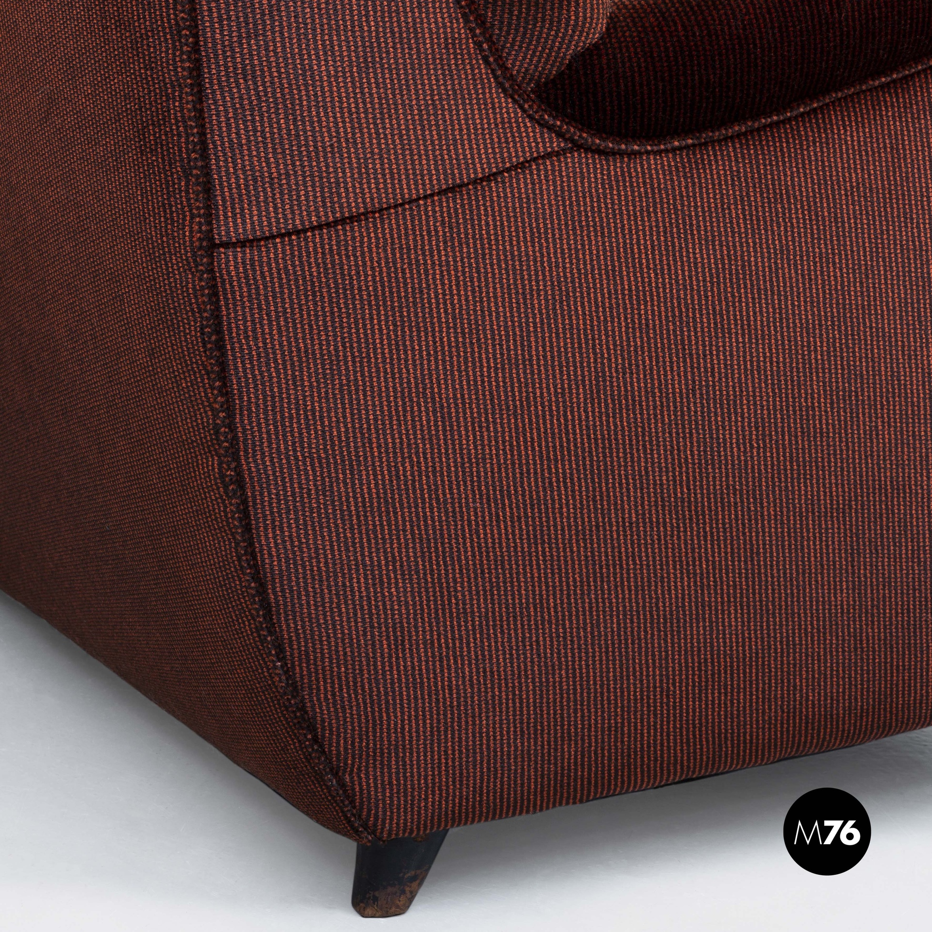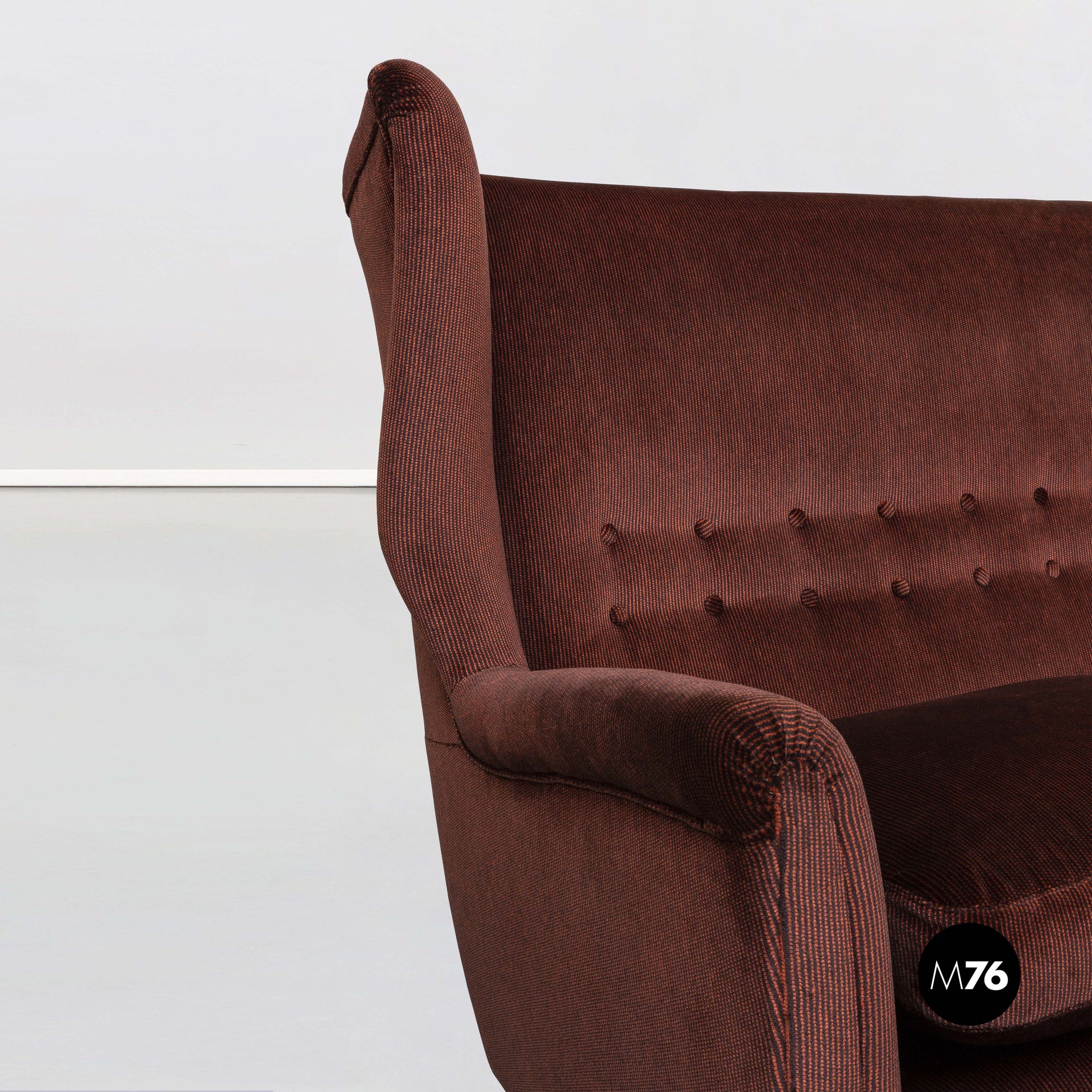 Condizioni discrete con segni dell’uso e del tempo. Il tessuto originale è leggermente sporco nella parte centrale del poggiatesta dove il colore è un po’ più chiaro rispetto al resto del divano.