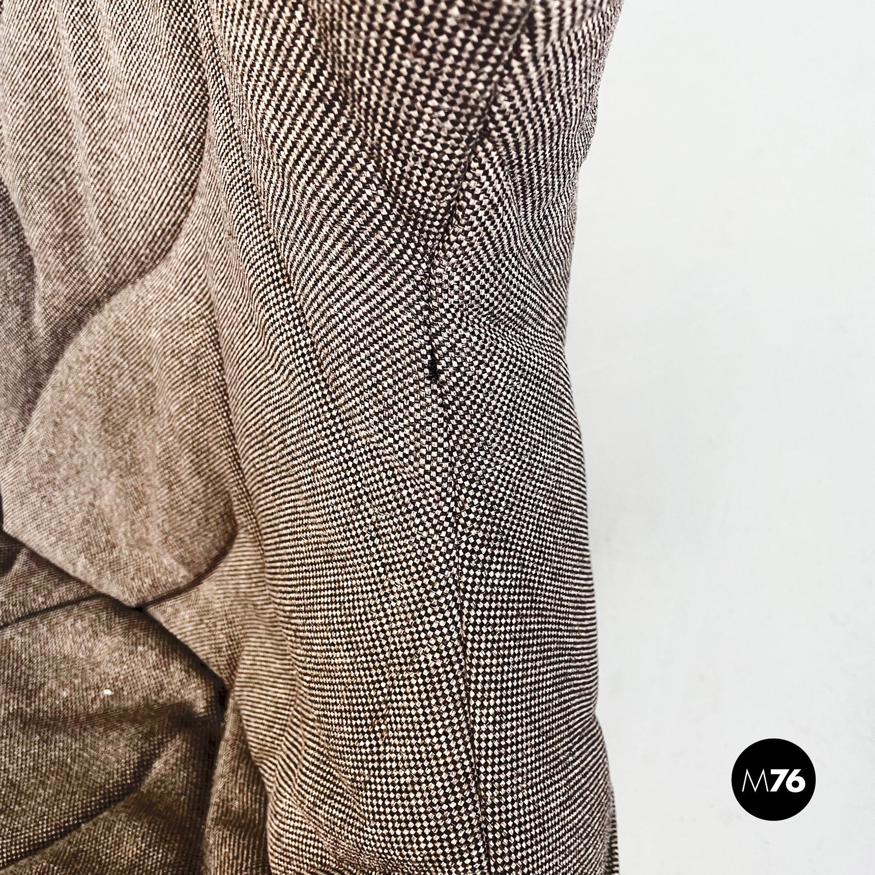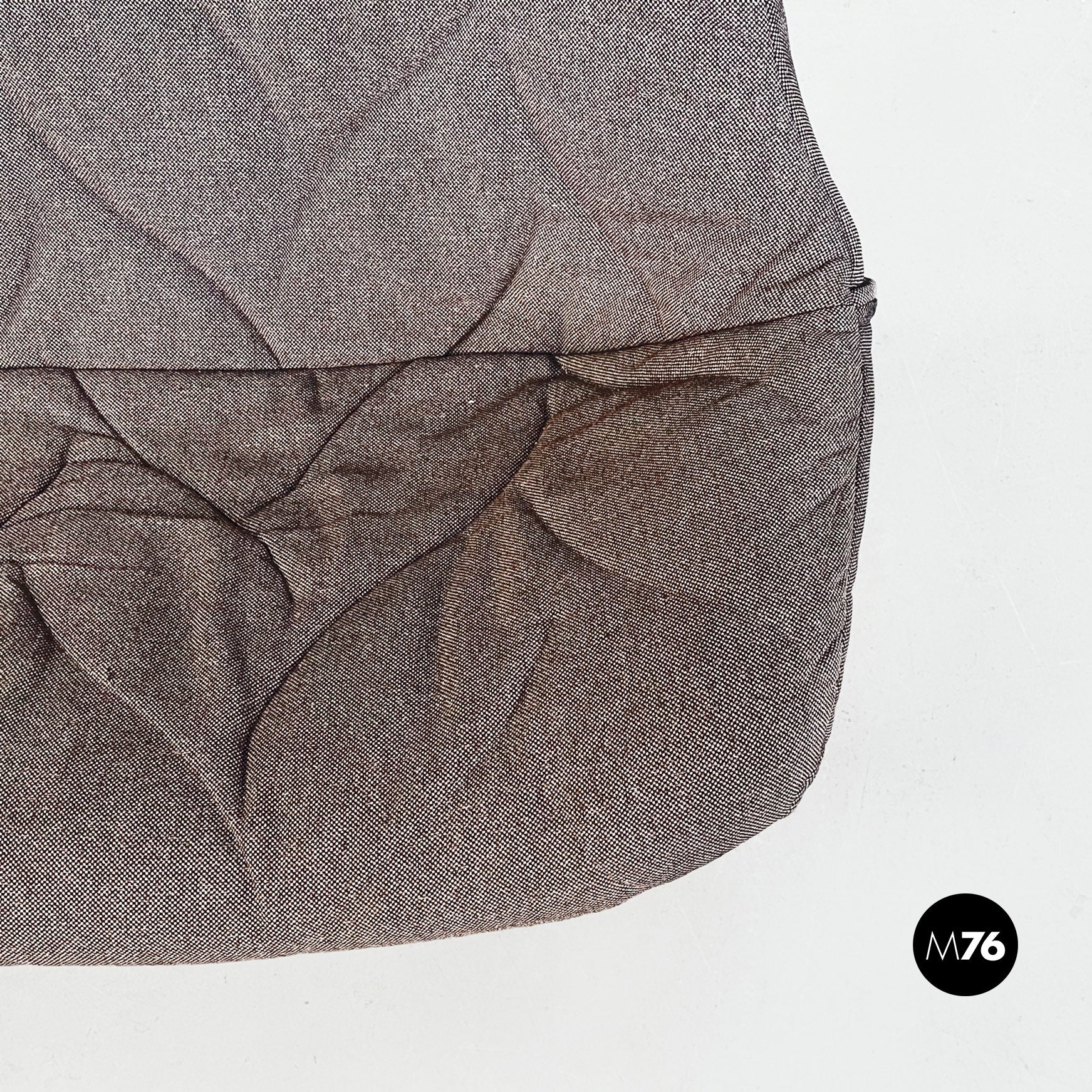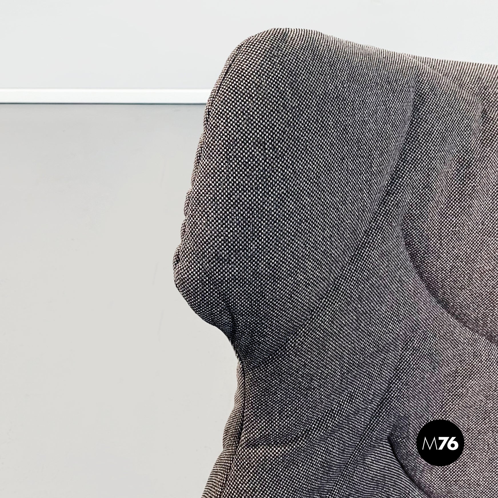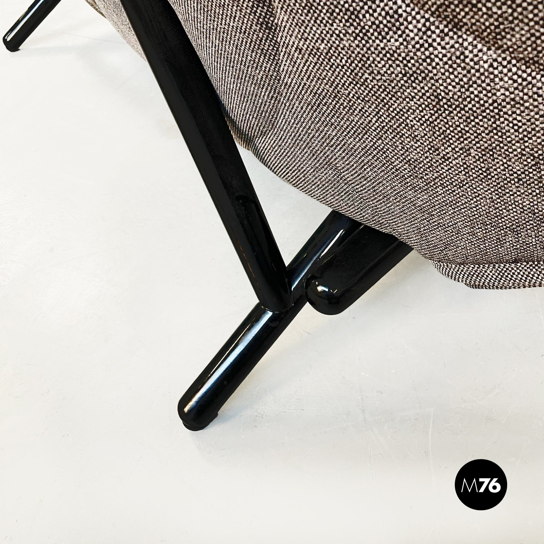 Divano modello Foliage a due posti con struttura tubolare in ferro verniciato nero seduta e schienale imbottiti in schiuma poliuretanica e rivestita in tessuto grigio su cui sono impunturate delle forme di foglie. Infatti la seduta riprende la forma e l’idea della chioma di un albero.