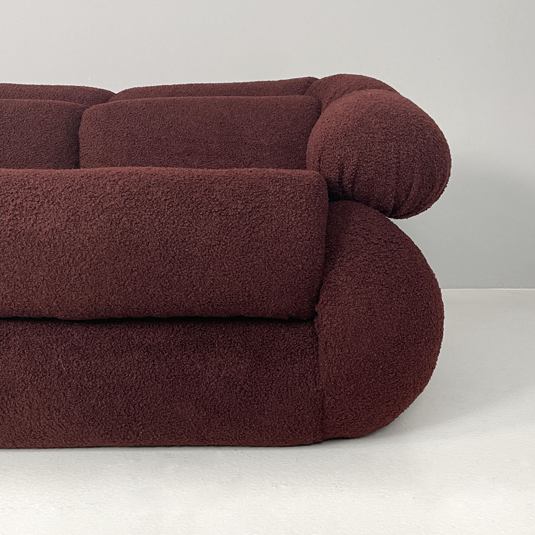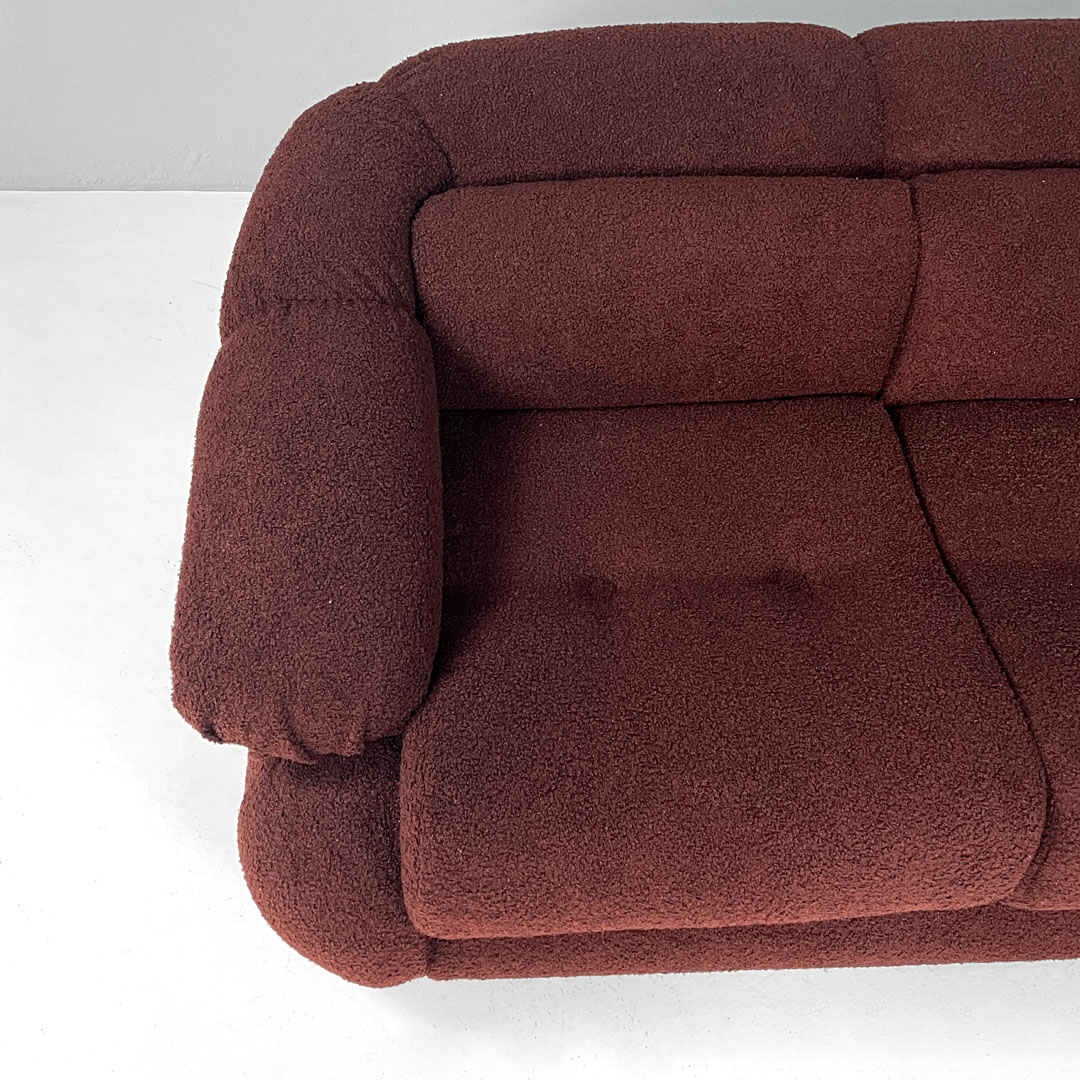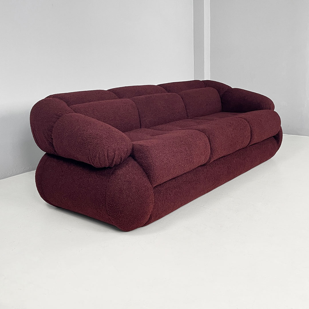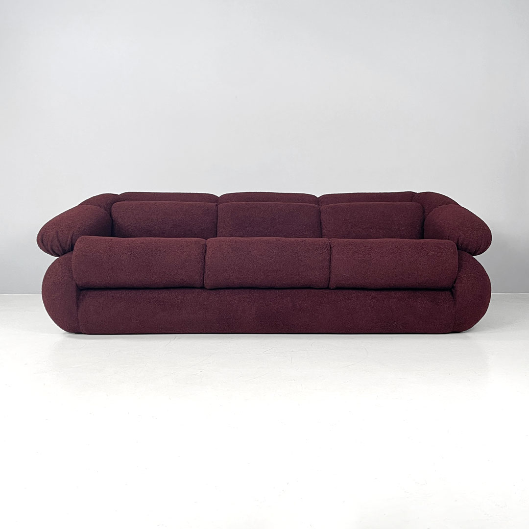 Italian modern three-seat sofa in burgundy teddy fabric 1970s
