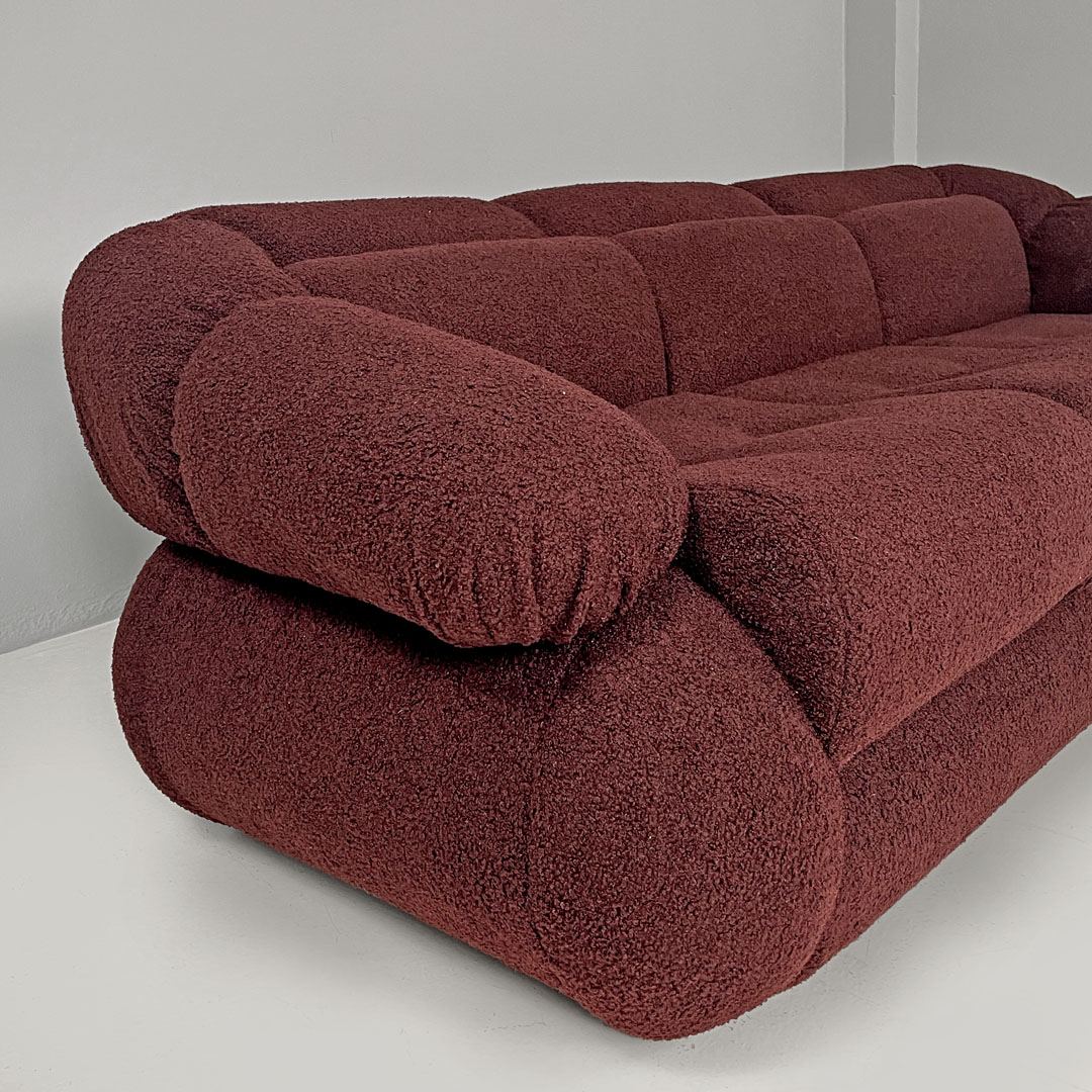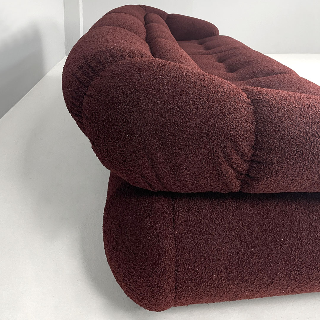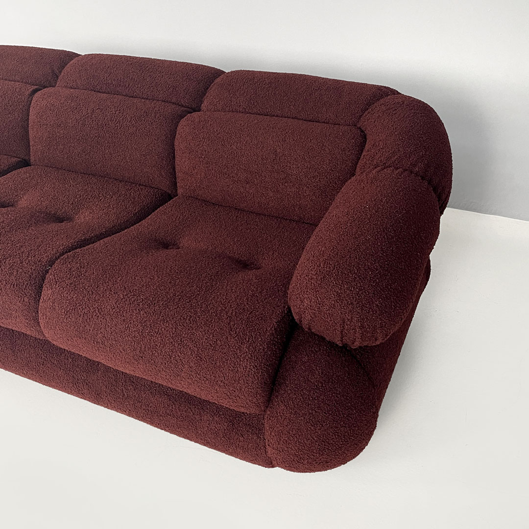 Italian modern three-seat sofa in burgundy teddy fabric 1970s