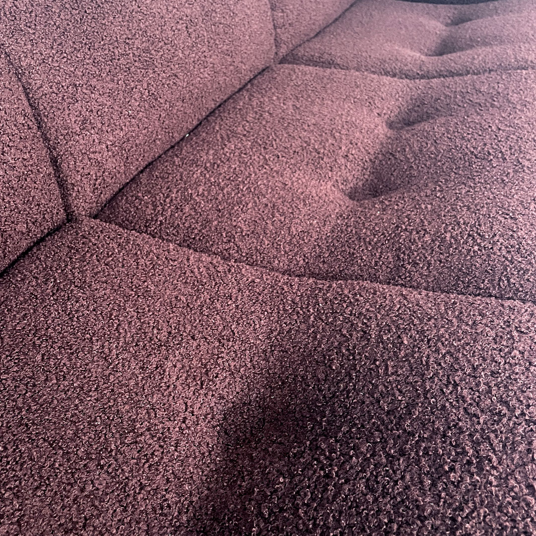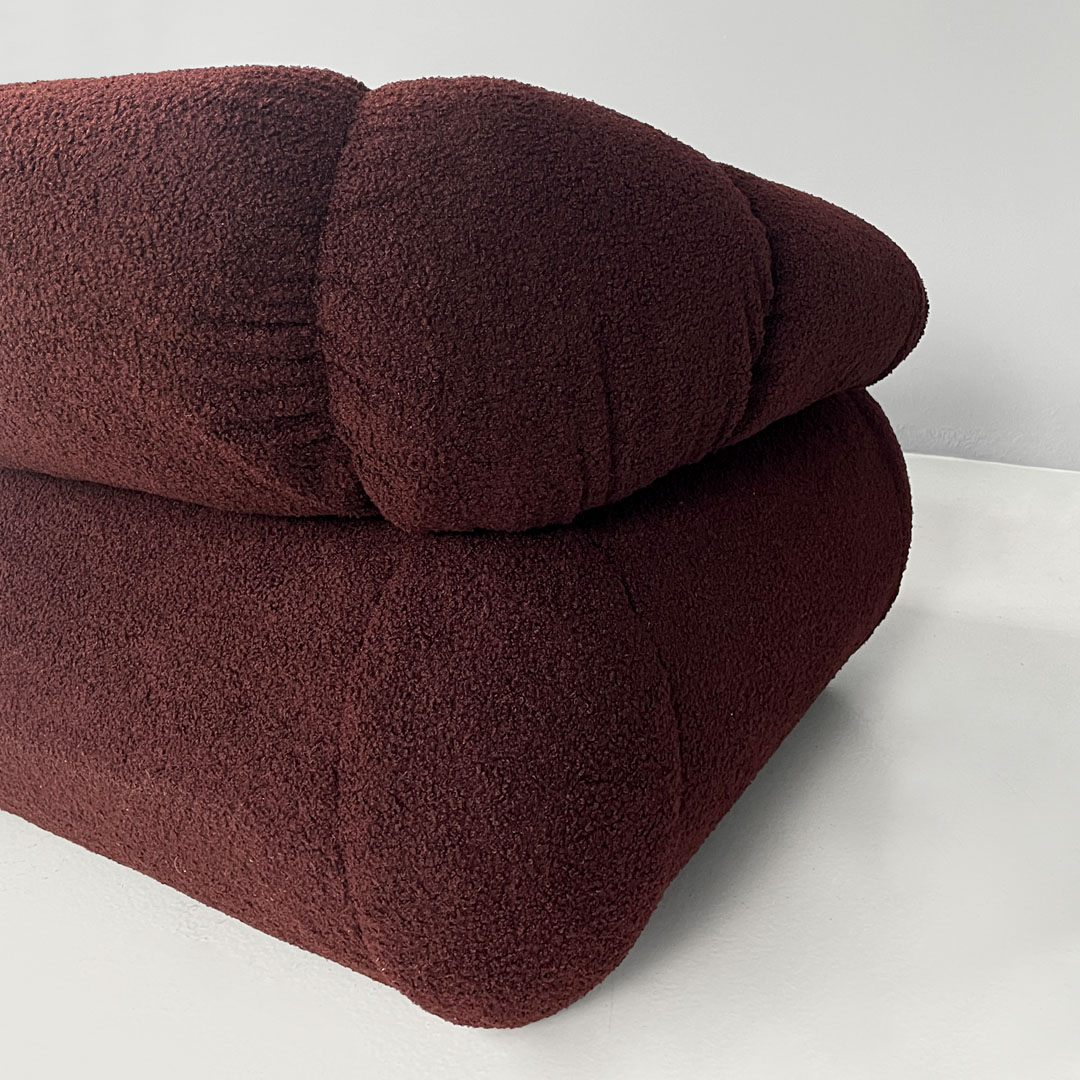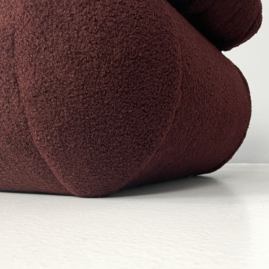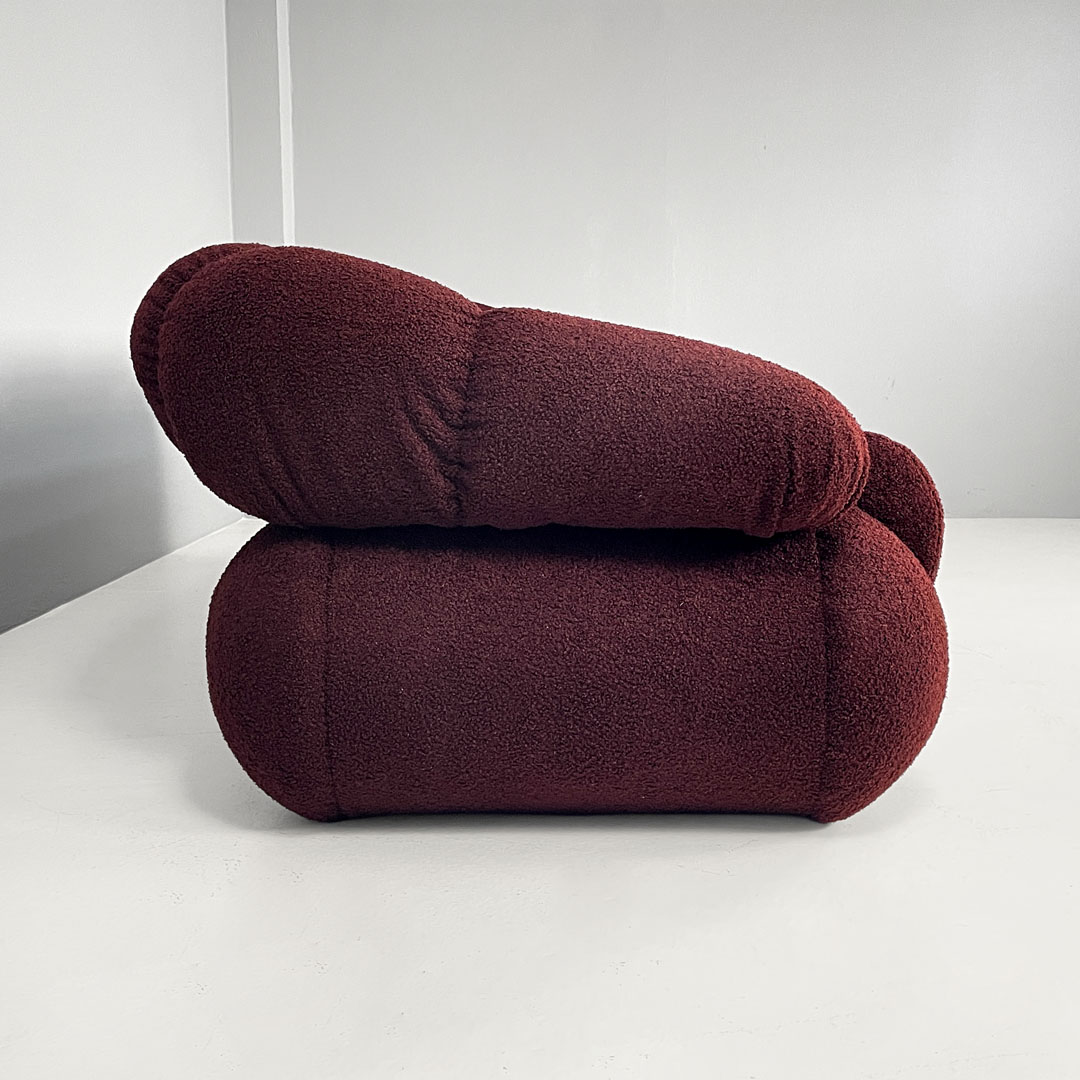 Italian modern three-seat sofa in burgundy teddy fabric 1970s