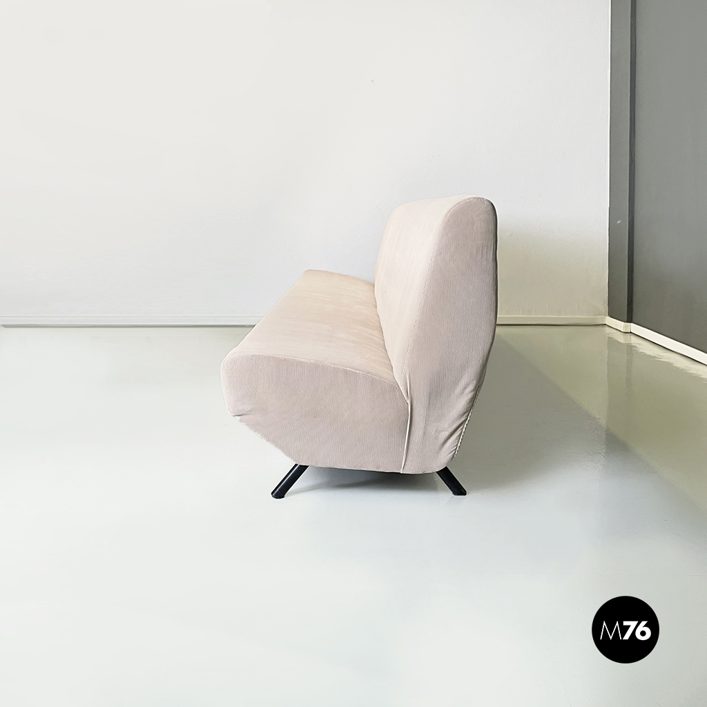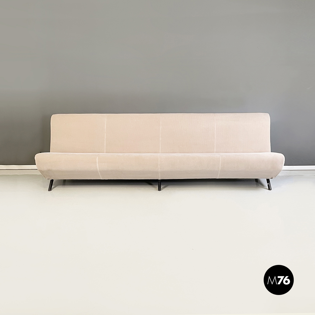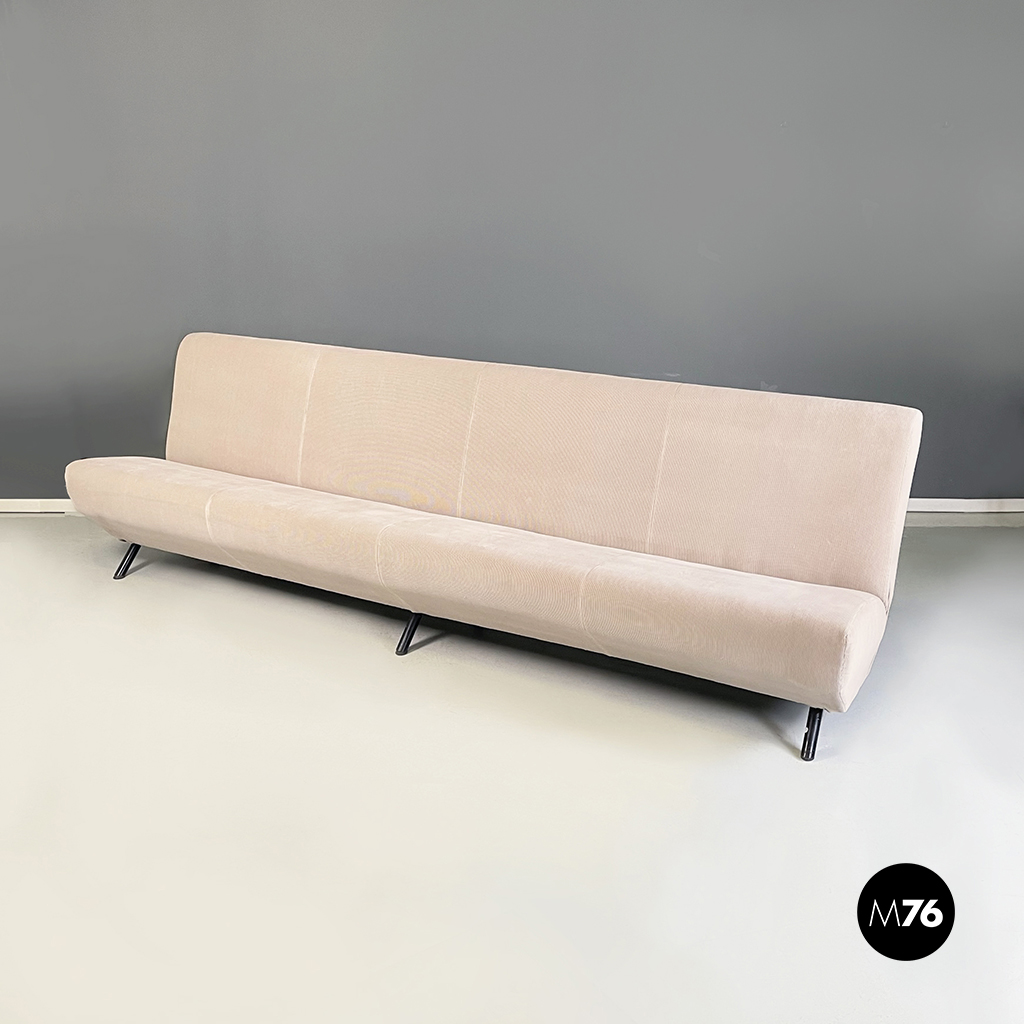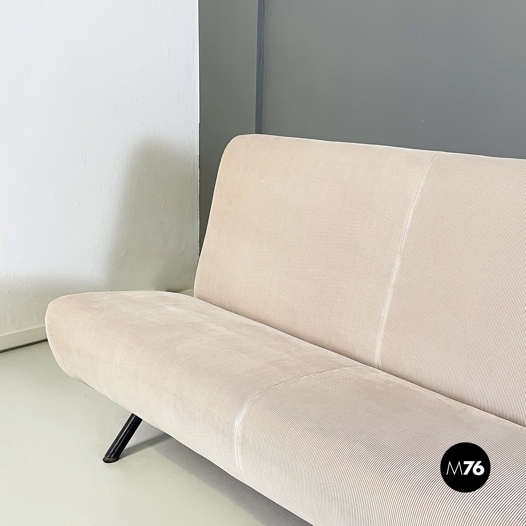 Divano modello Triennale con zampe e struttura in ferro con rivestimento originale in velluto a coste bianco.