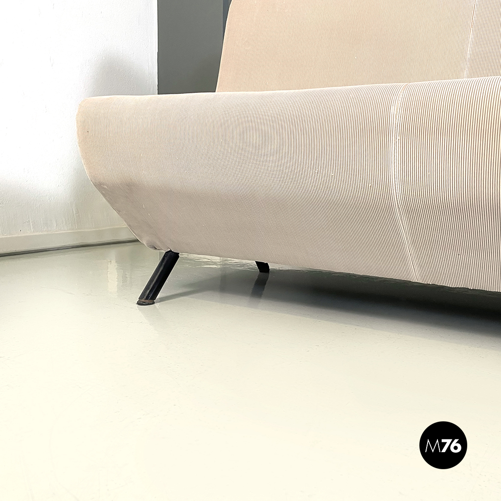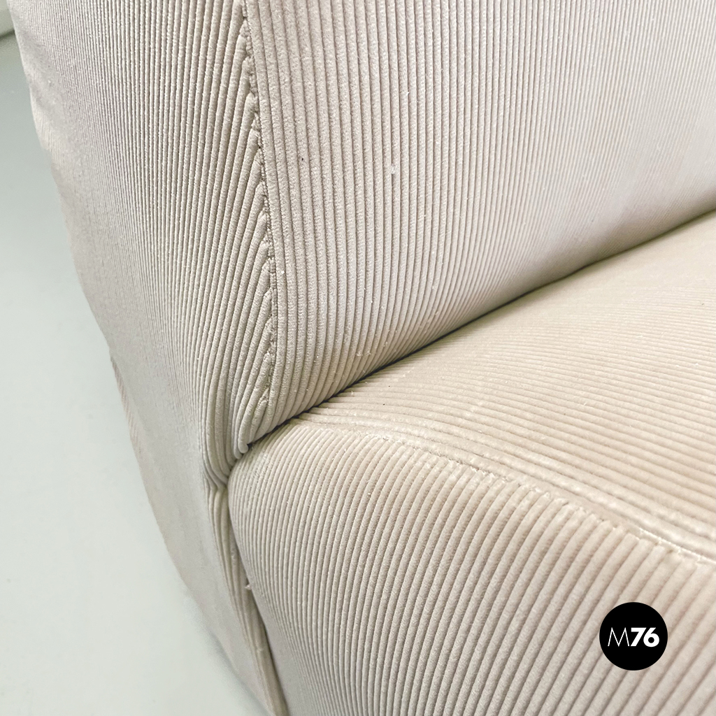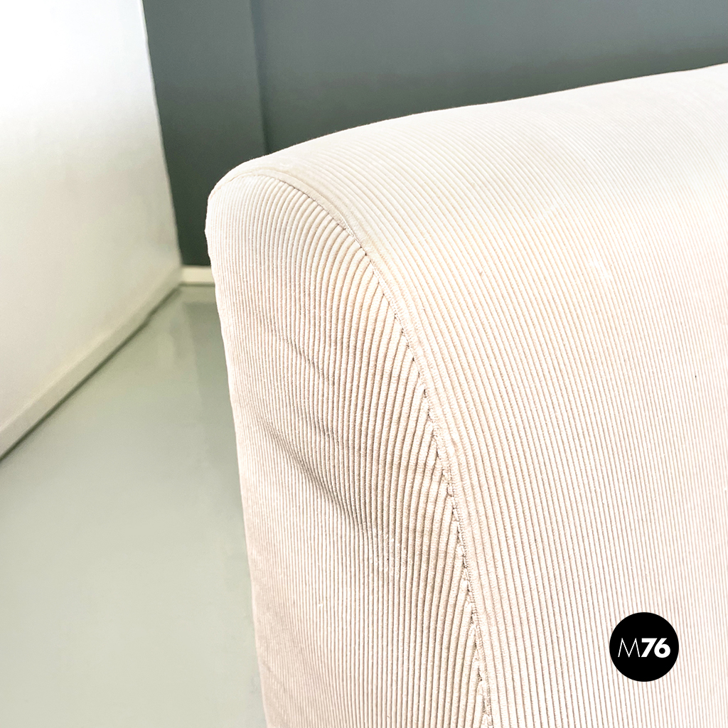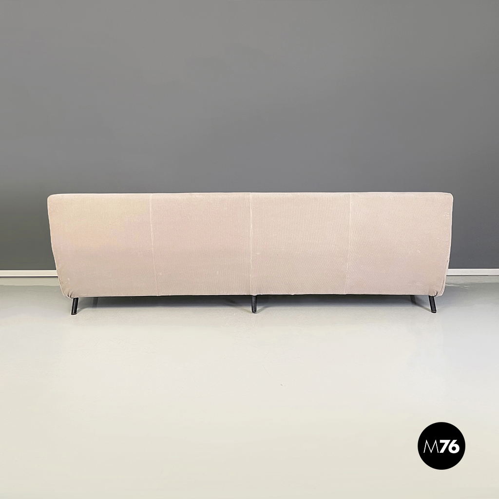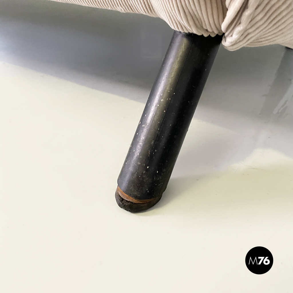 Divano modello Triennale con zampe e struttura in ferro con rivestimento originale in velluto a coste bianco.