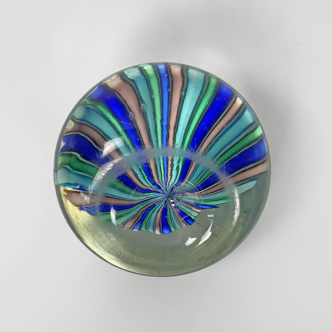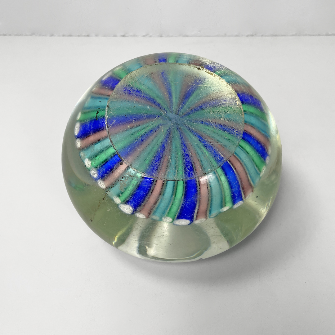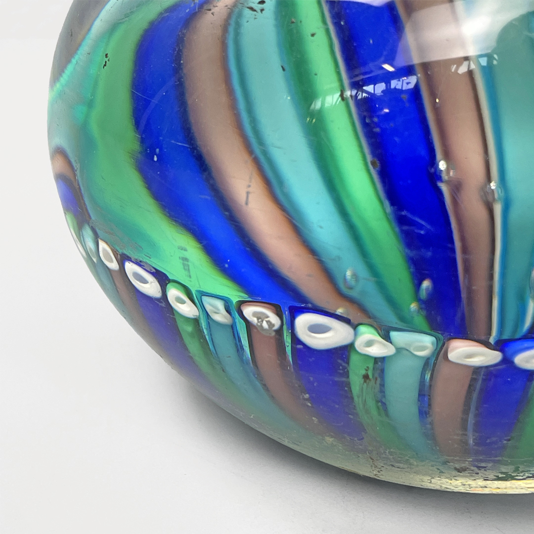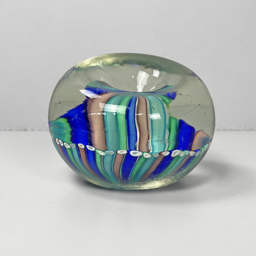 Fermaporta di forma tonda in vetro di Murano. Il vetro è a canne multicolori.