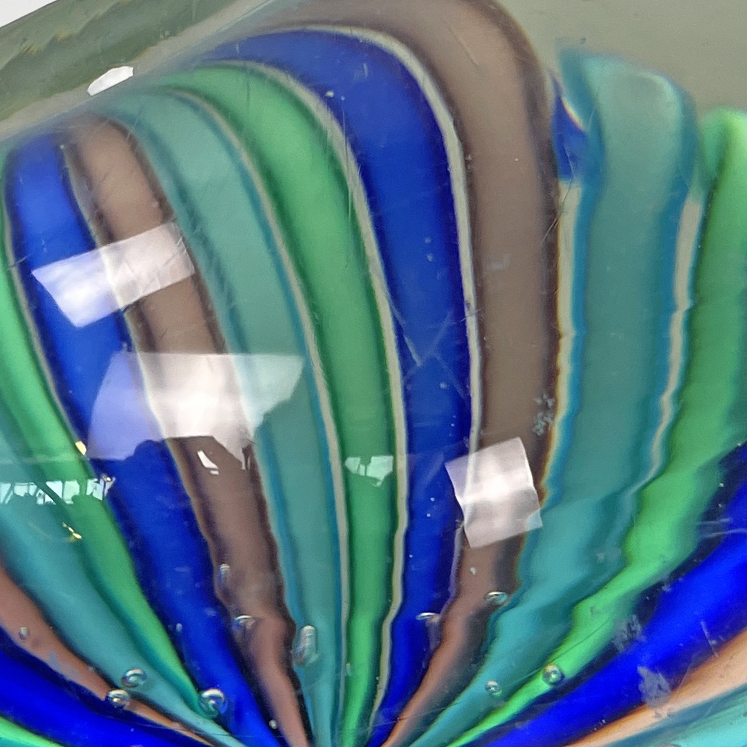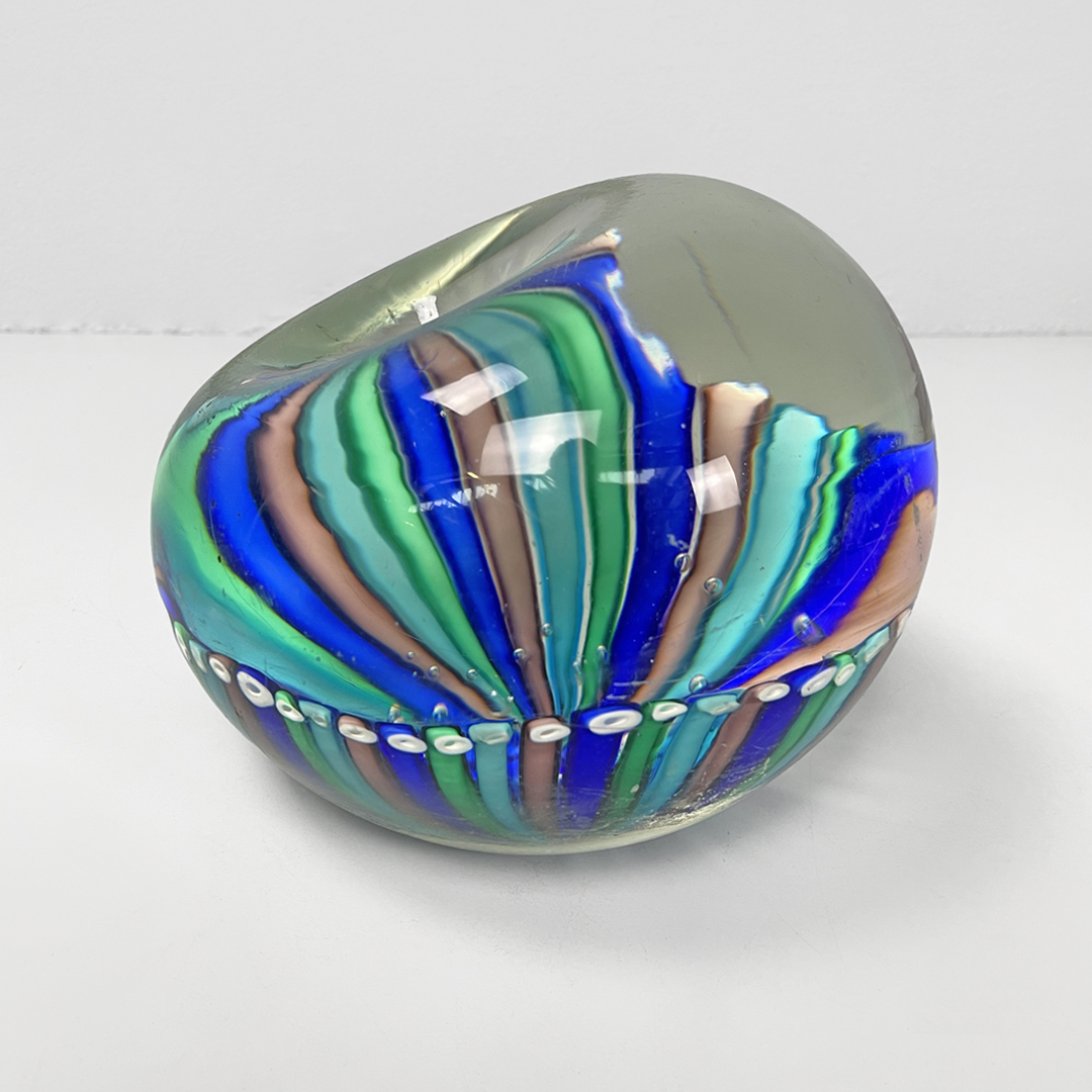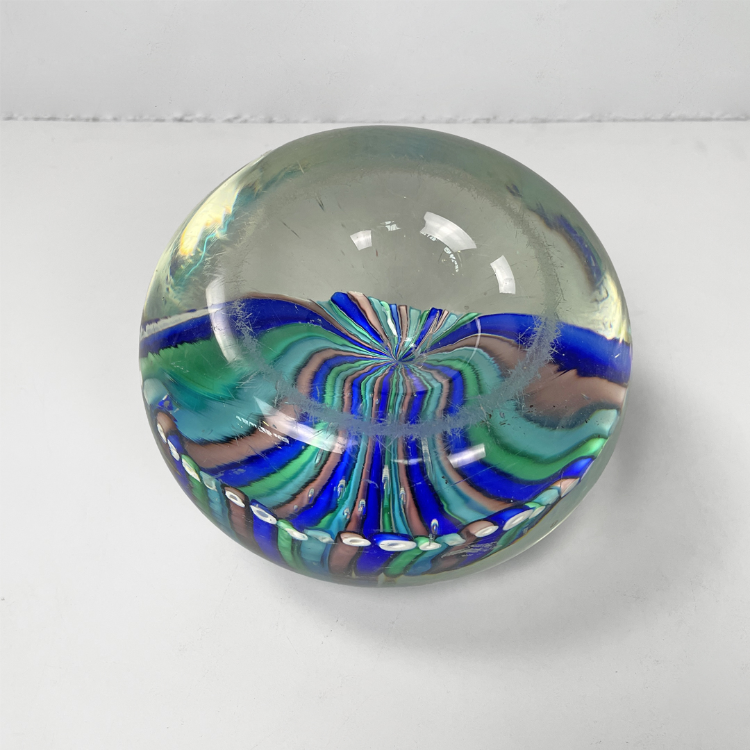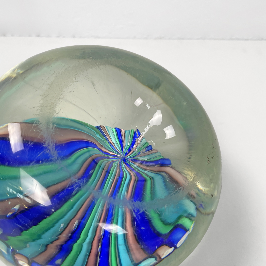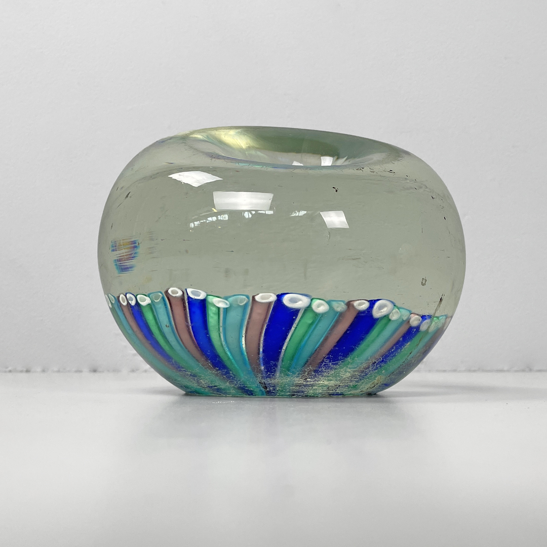 Fermaporta di forma tonda in vetro di Murano. Il vetro è a canne multicolori.