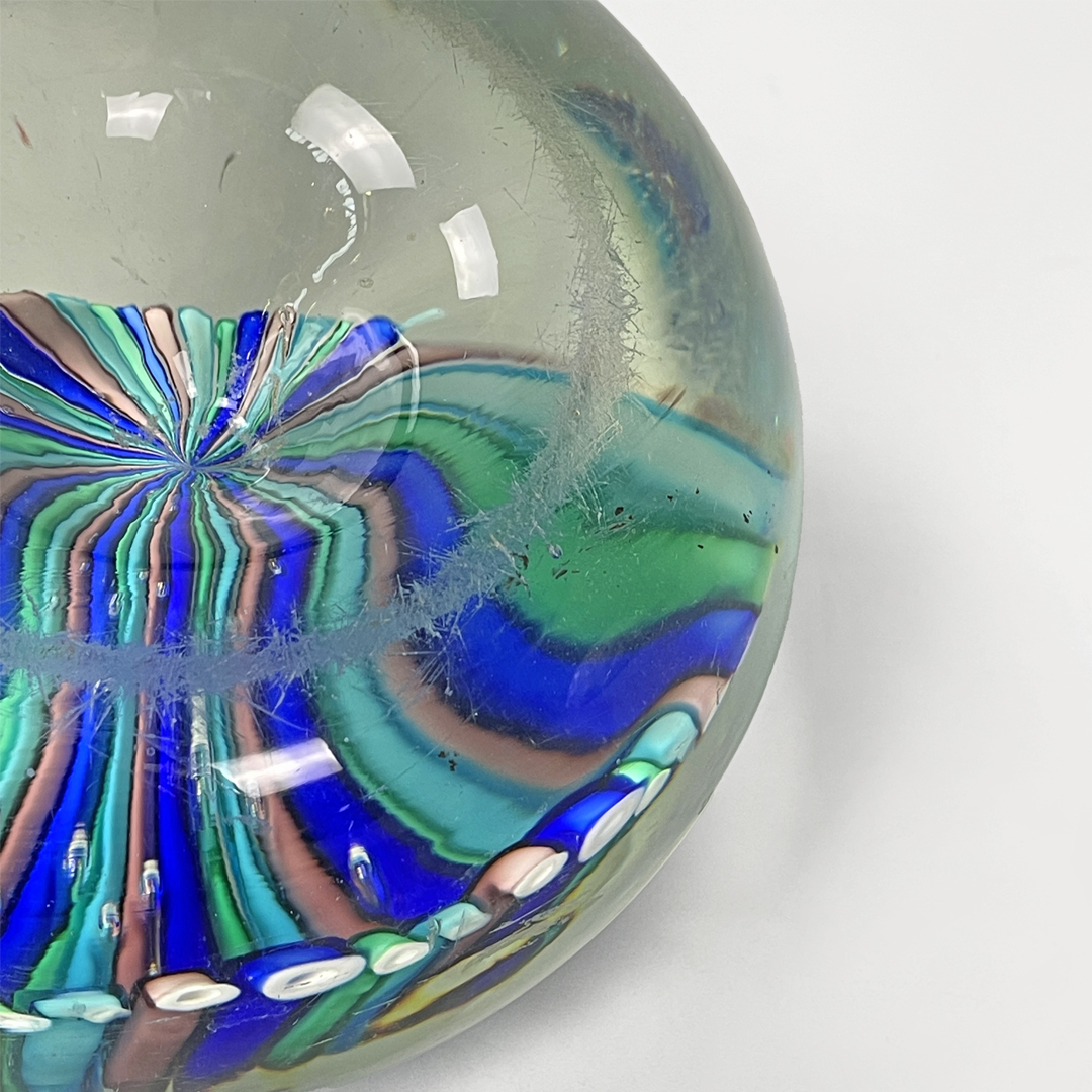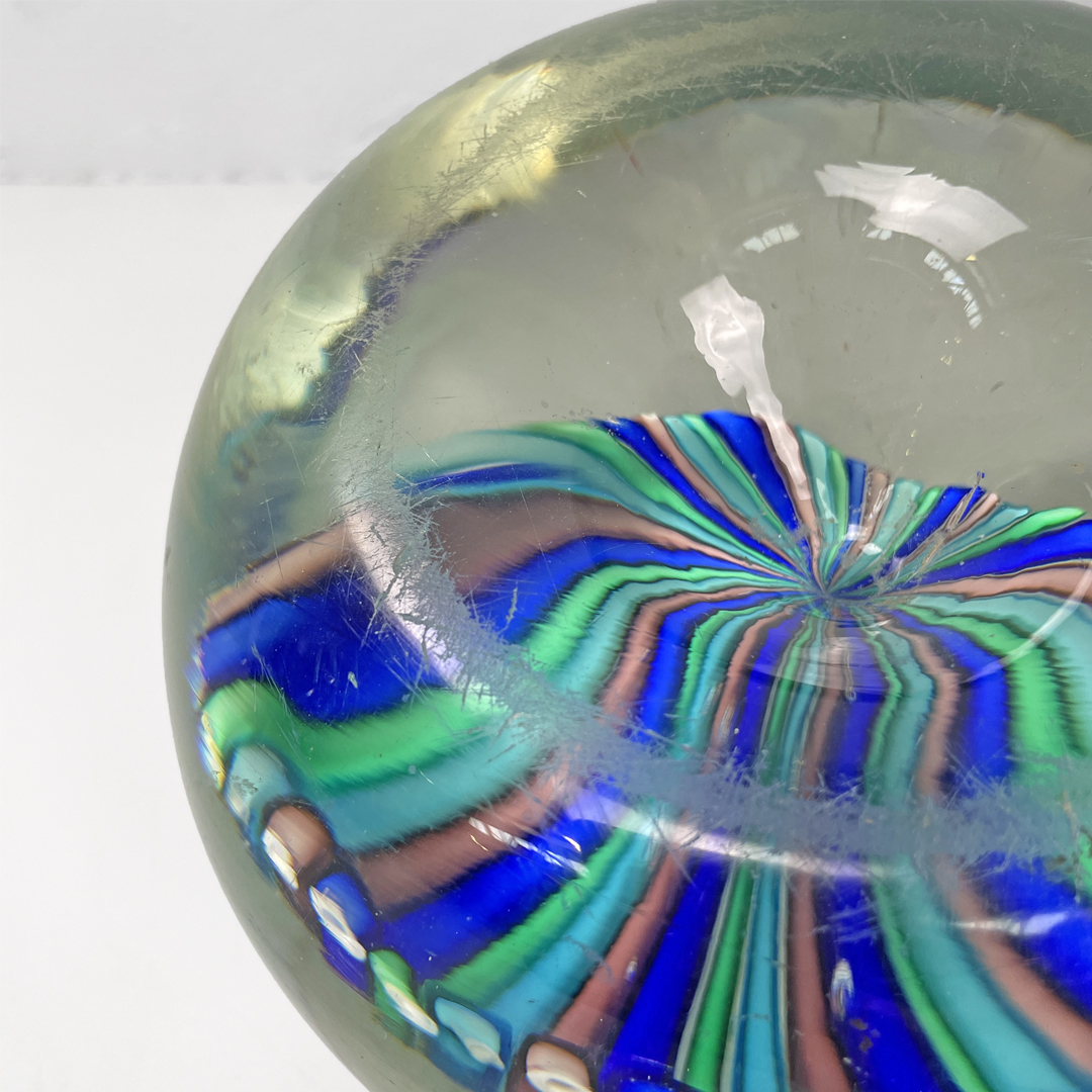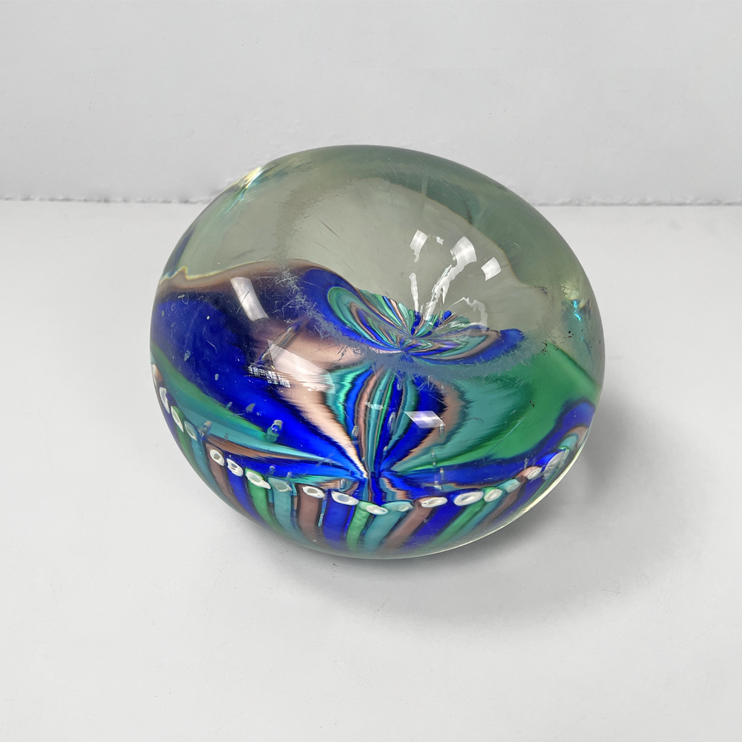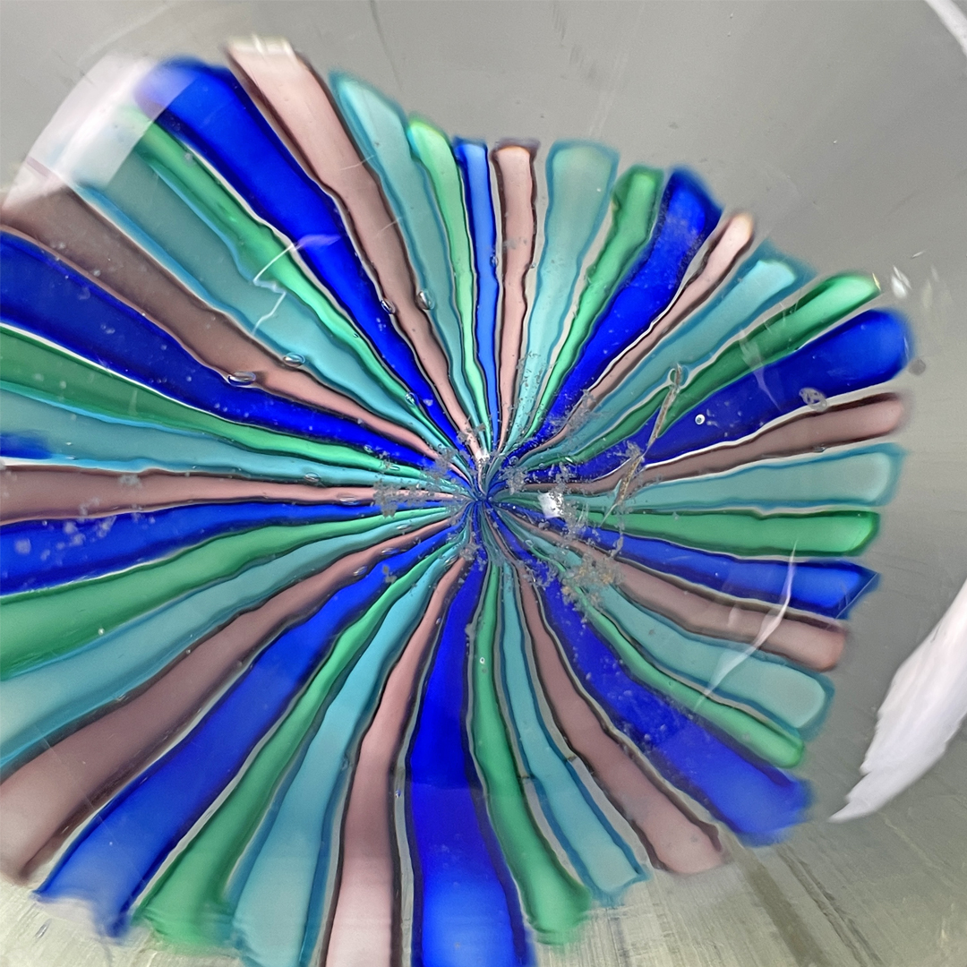 Fermaporta di forma tonda in vetro di Murano. Il vetro è a canne multicolori.