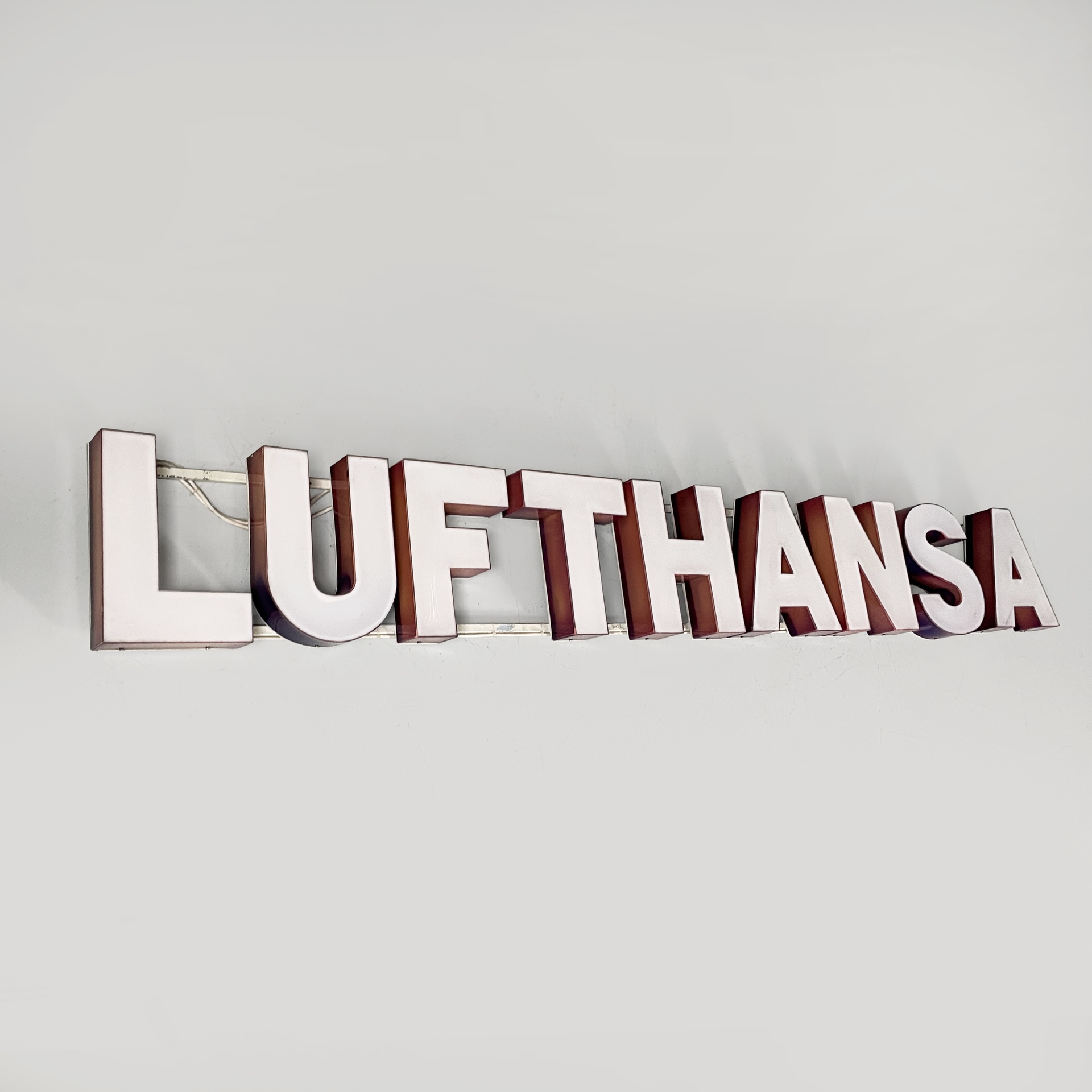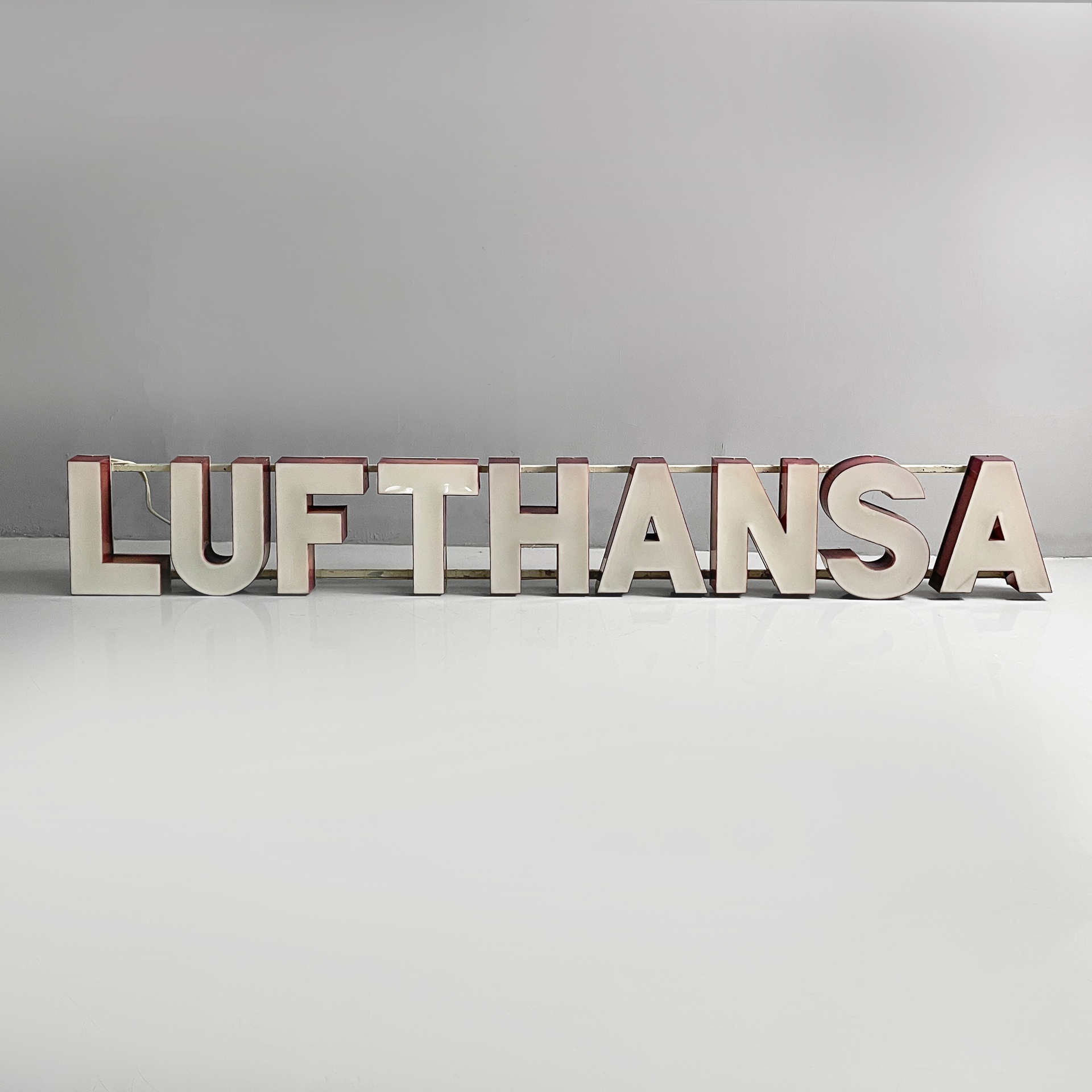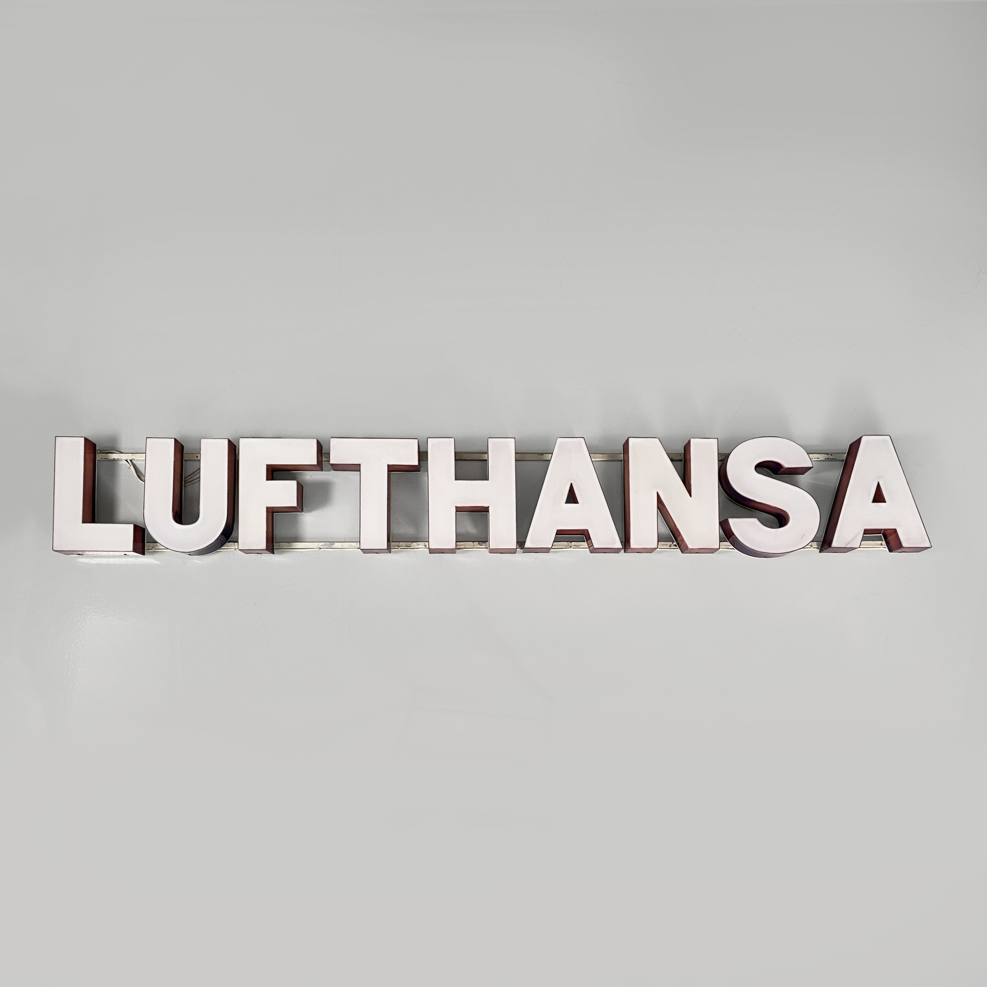 Insegna Lufthansa in plexiglass bianco, 1970 ca.