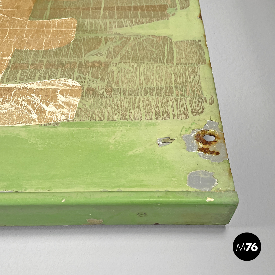 Insegna pubblicitaria in metallo verde e bianca, 1960 ca.