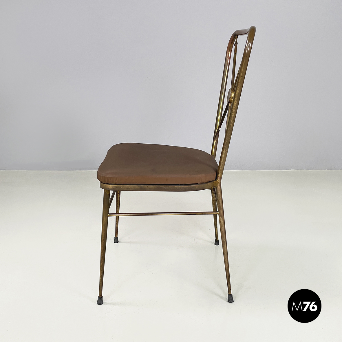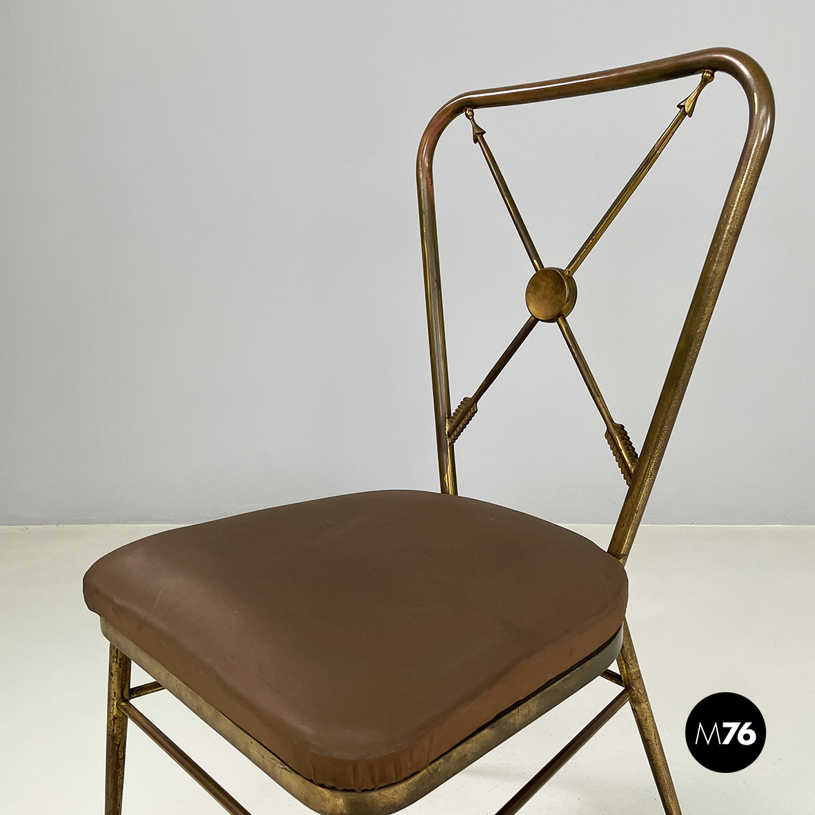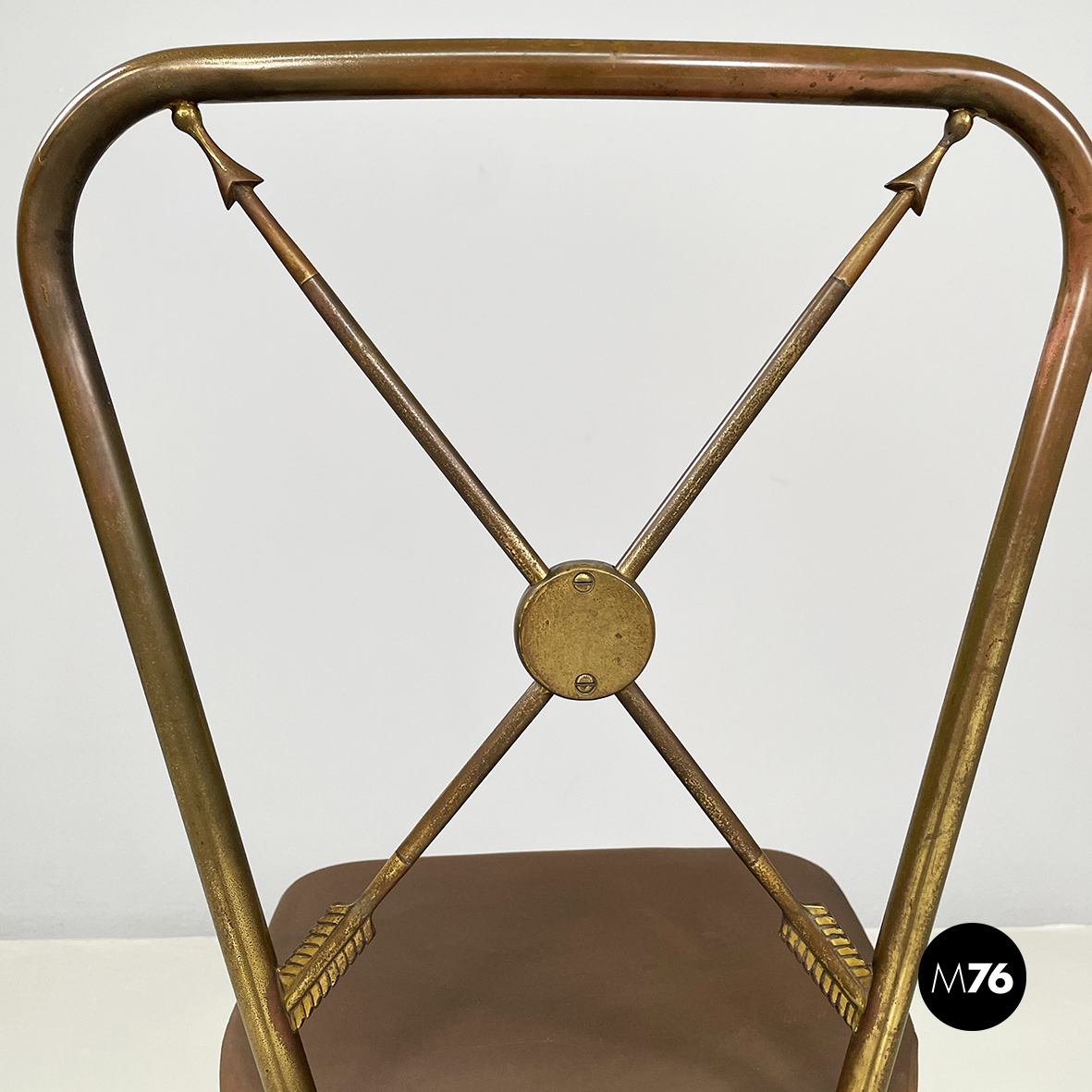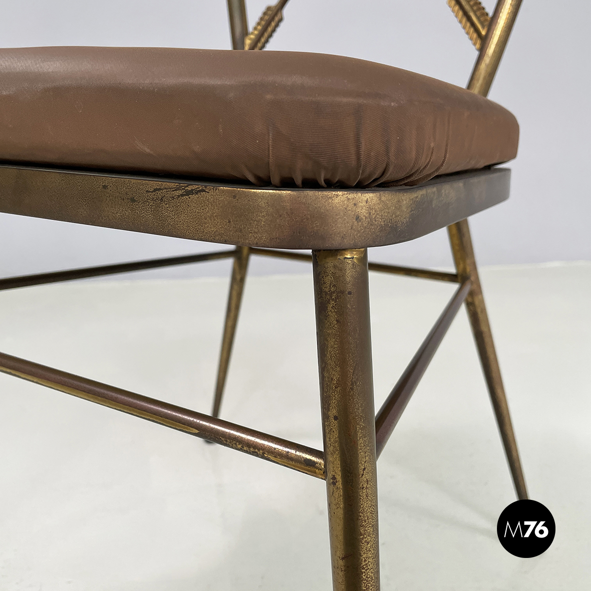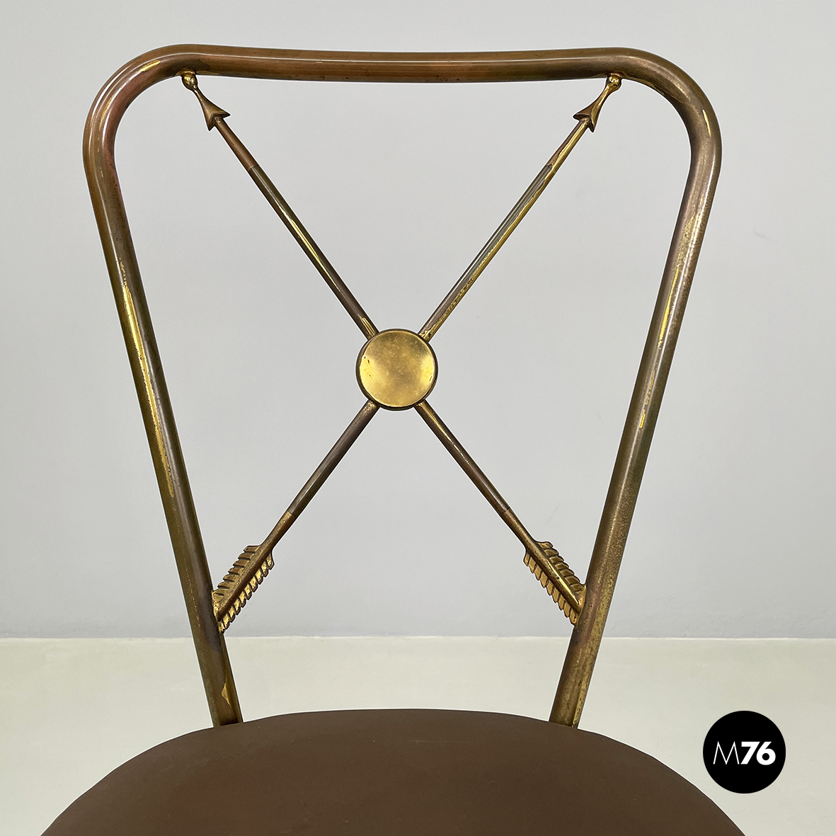 Sedia in tessuto marrone e ottone, 1950 ca.