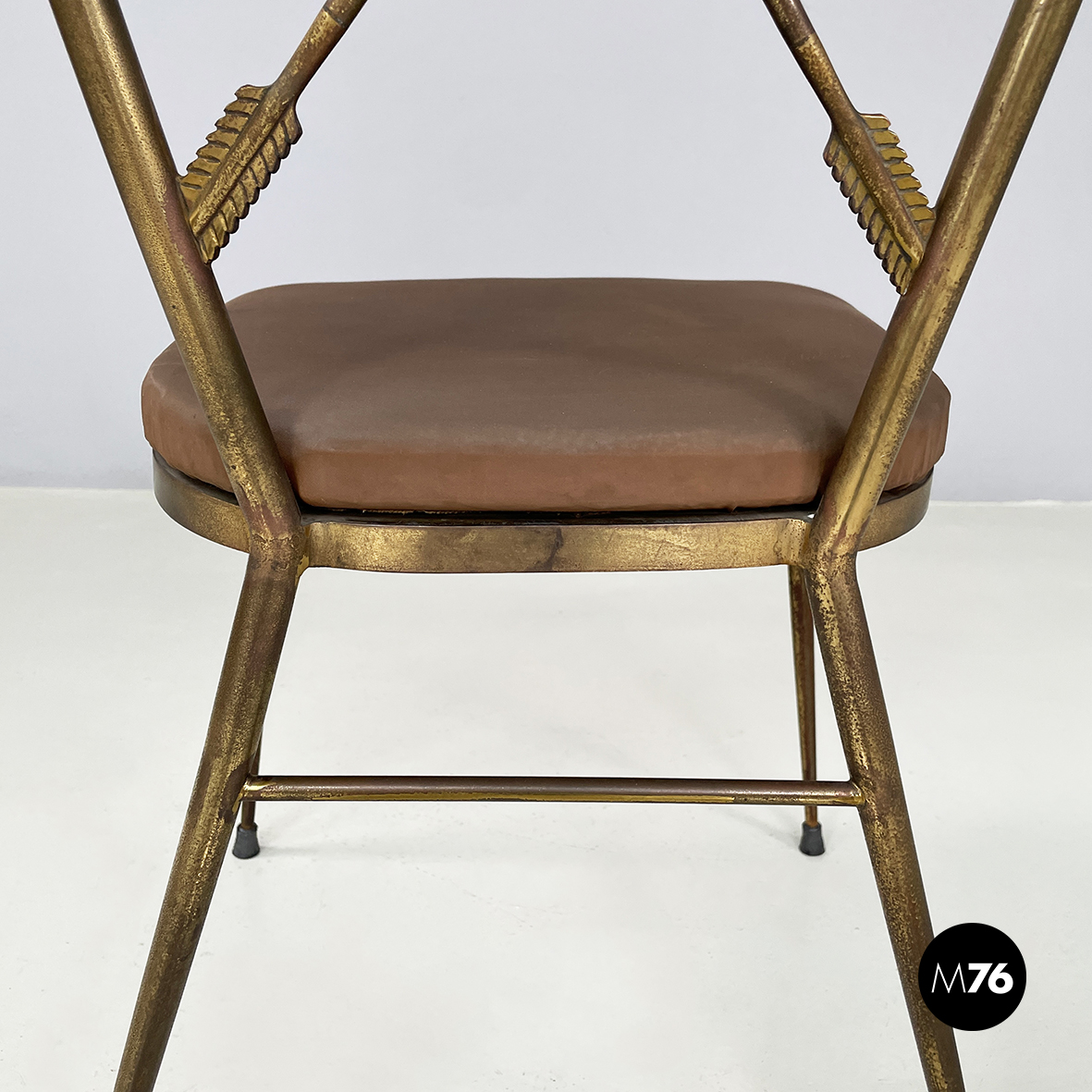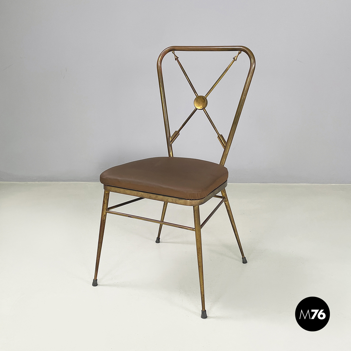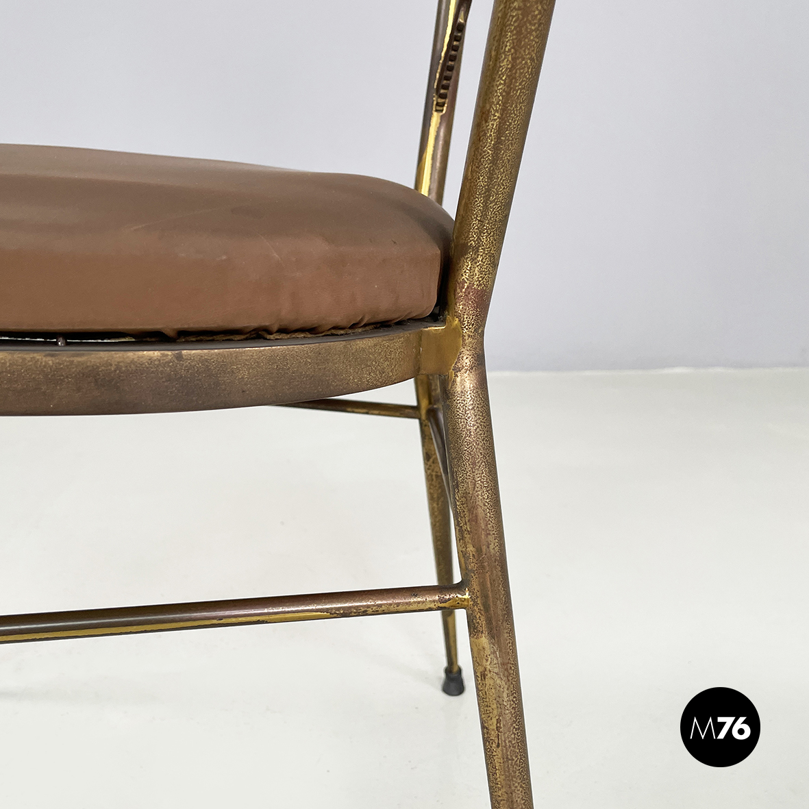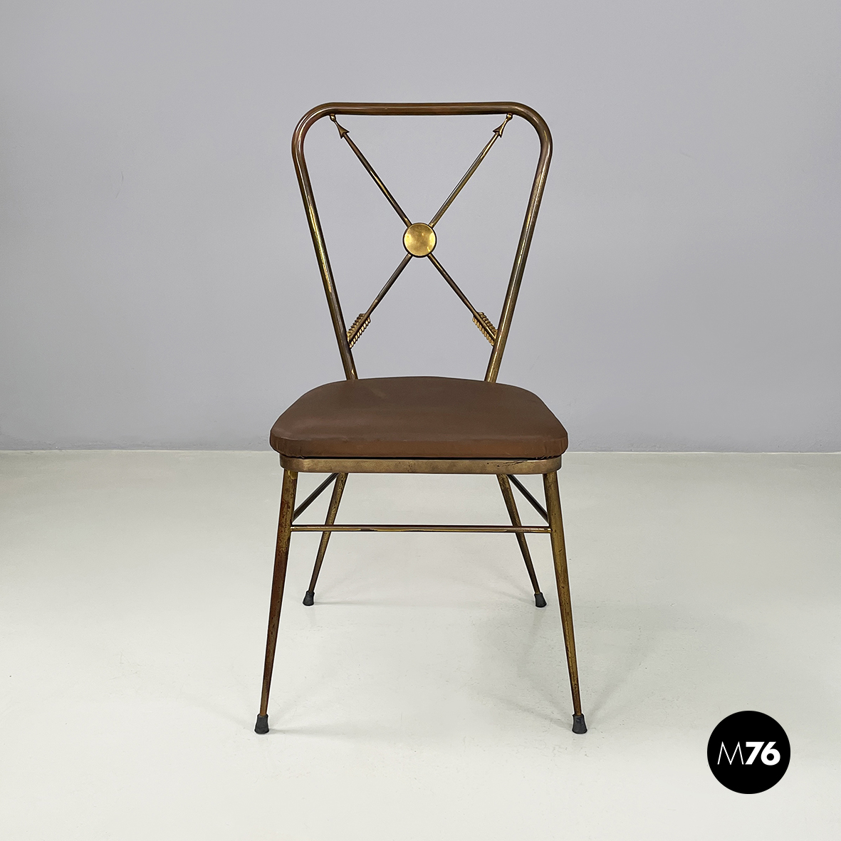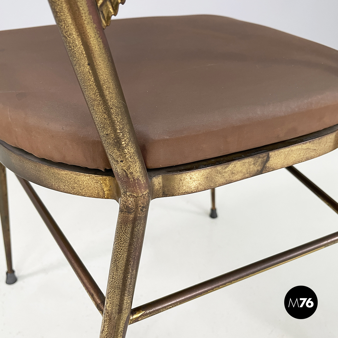 Sedia in tessuto marrone e ottone, 1950 ca.