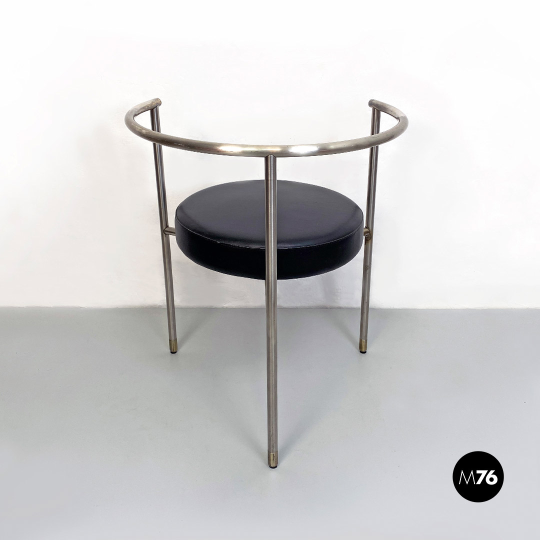 Sedia a pozzetto in pelle nera e metallo, 1980 ca.