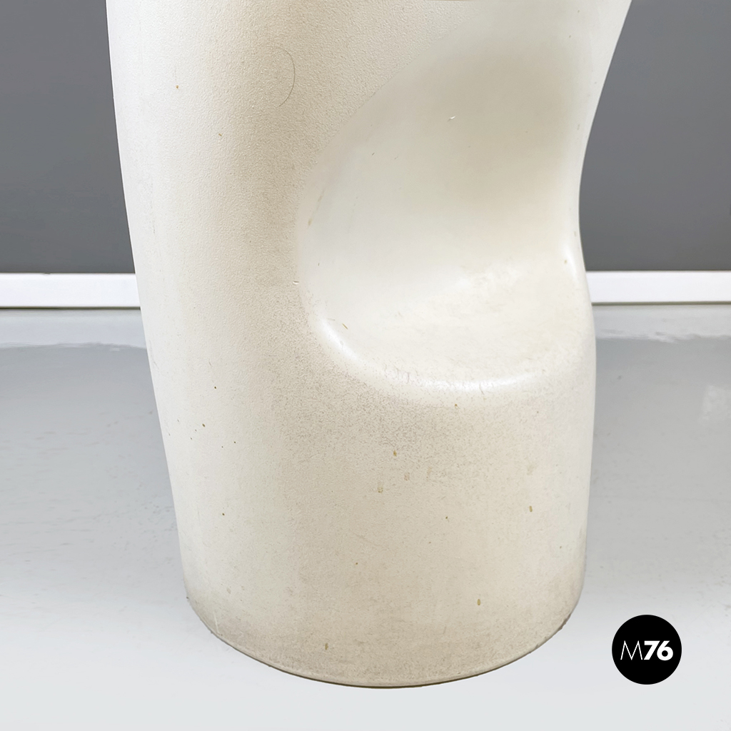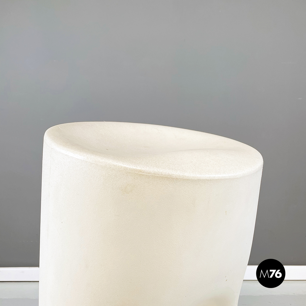 Sgabello modello Tokyo Pop a base tonda in plastica bianca con finitura opaca. La struttura presenta una silhouette morbida e arrotondata. Poggiapiedi presente alla base.