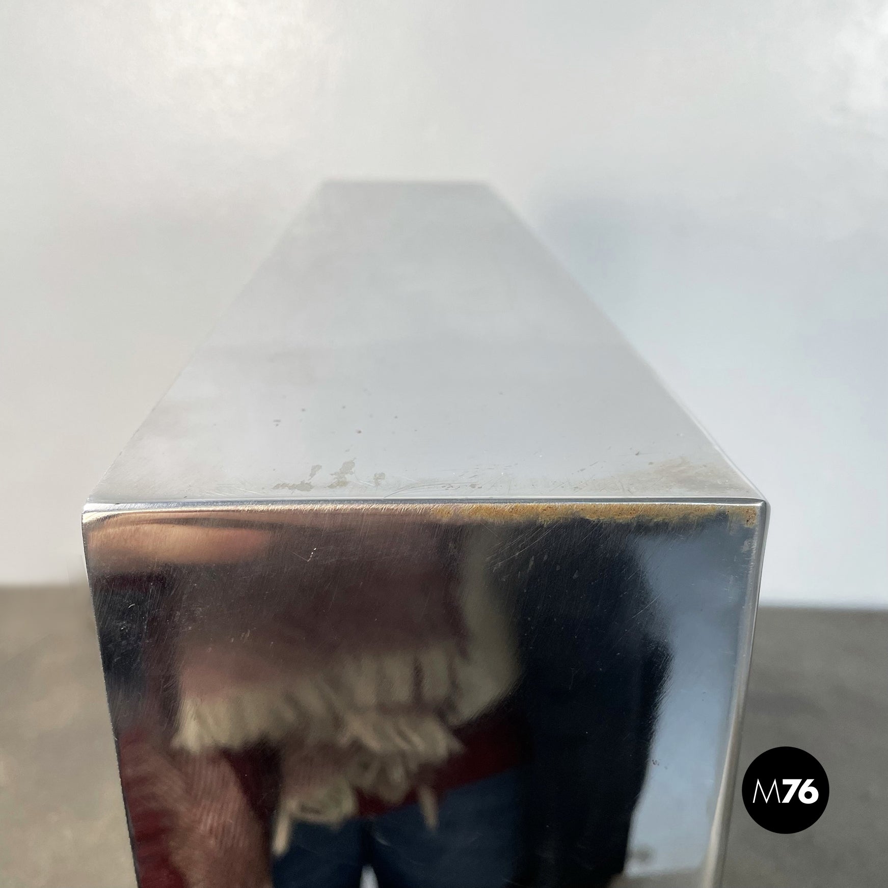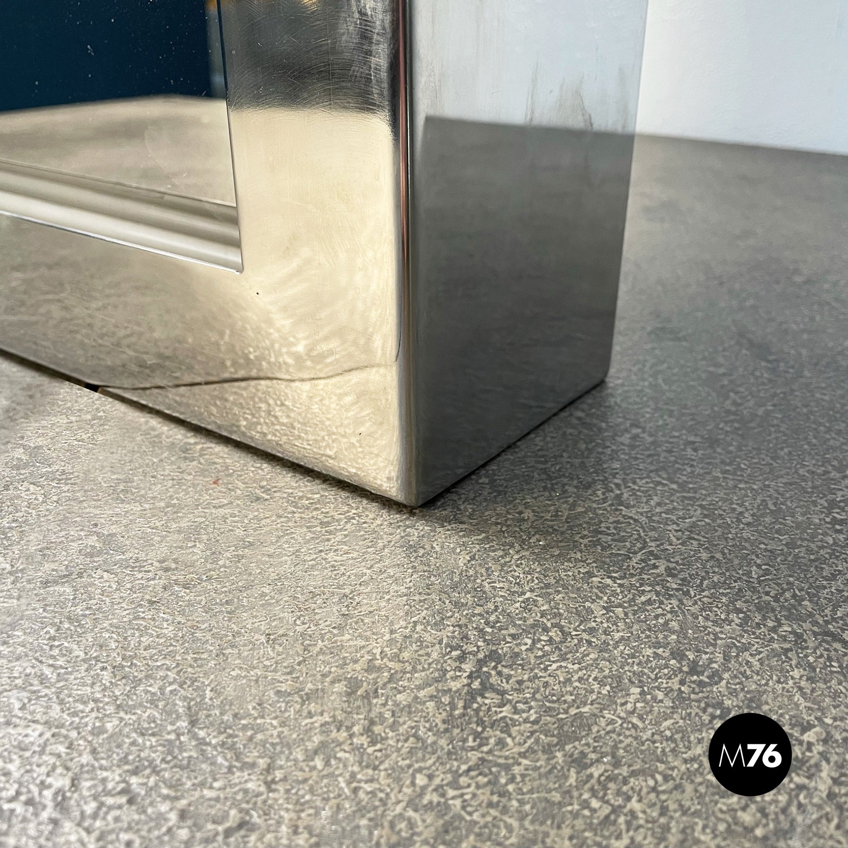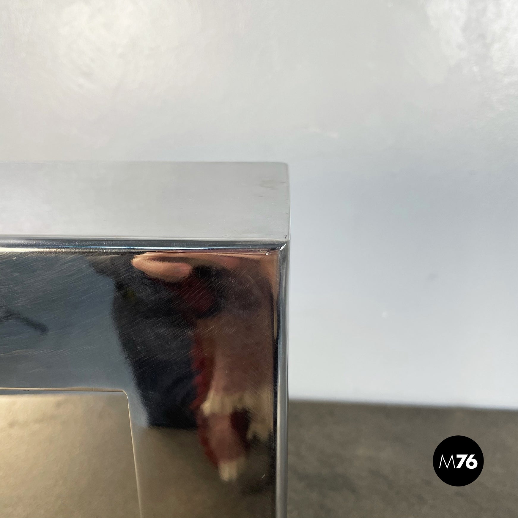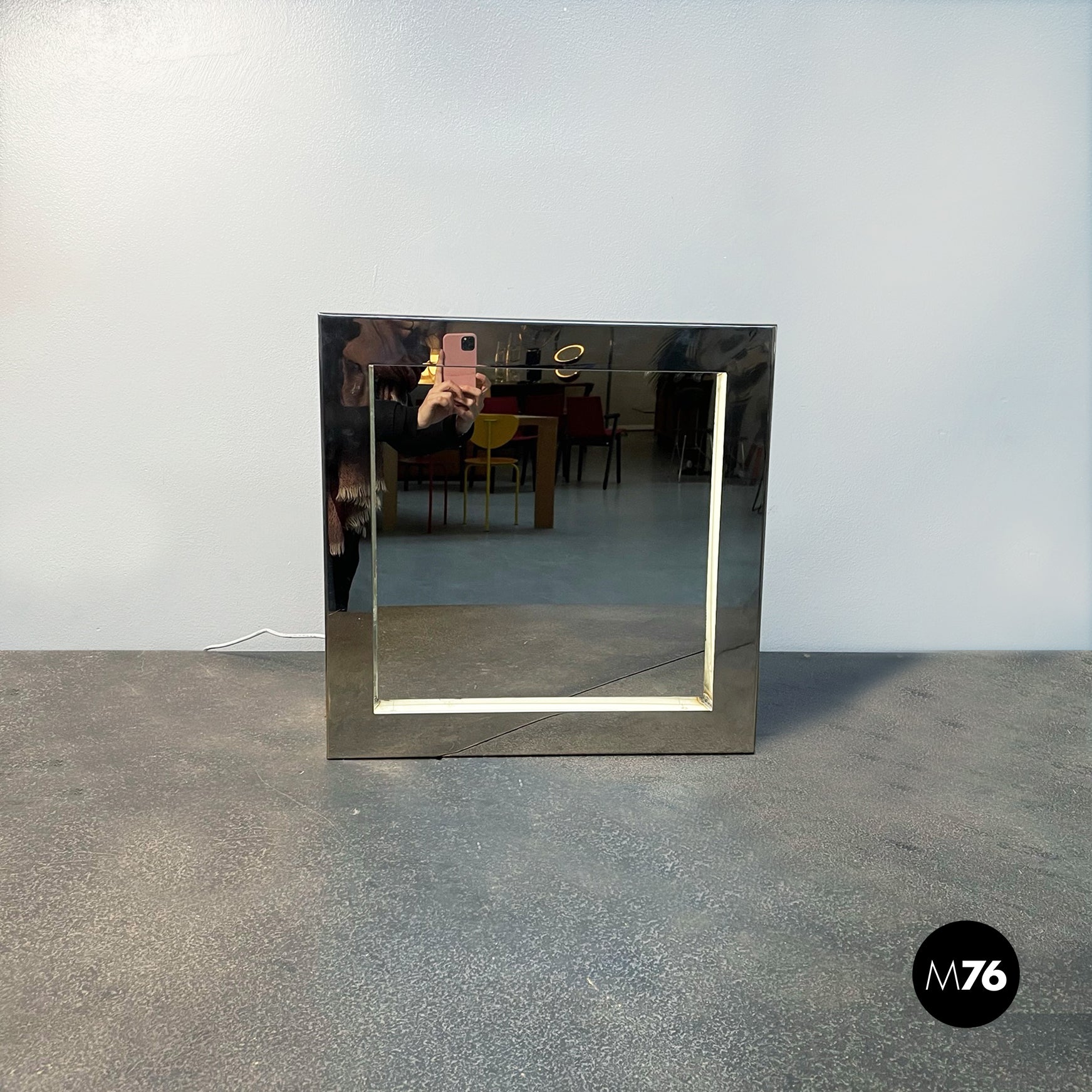Lampada da parete o da tavolo modello Iceberg di forma quadrata in acciaio satinato con un neon bianco inserito nella struttura e parte frontale di forma quadrata specchiata.