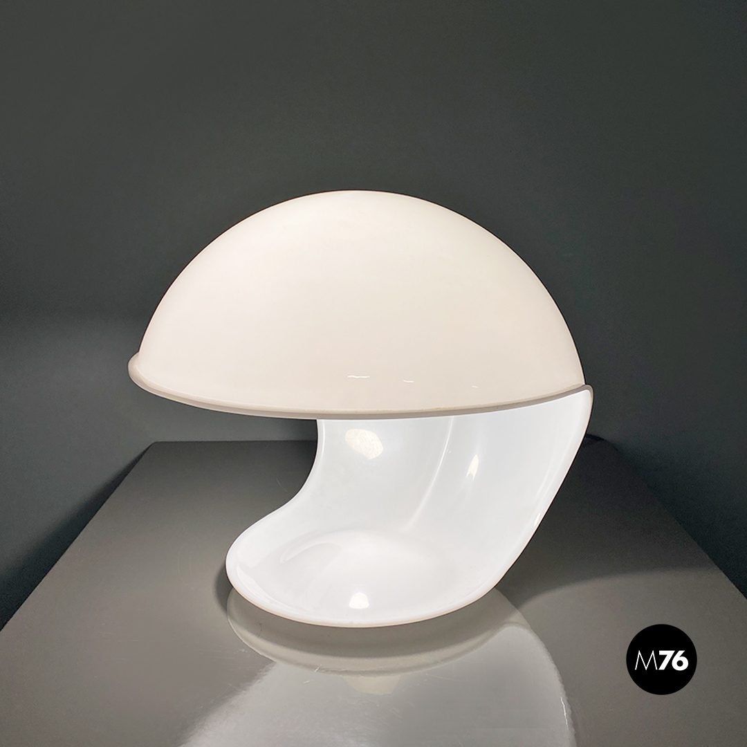 Lampada da tavolo modello Foglia con base tonda e forma irregolare in mono scocca di plastica bianca con attacco E27.