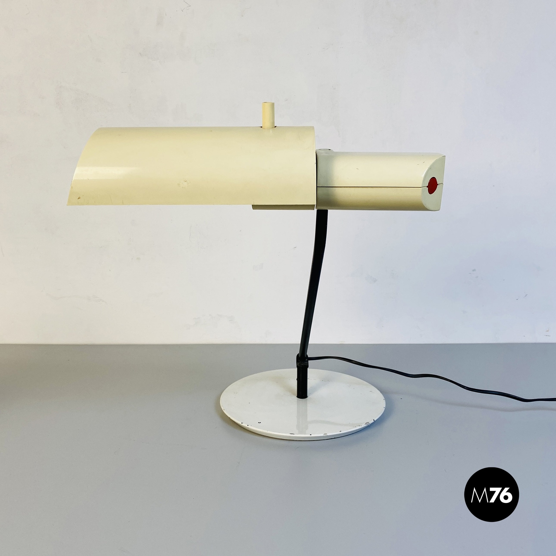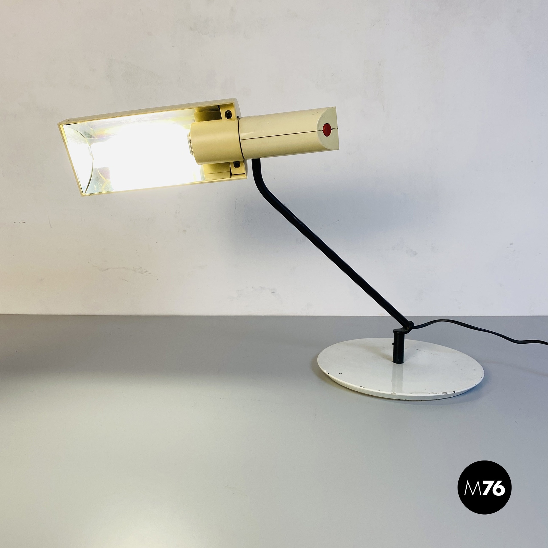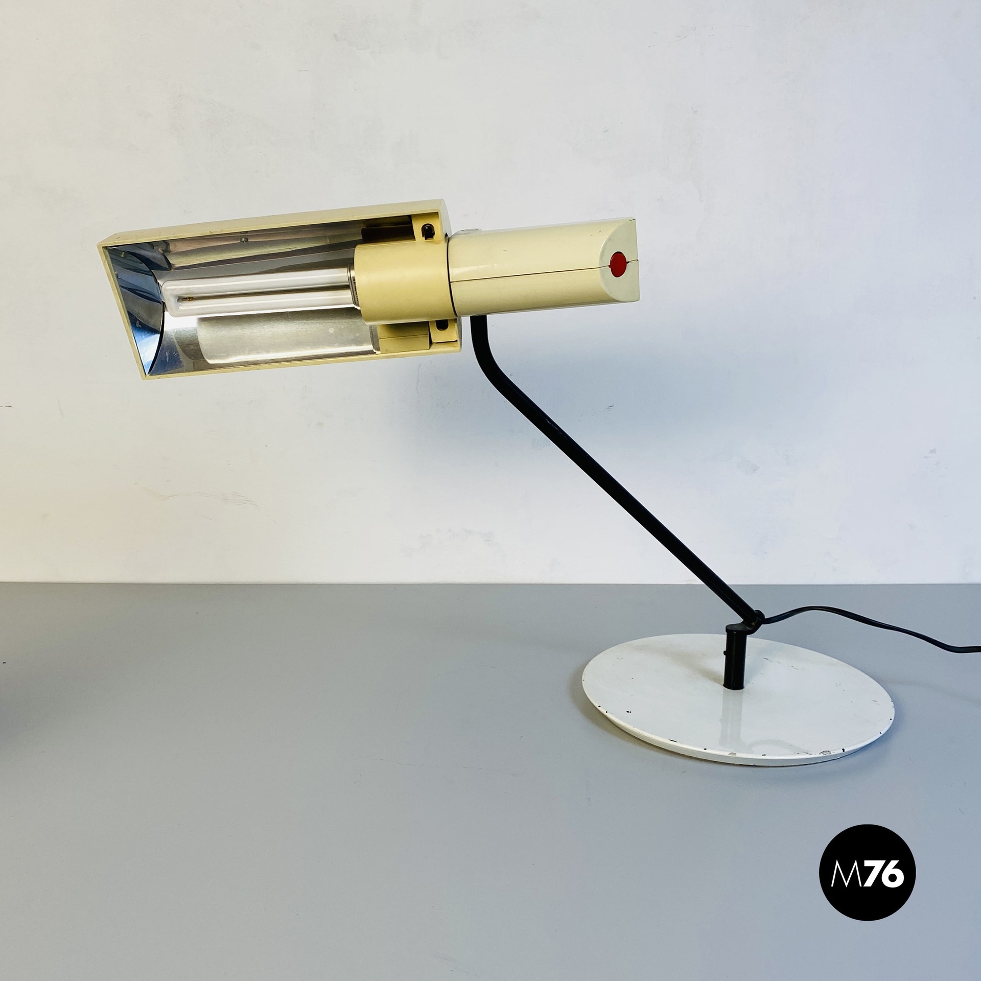 Lampada da tavolo in metallo e plastica bianca, 1980 ca.