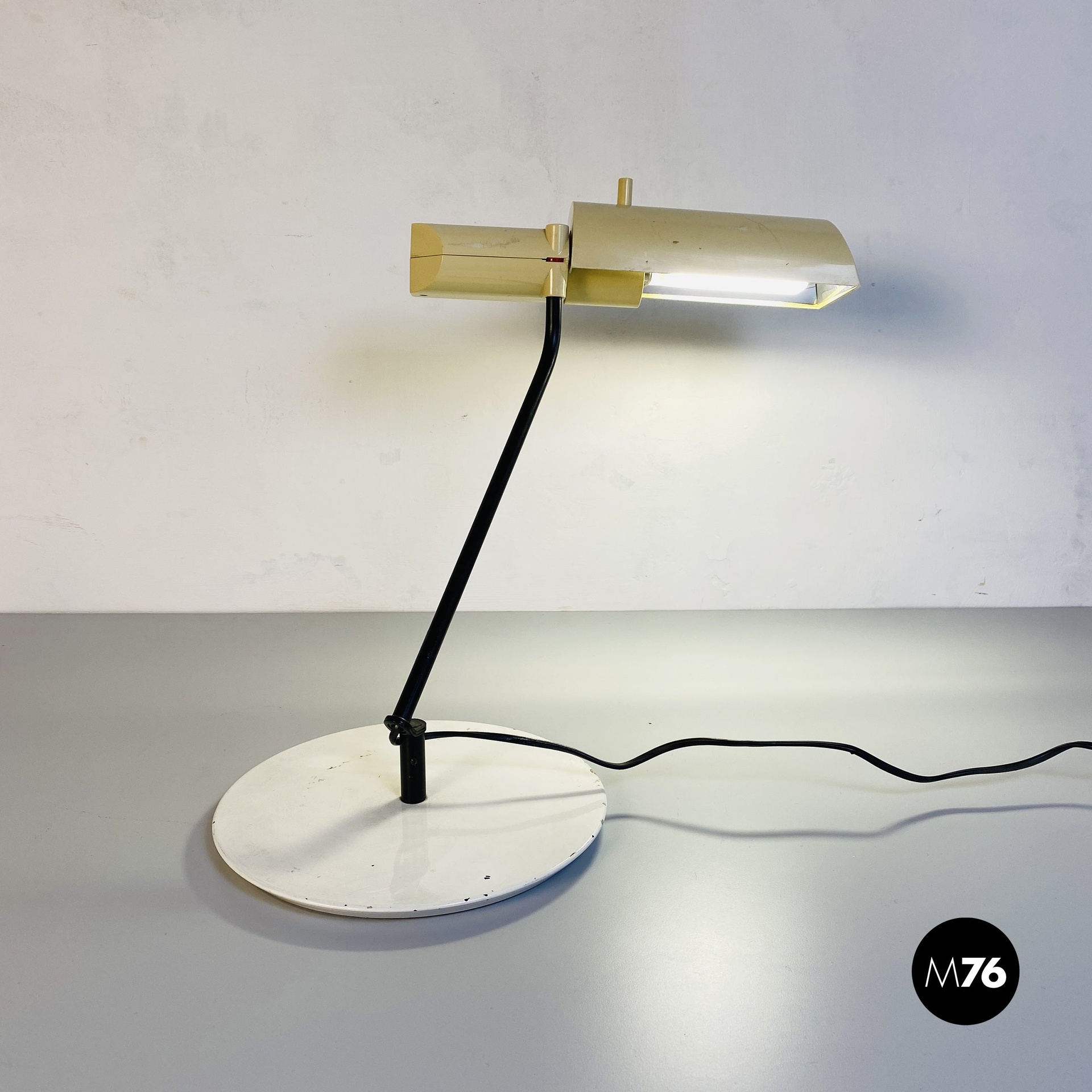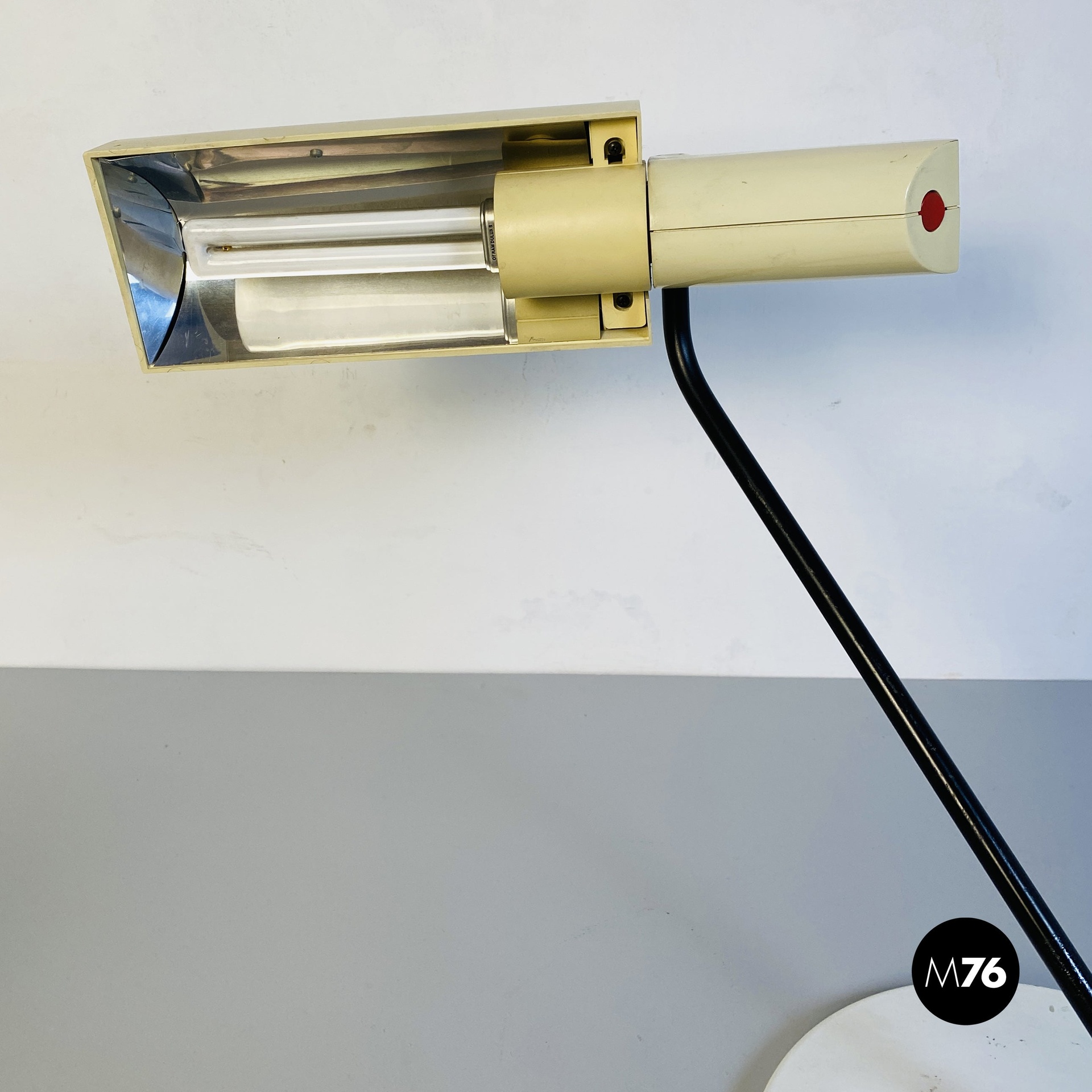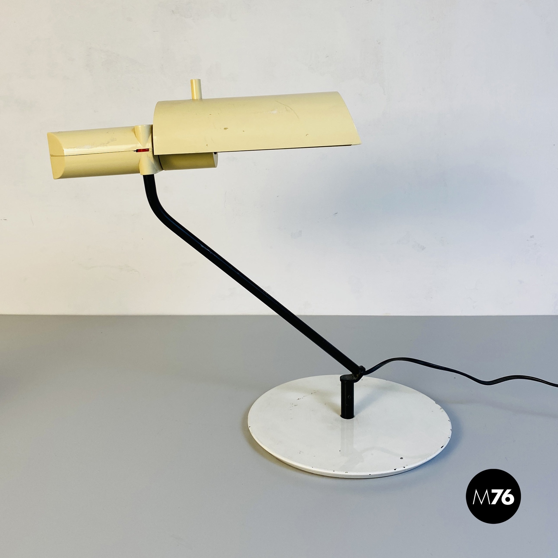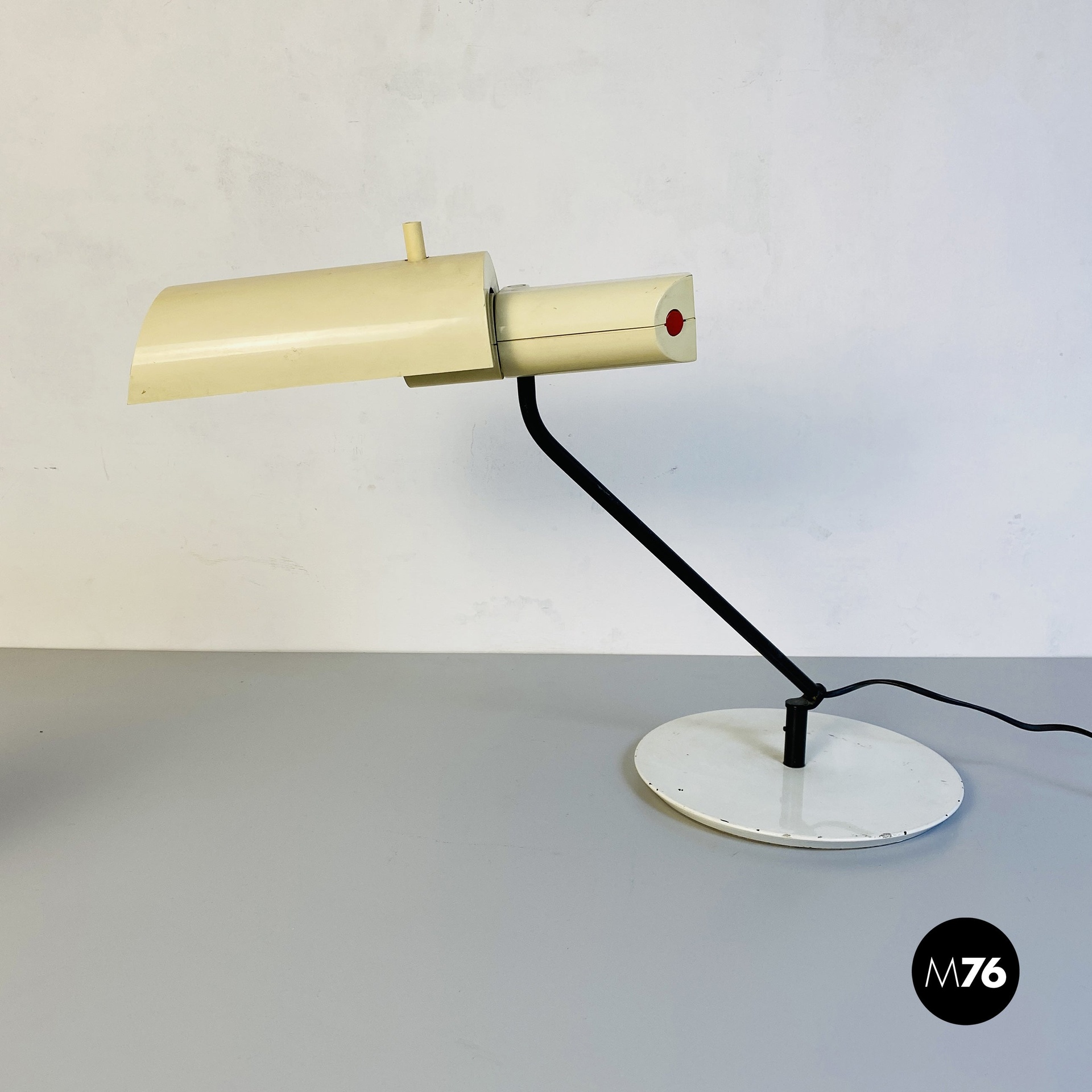 Lampada da tavolo in metallo e plastica bianca, 1980 ca.