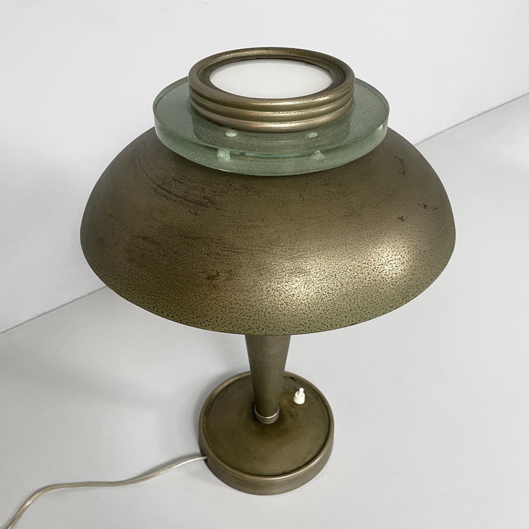 Lampada da tavolo in ottone e vetro, 1930 ca.